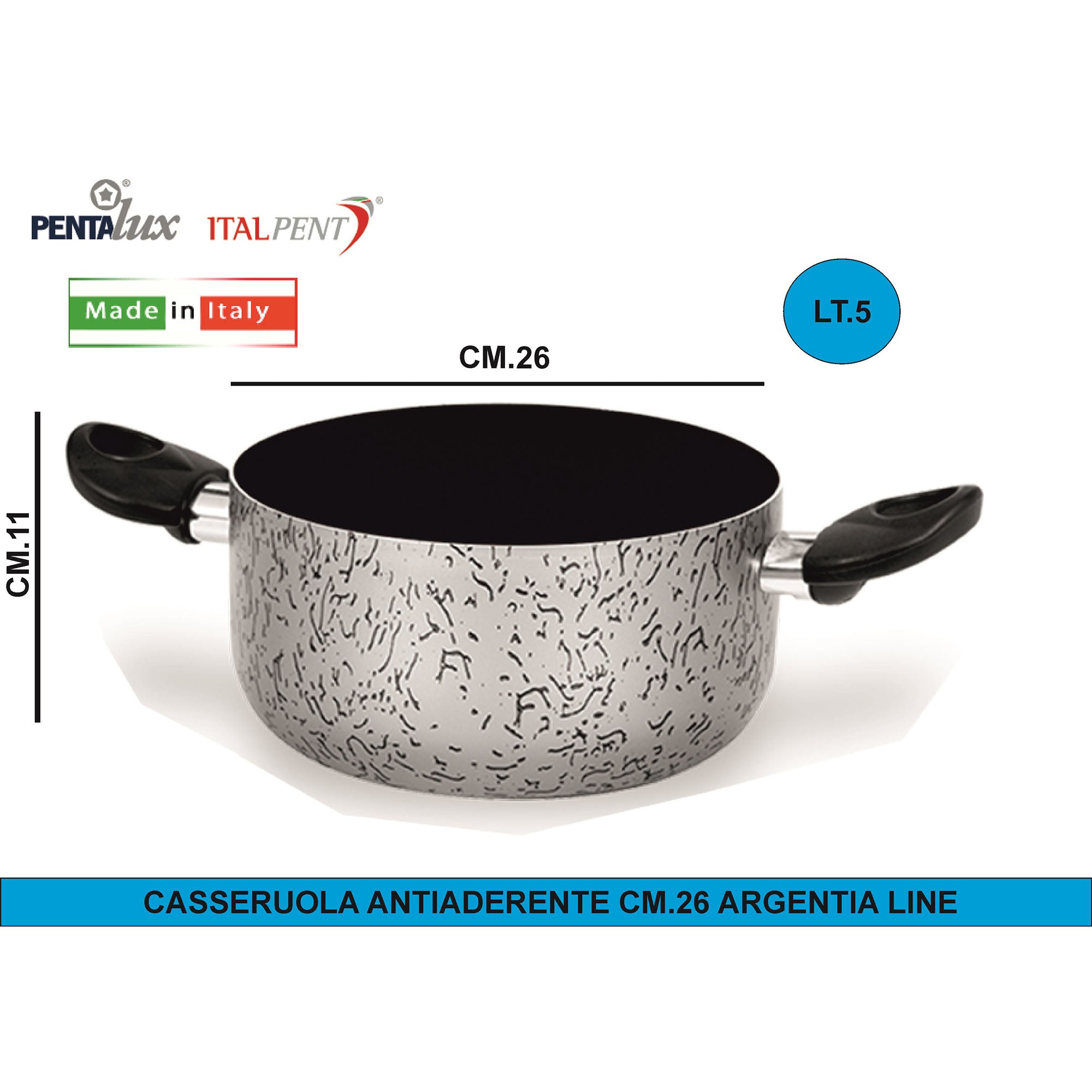 Italpent Casseruola Alluminio Antiaderente, Argentia Line, Made in Italy, Idonea alla Lavastoviglie, Piano Elettrico e Gas | Ø 16 - 26 cm