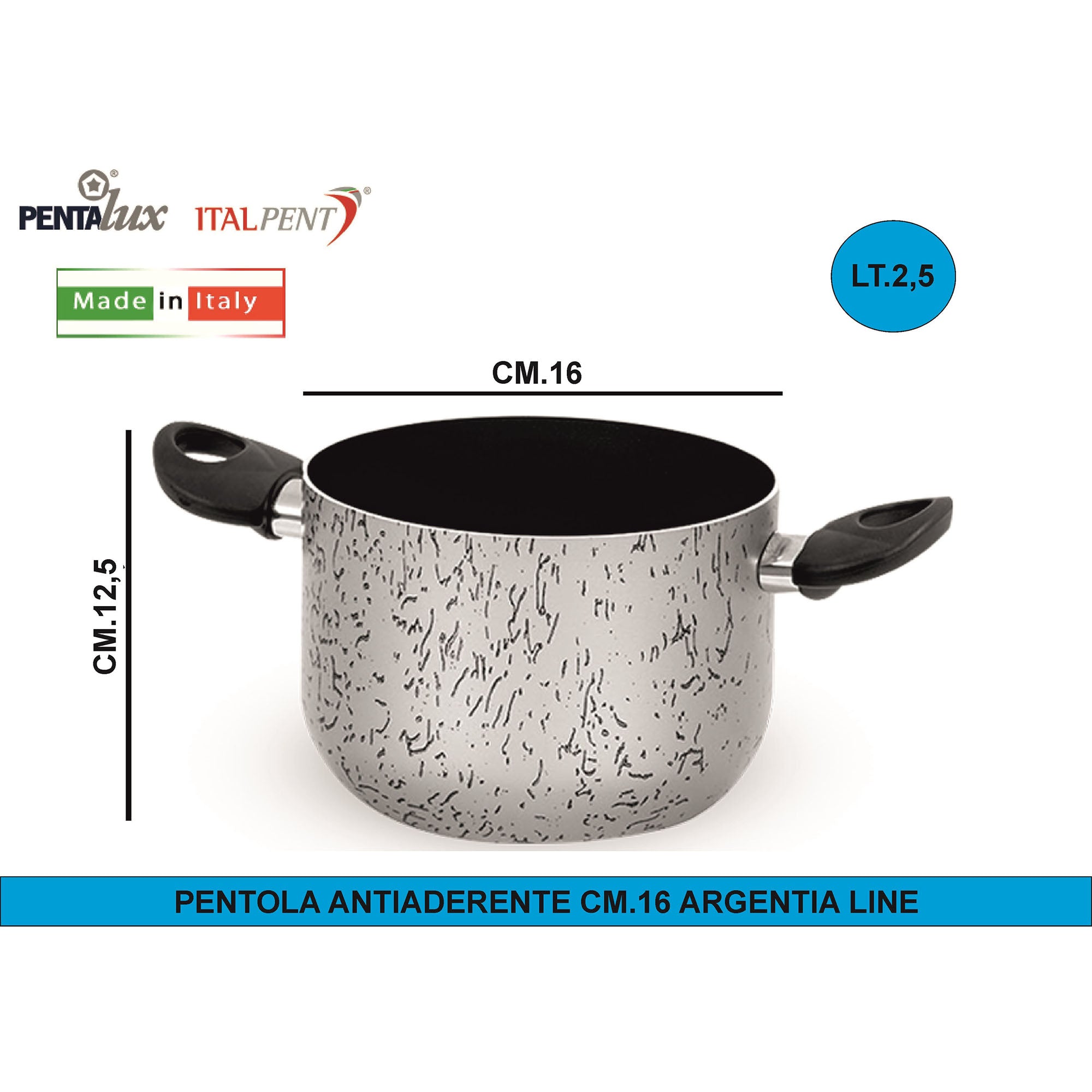 Italpent Pentola Alluminio Antiaderente, Argentia Line, Made in Italy, Idonea alla Lavastoviglie, Piano Elettrico e Gas | Ø 16 - 24 cm