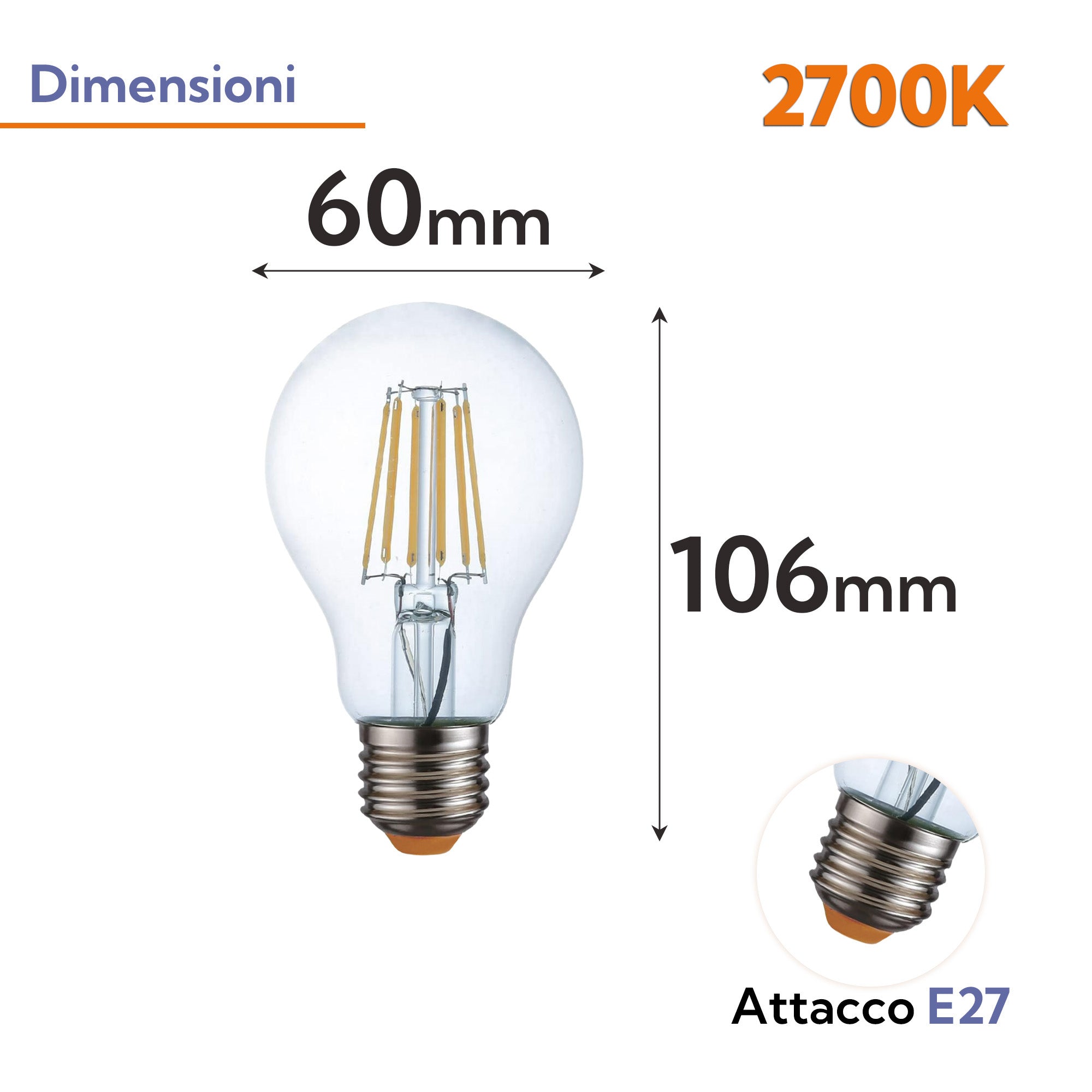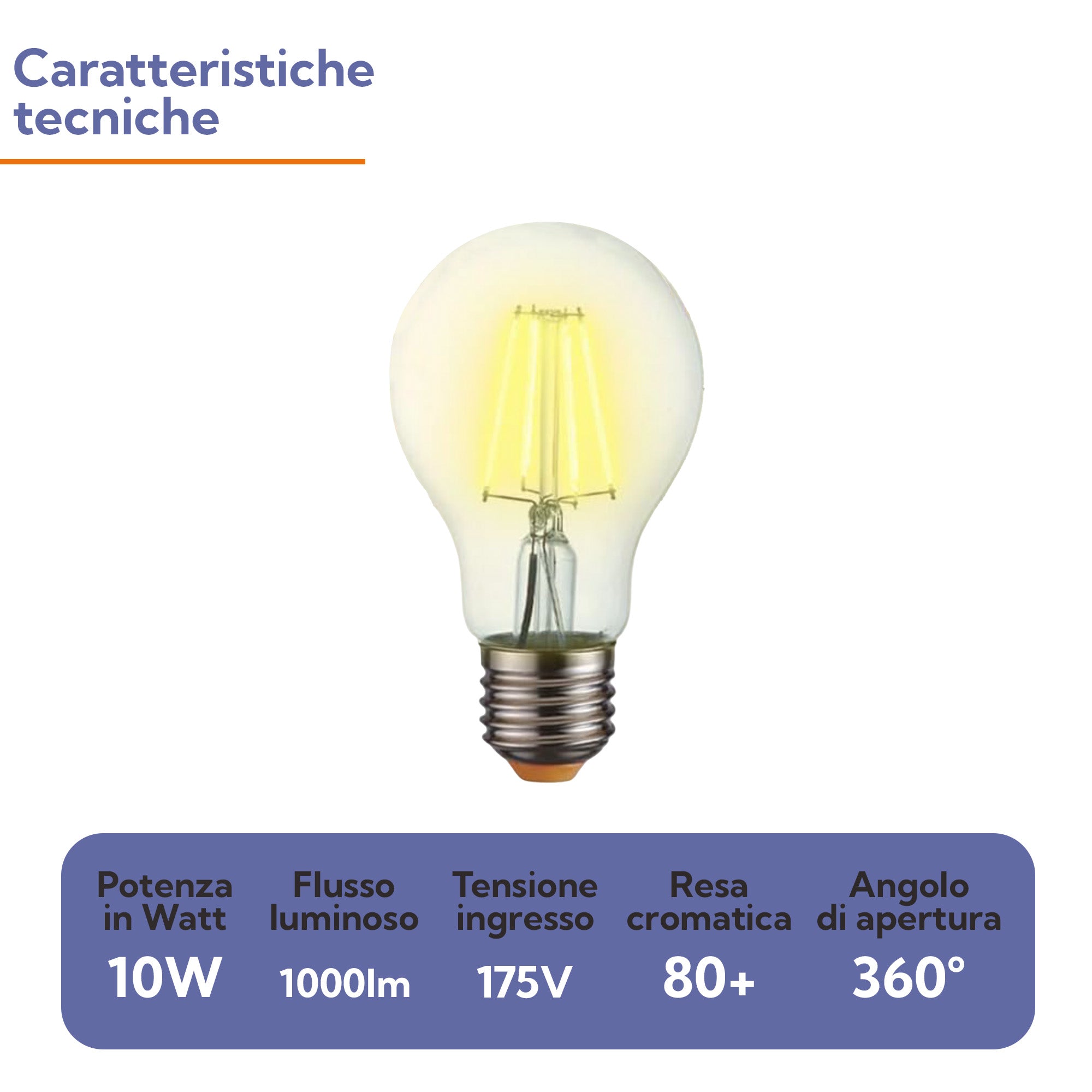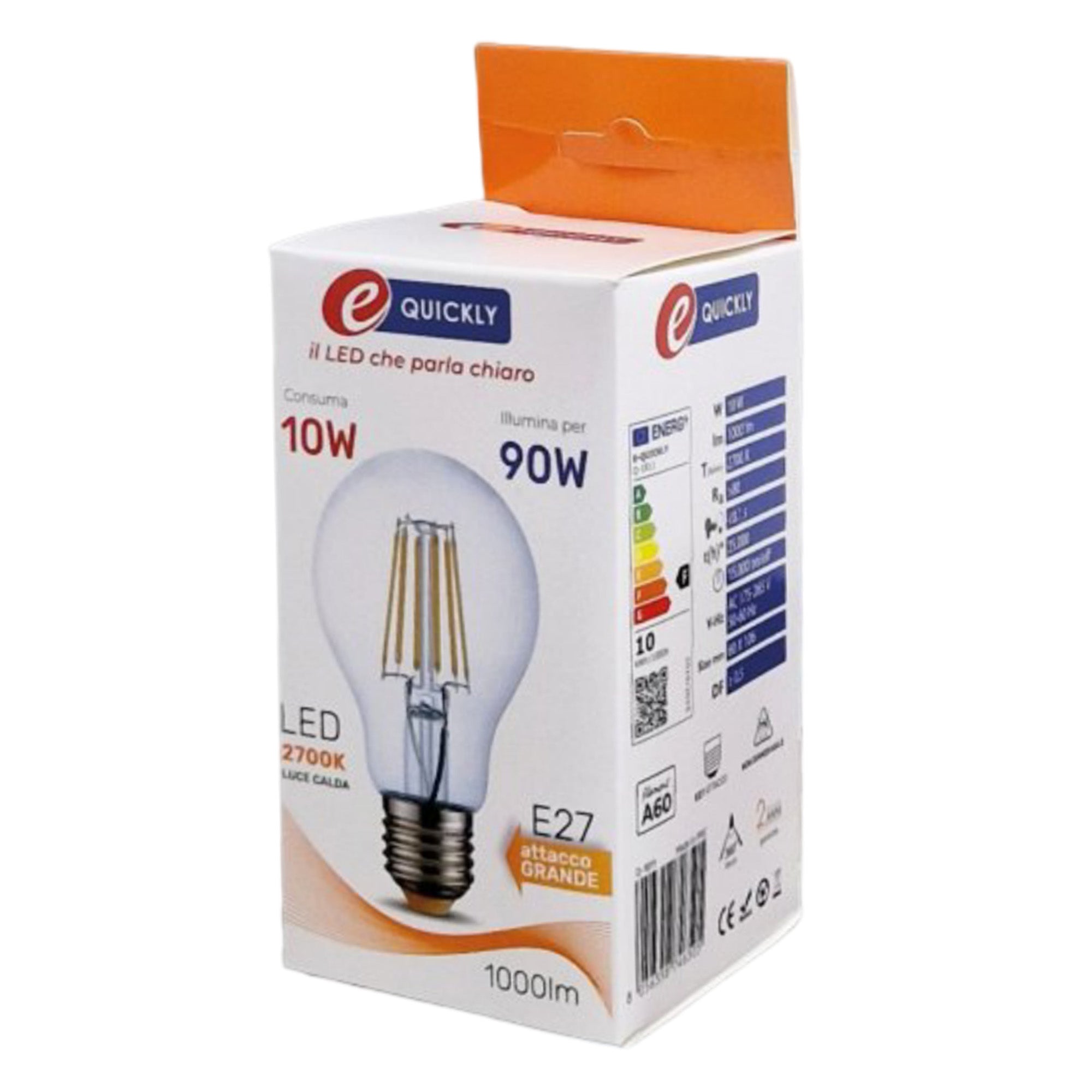 Lampadina LED E27 Filamento Bulbo A60 10W | Luce Calda 2700K | 1000 Lumen