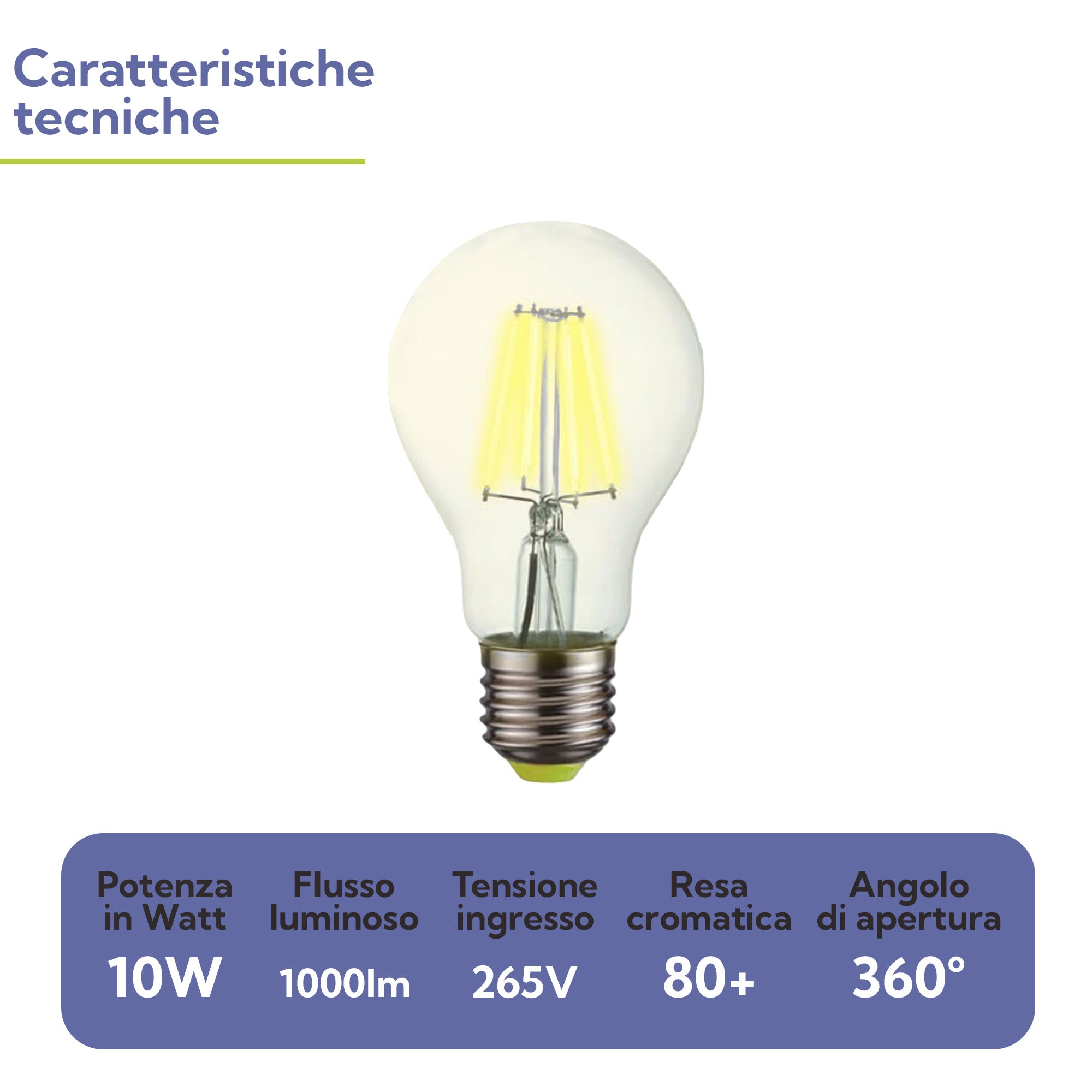 Lampadina LED E27 a Filamento 10W | Luce Naturale 4000K | Design Vintage & Alta Luminosità
