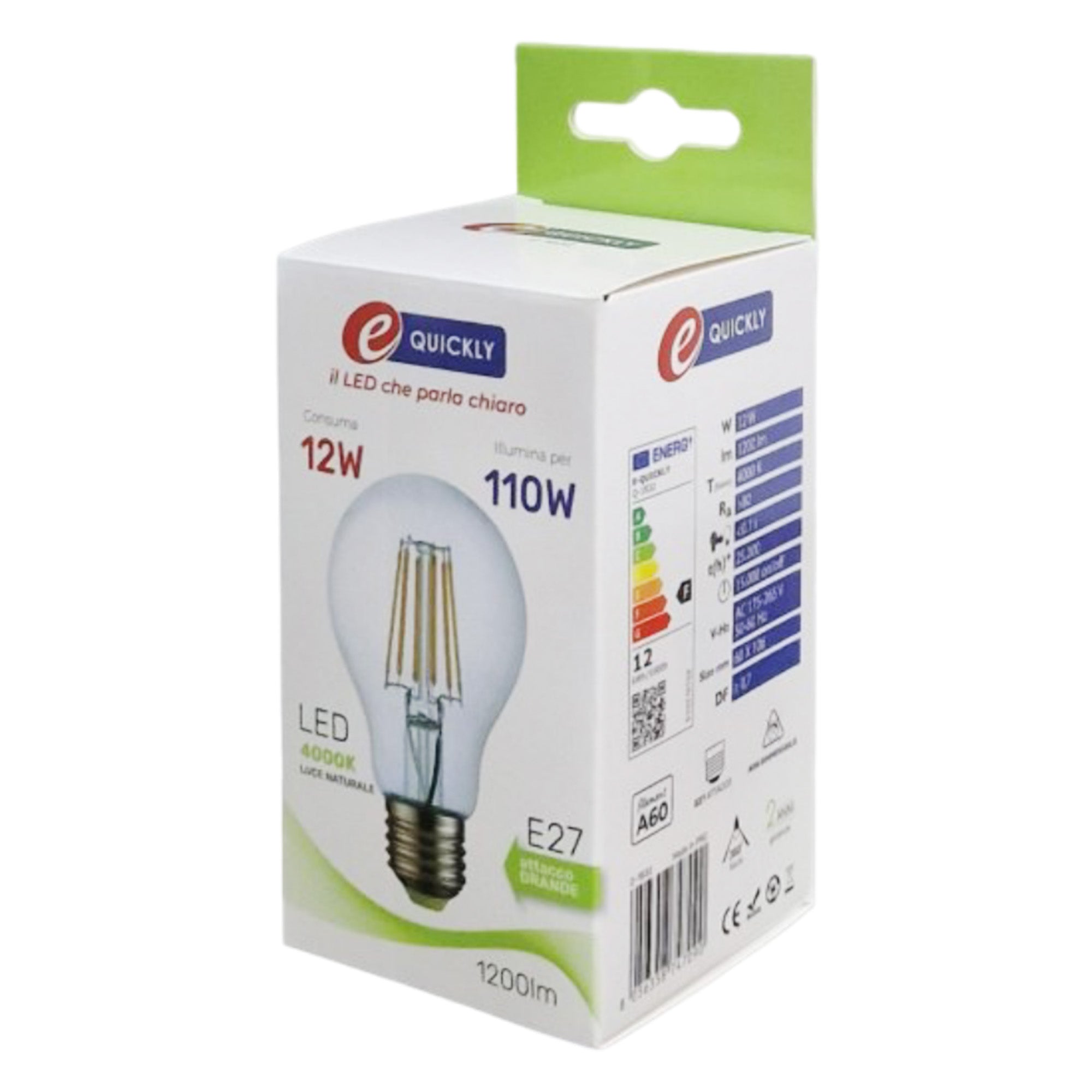 Lampadina LED E27 Filamento Bulbo A60 12W | Luce Naturale 4000K | 1200 Lumen