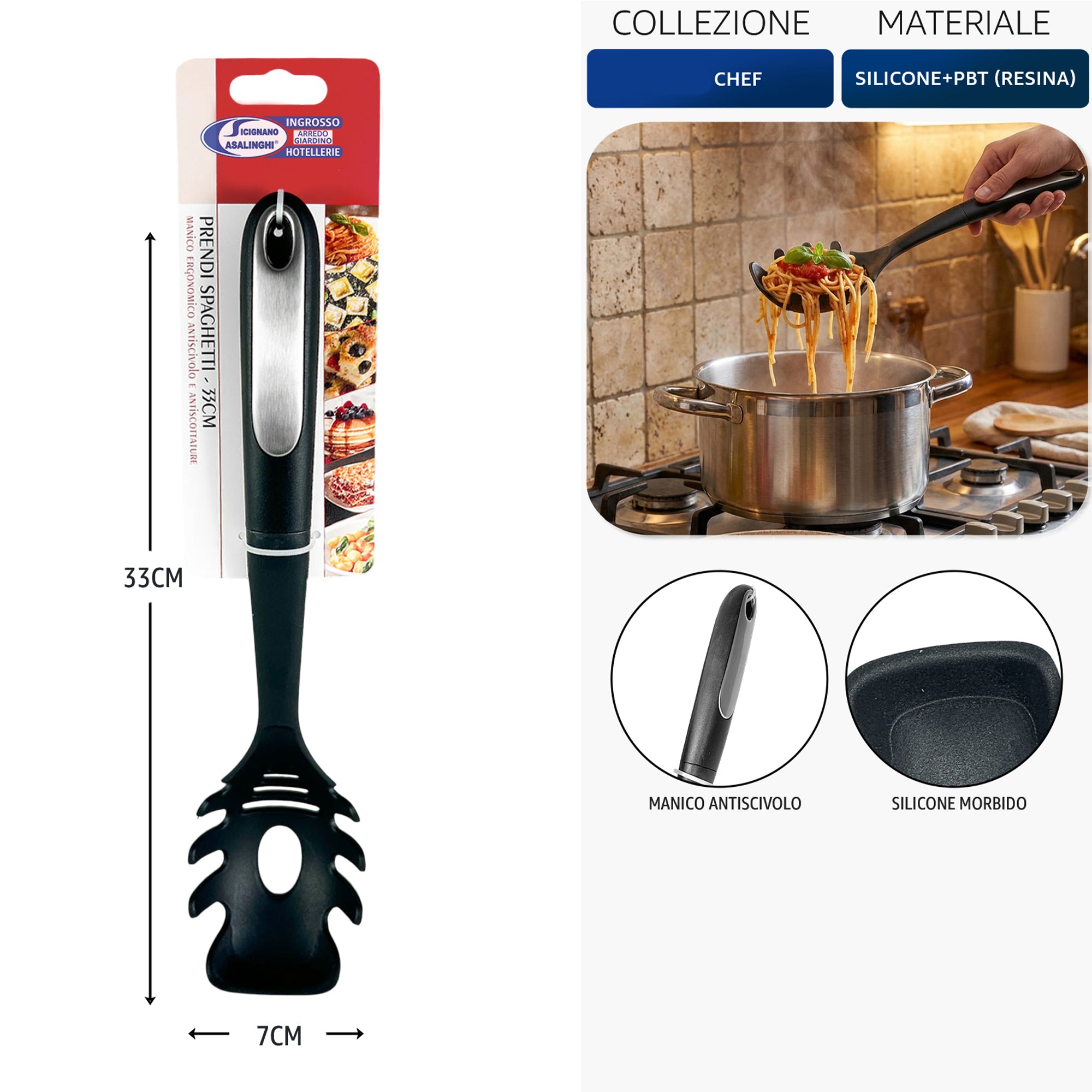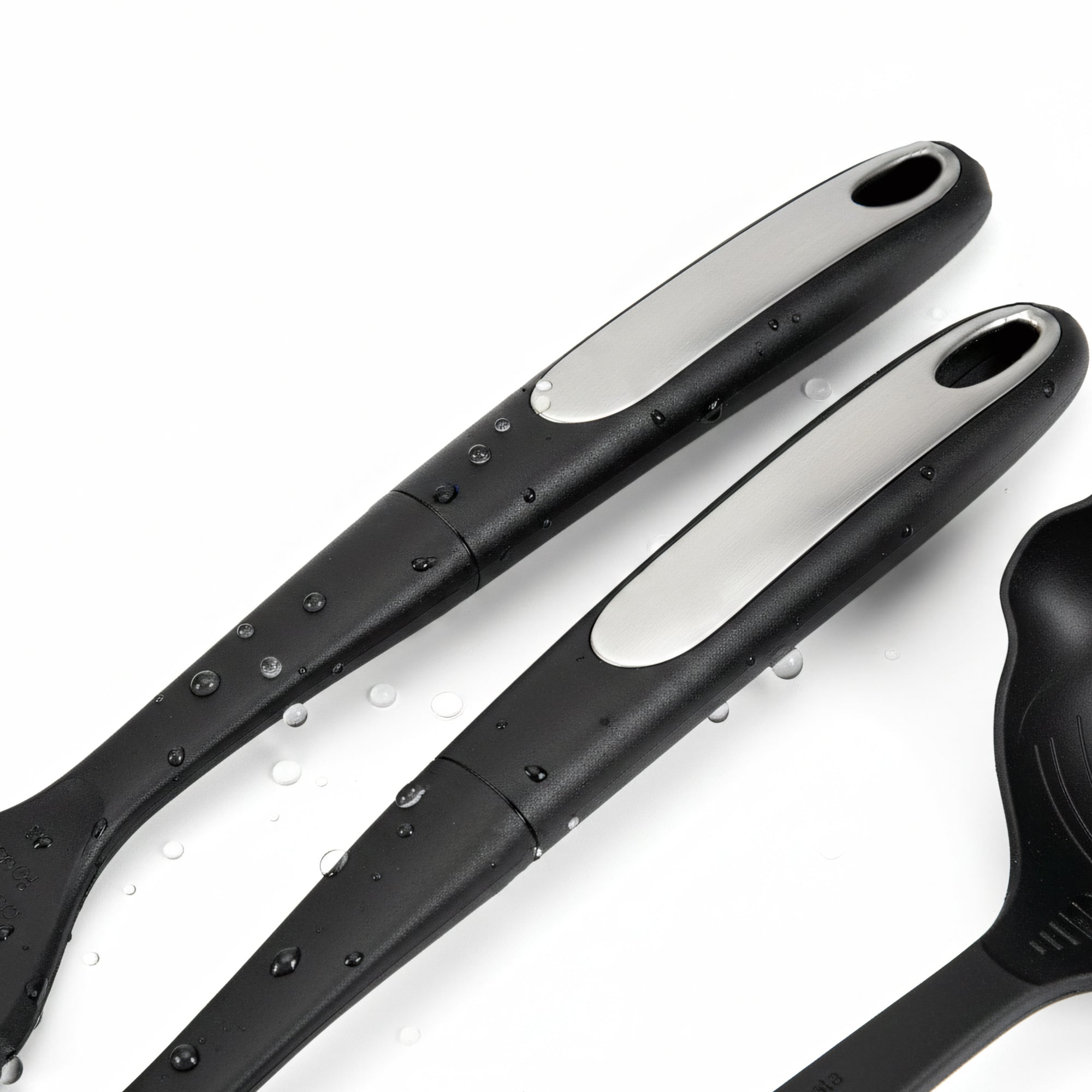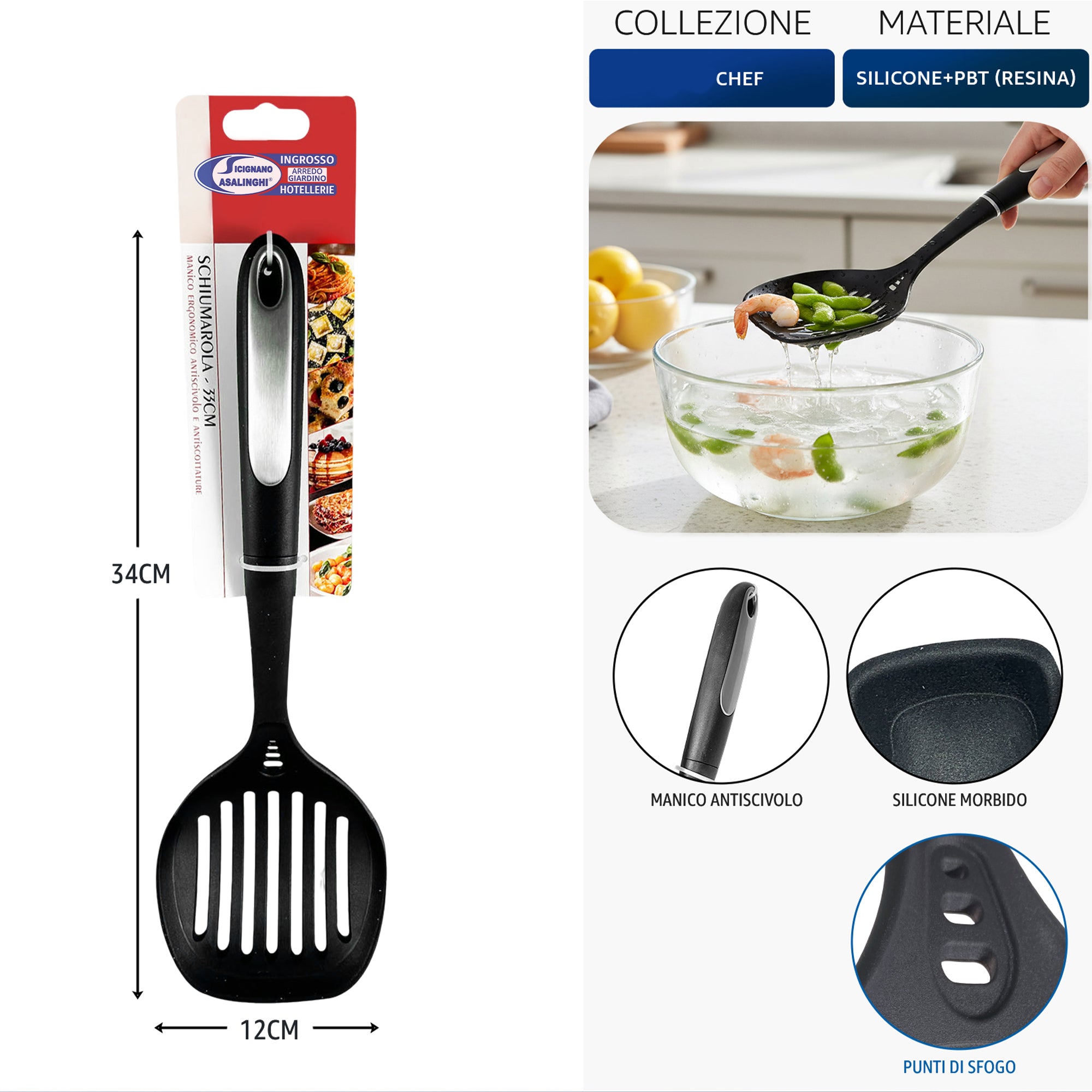 Set Utensili Cucina Nylon Nero Antiscivolo 6 Pezzi + Singoli – Manico Ergonomico Termoresistente