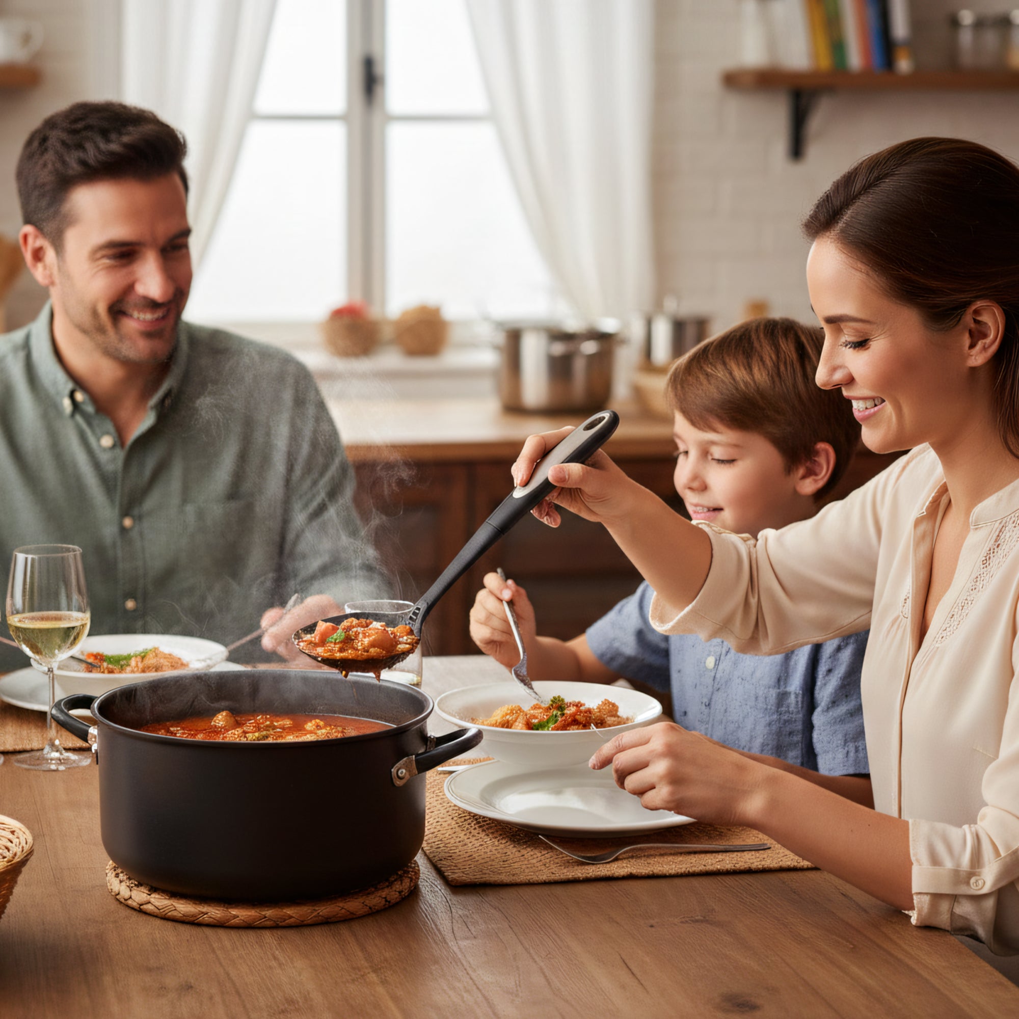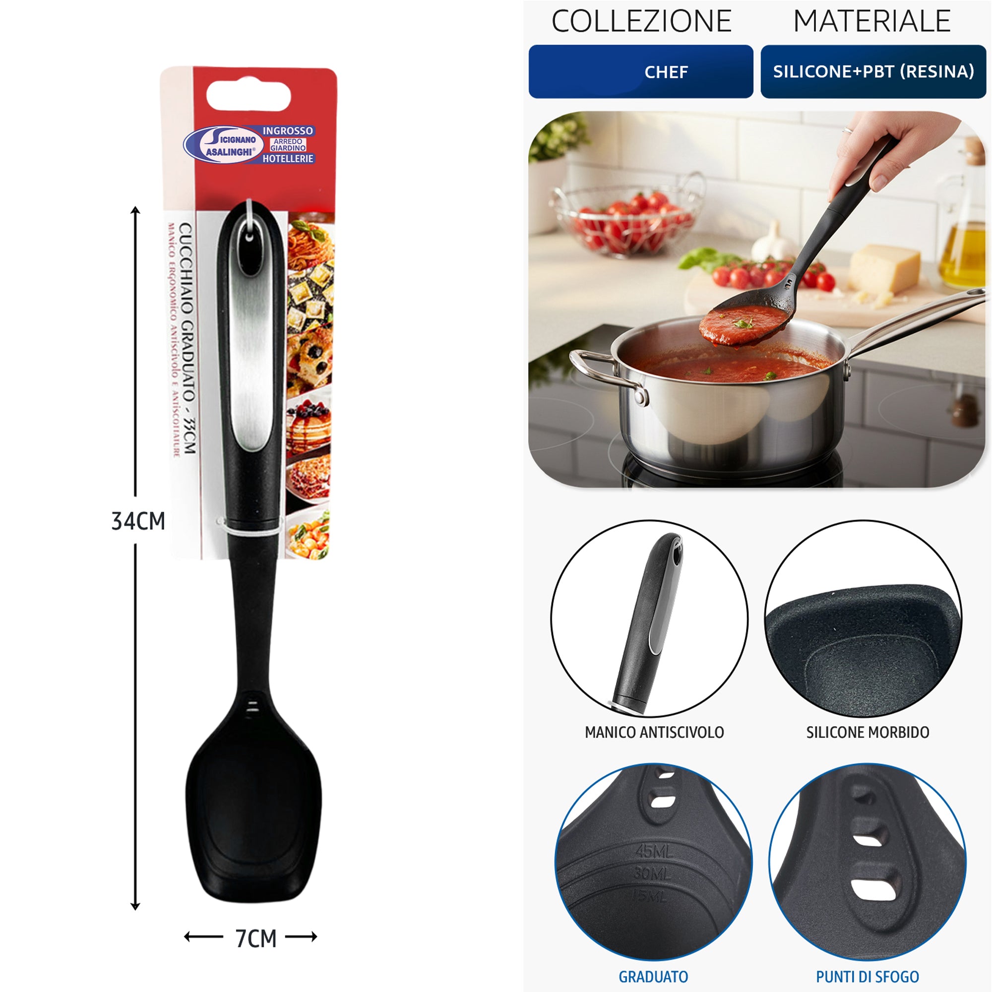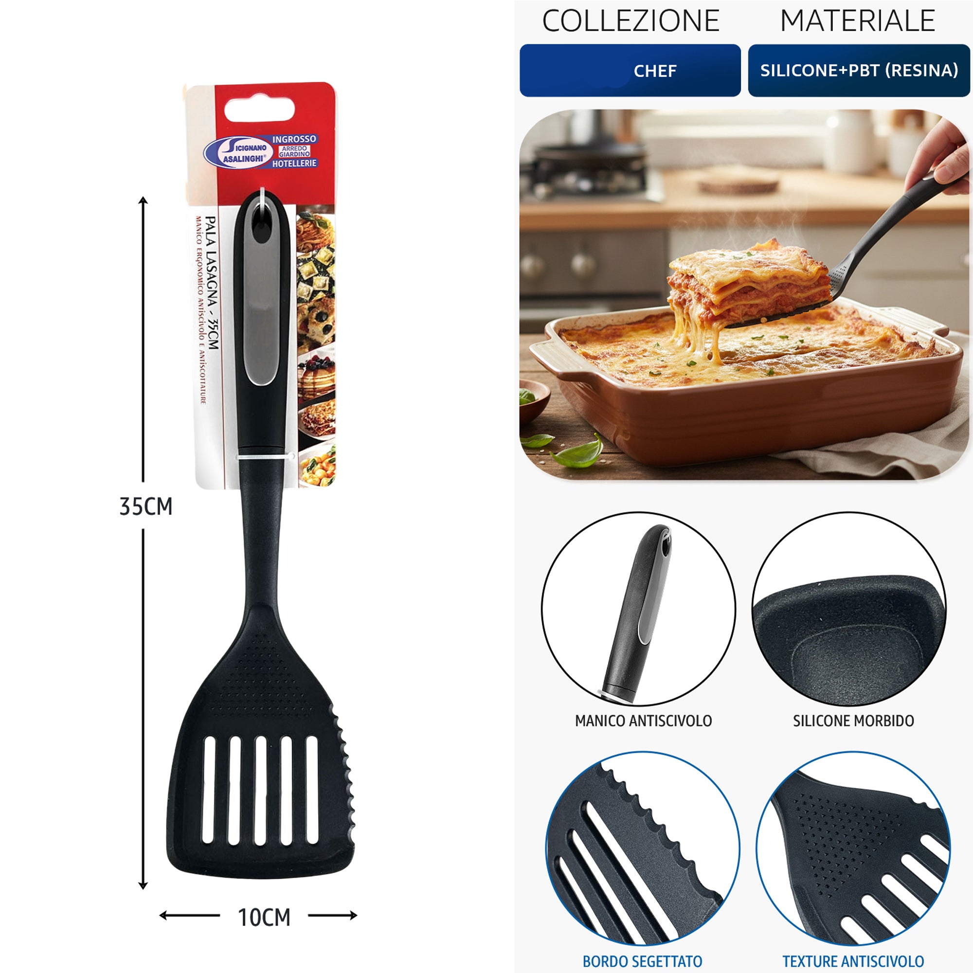 Set Utensili Cucina Nylon Nero Antiscivolo 6 Pezzi + Singoli – Manico Ergonomico Termoresistente