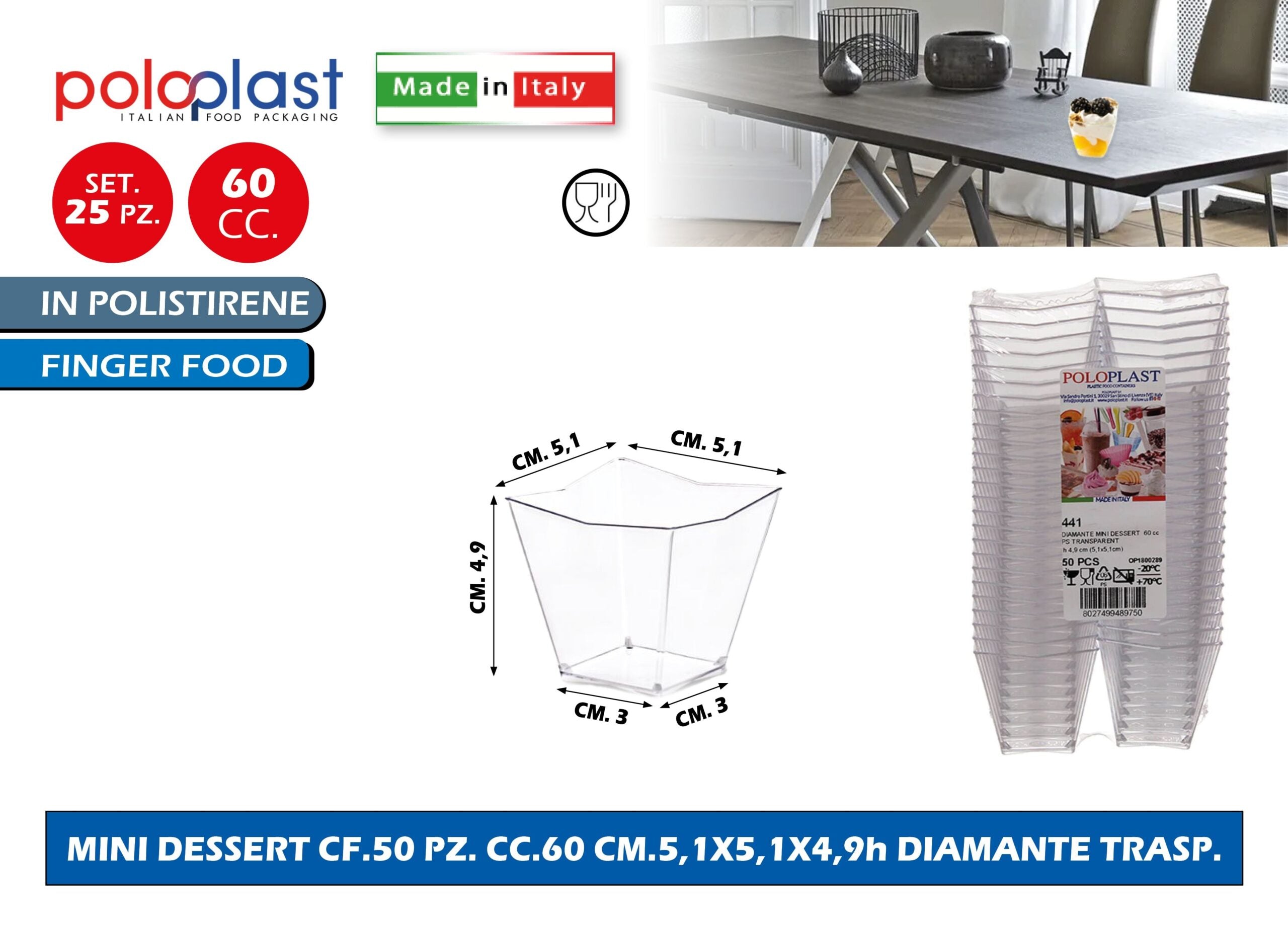 Poloplast Minidessert Cf.50 Pz. Cc.60 Cm.5,1X5,1X4,9H Diamante Trasp.