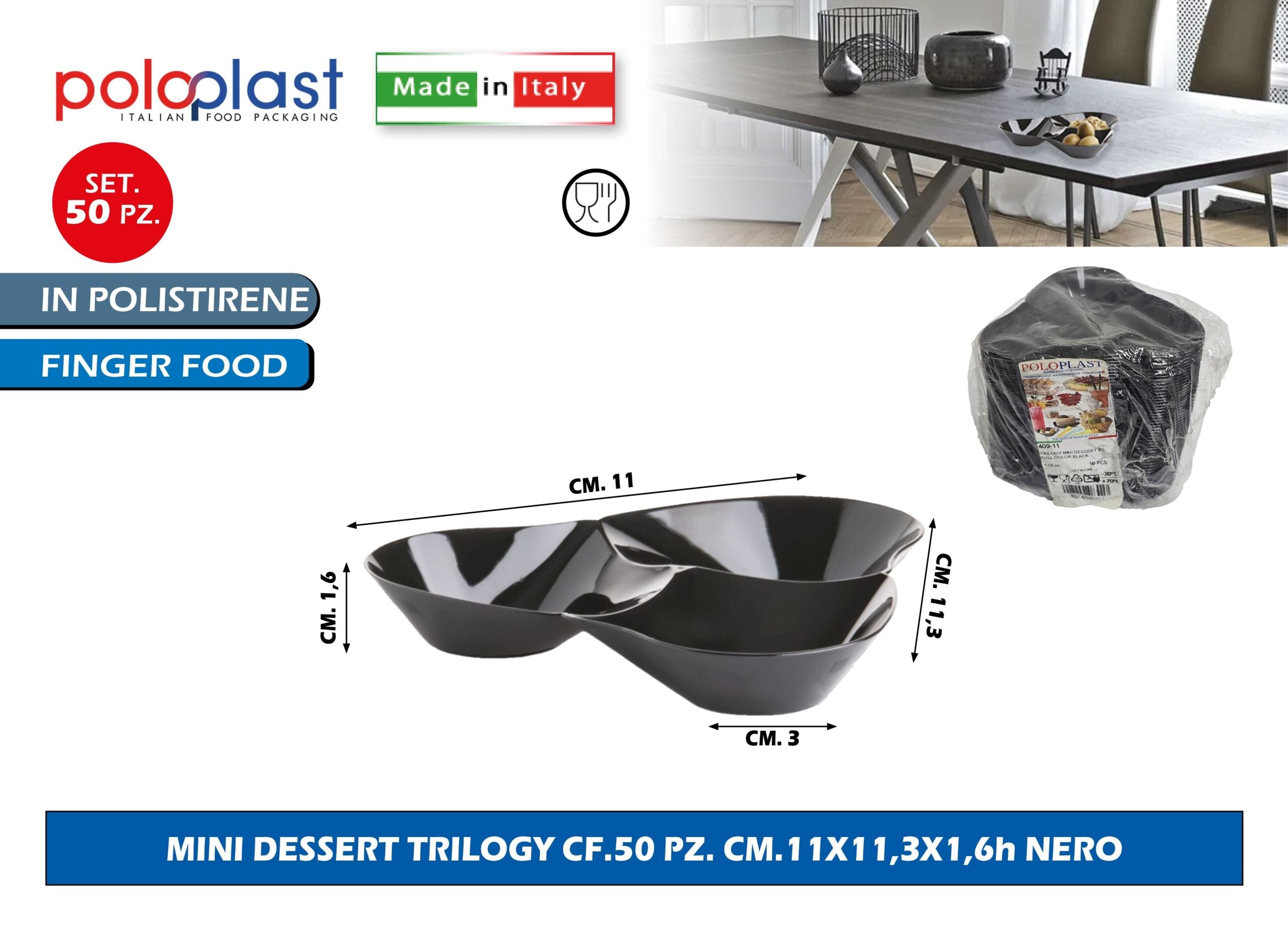 Poloplast Minidessert Trilogy Cf.50 Pz. Cm.11X11,3X1,6H Nero