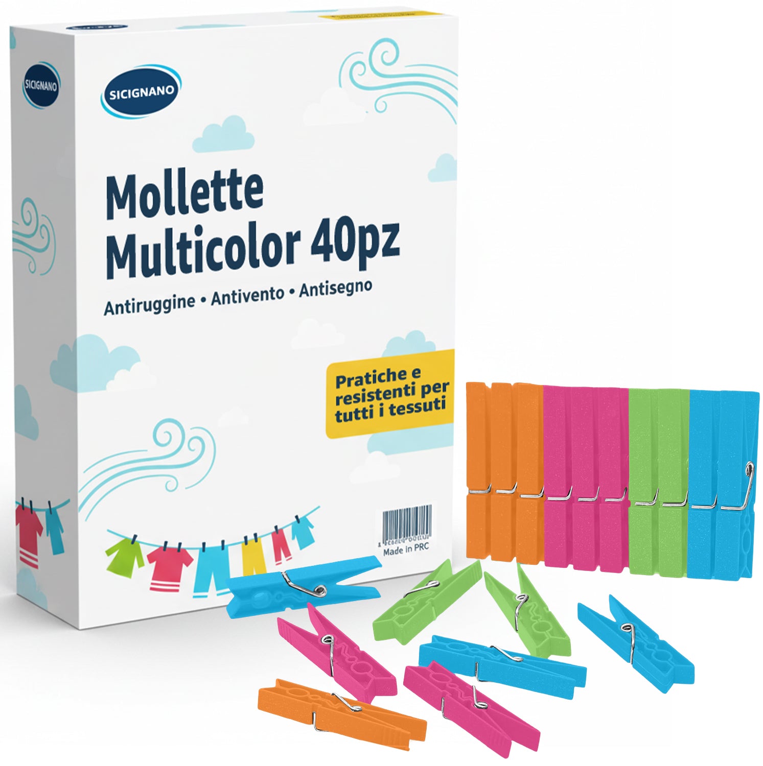 Mollette per Bucato Multicolor, Grandi e Resistenti, in Plastica PP Con Molla Antiruggine – Antivento, Antisegno, Pratiche e Indispensabili per Stendibiancheria Interno Ed Esterno