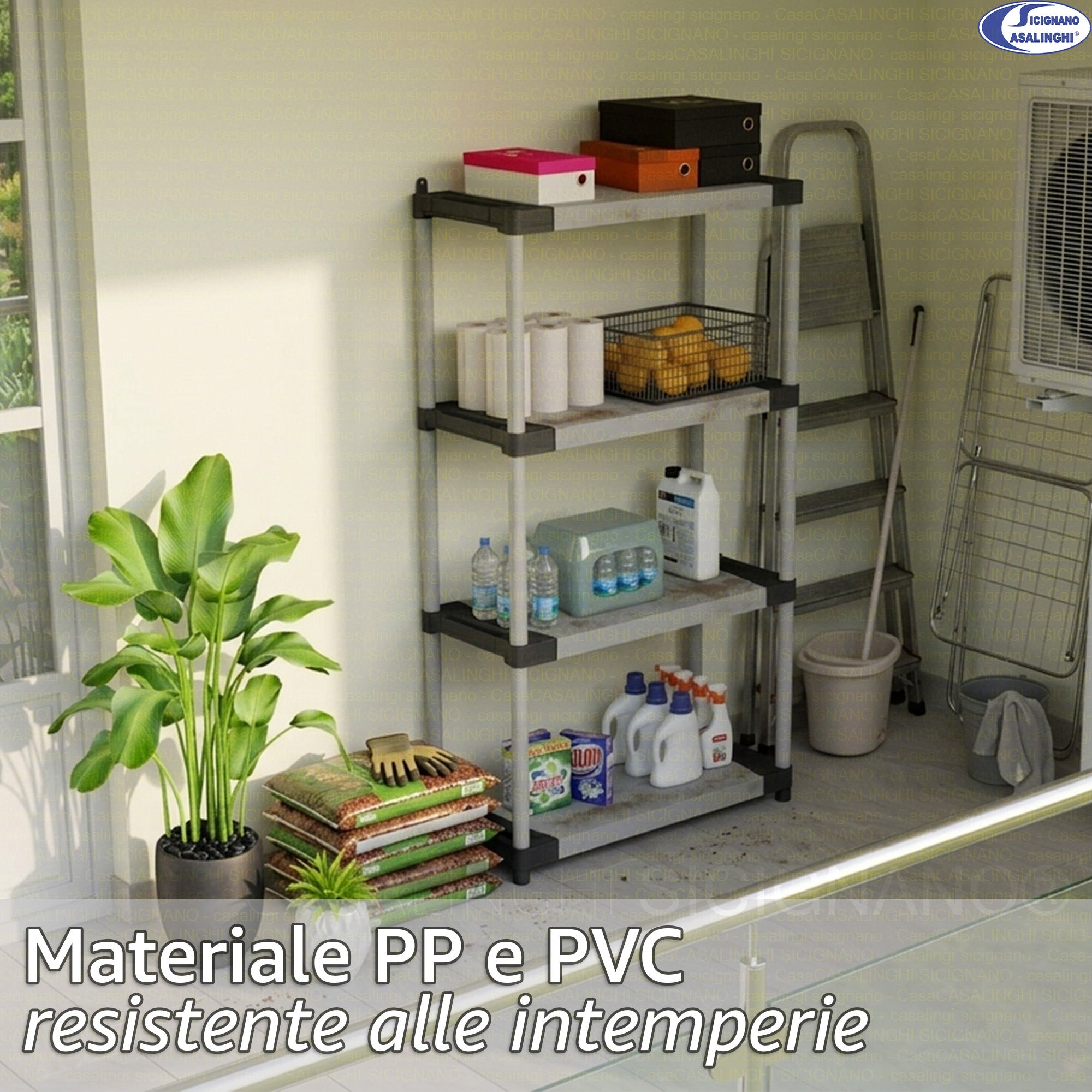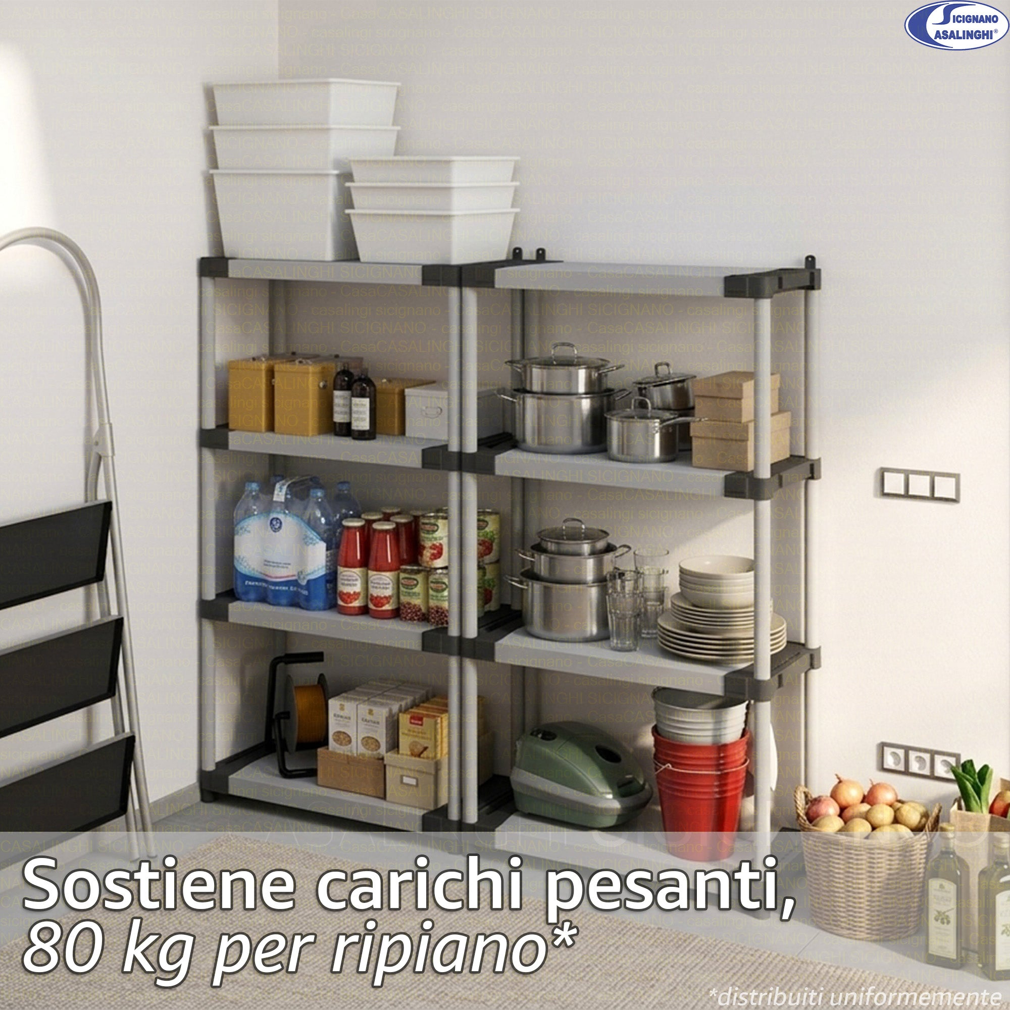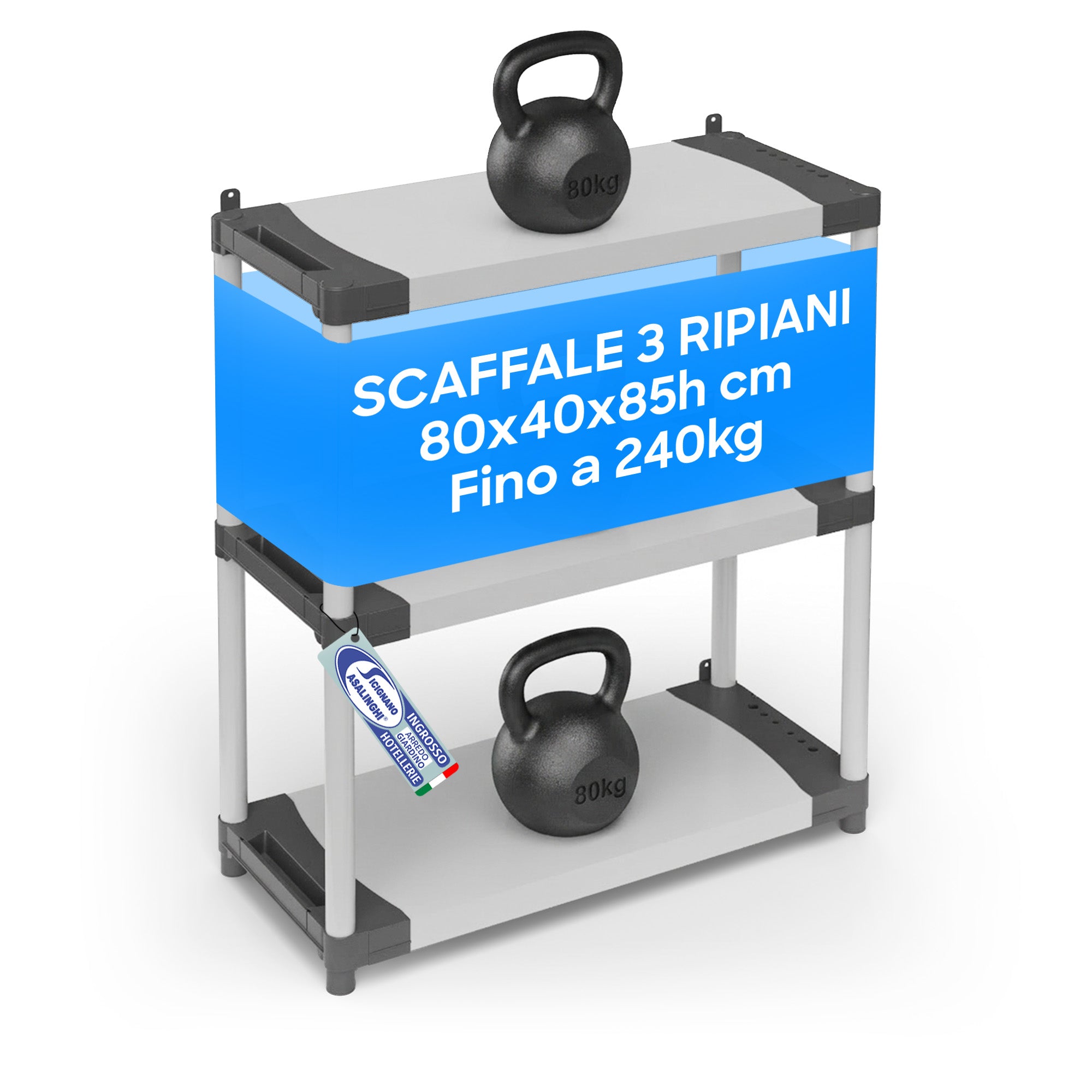Mongardi Scaffale Modulare in Resina Alta Portata 80kg per Ripiano, Dimensioni 80x40 cm, Uso Interno ed Esterno, Garage, Cantina, Lavanderia (3 o 4 Ripiani)