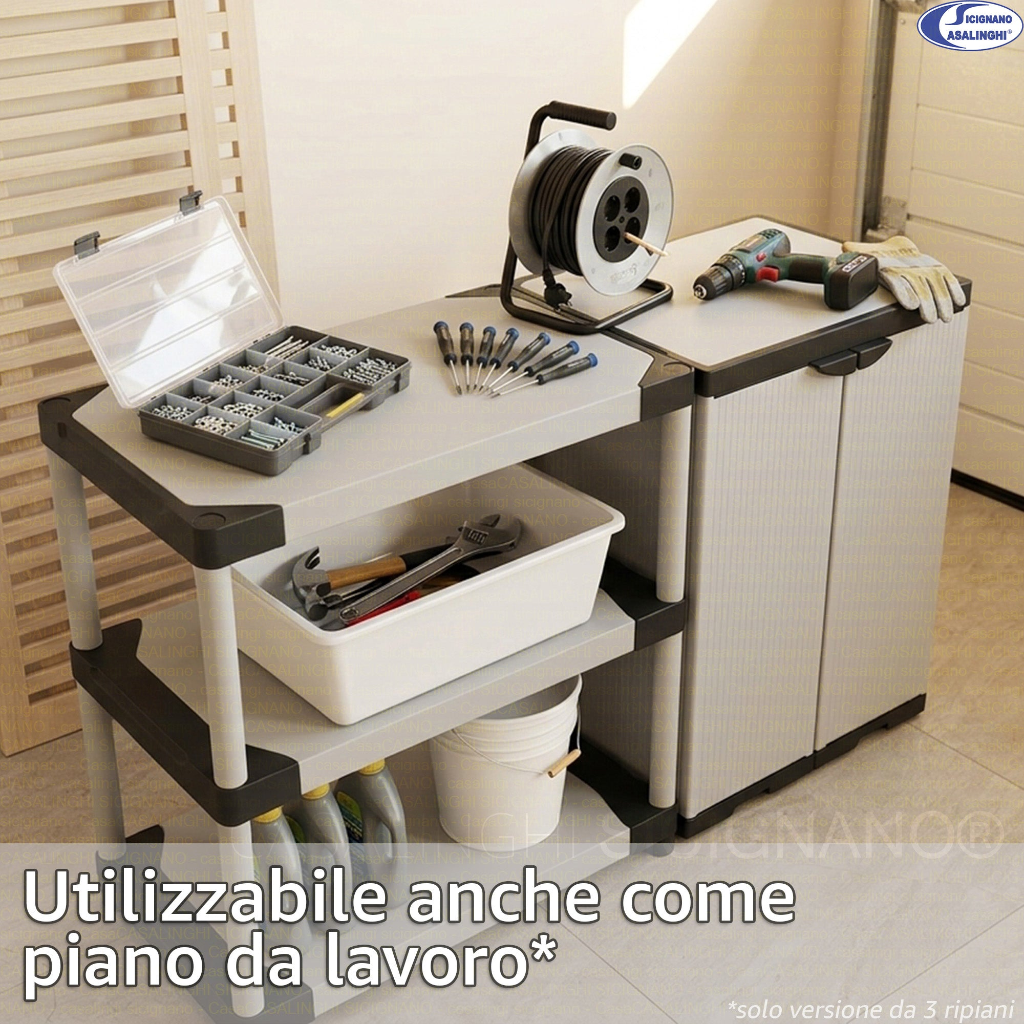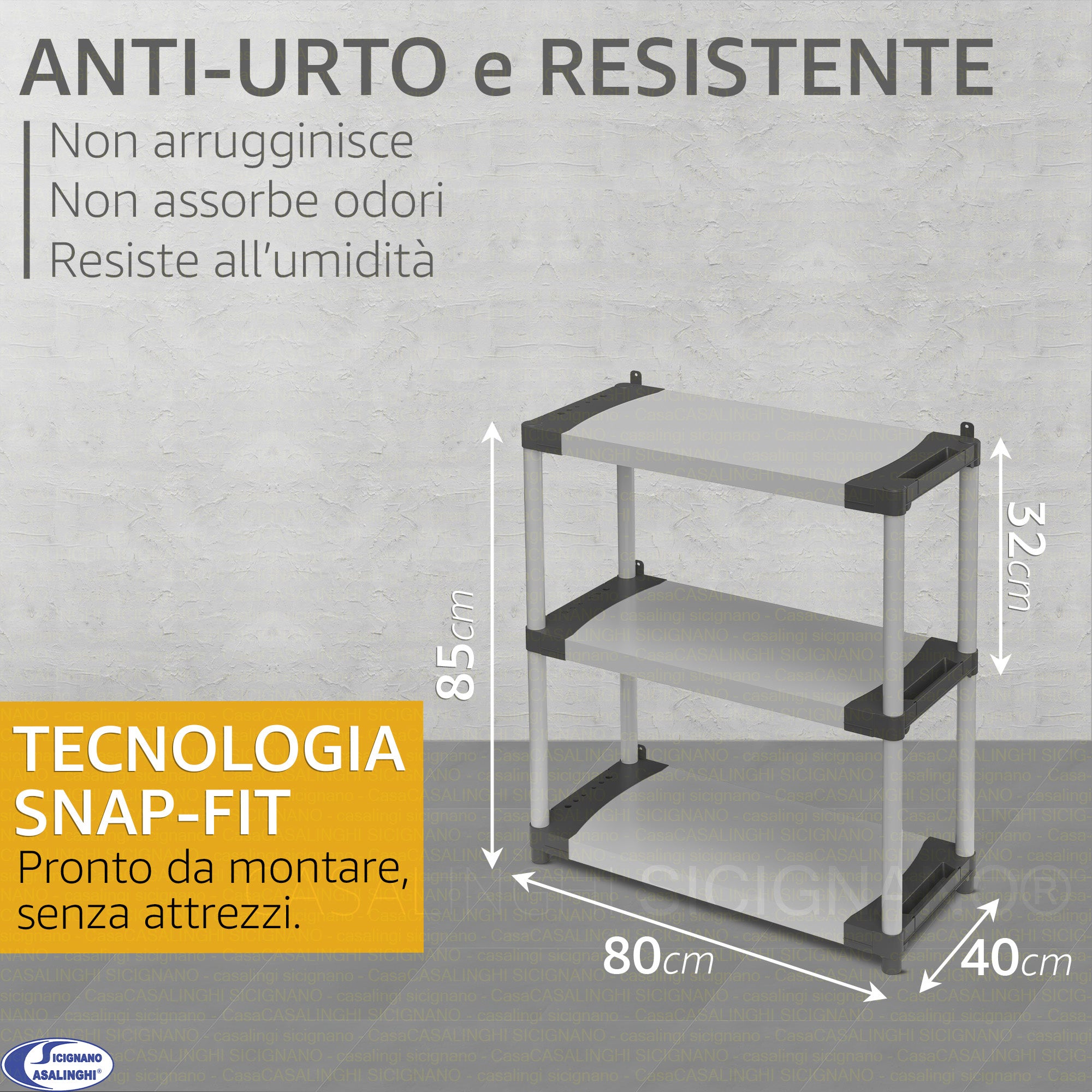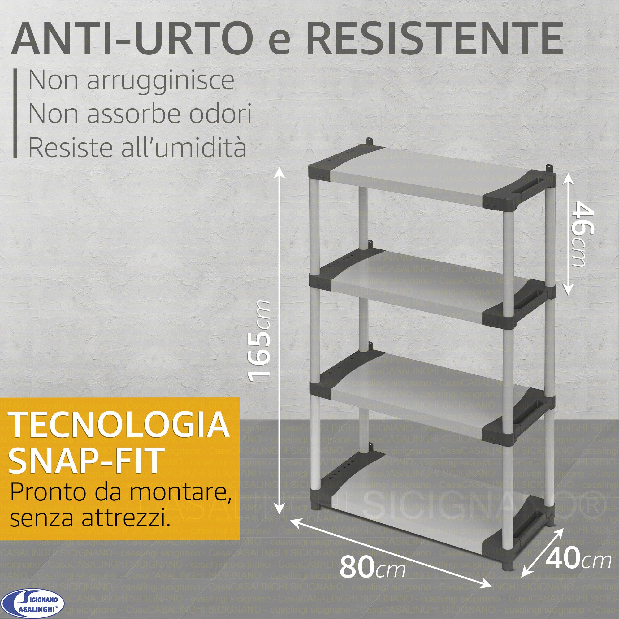 Mongardi Scaffale Modulare in Resina Alta Portata 80kg per Ripiano, Dimensioni 80x40 cm, Uso Interno ed Esterno, Garage, Cantina, Lavanderia (3 o 4 Ripiani)