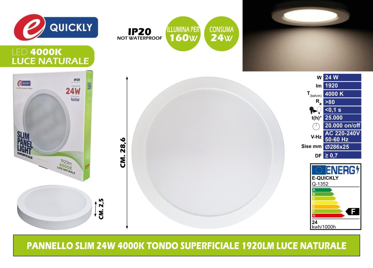 Pannello Slim 24W 4000K Tondo Superficiale 1920Lm