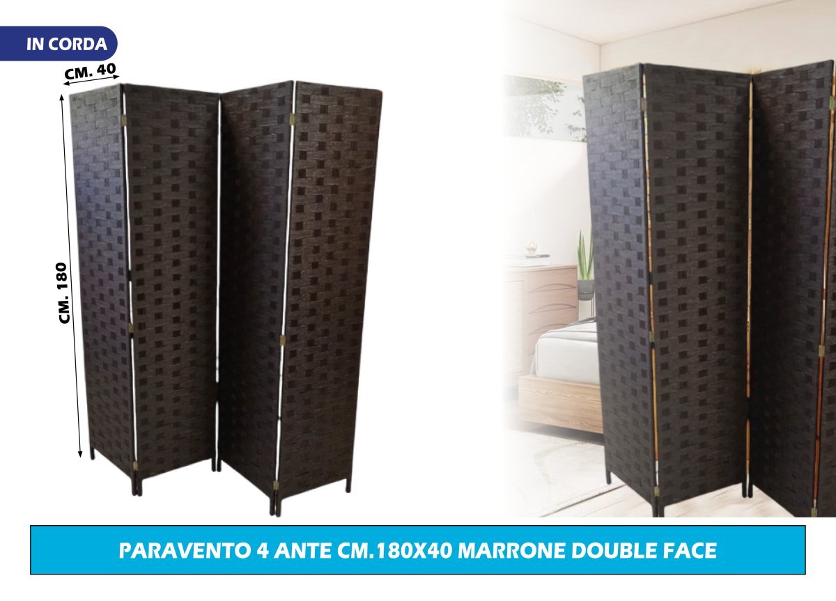 Paravento Separè 3 o 4 Ante – Marrone o Grigio – Double Face, Struttura Robusta, Pieghevole 180 cm per Casa e Ufficio