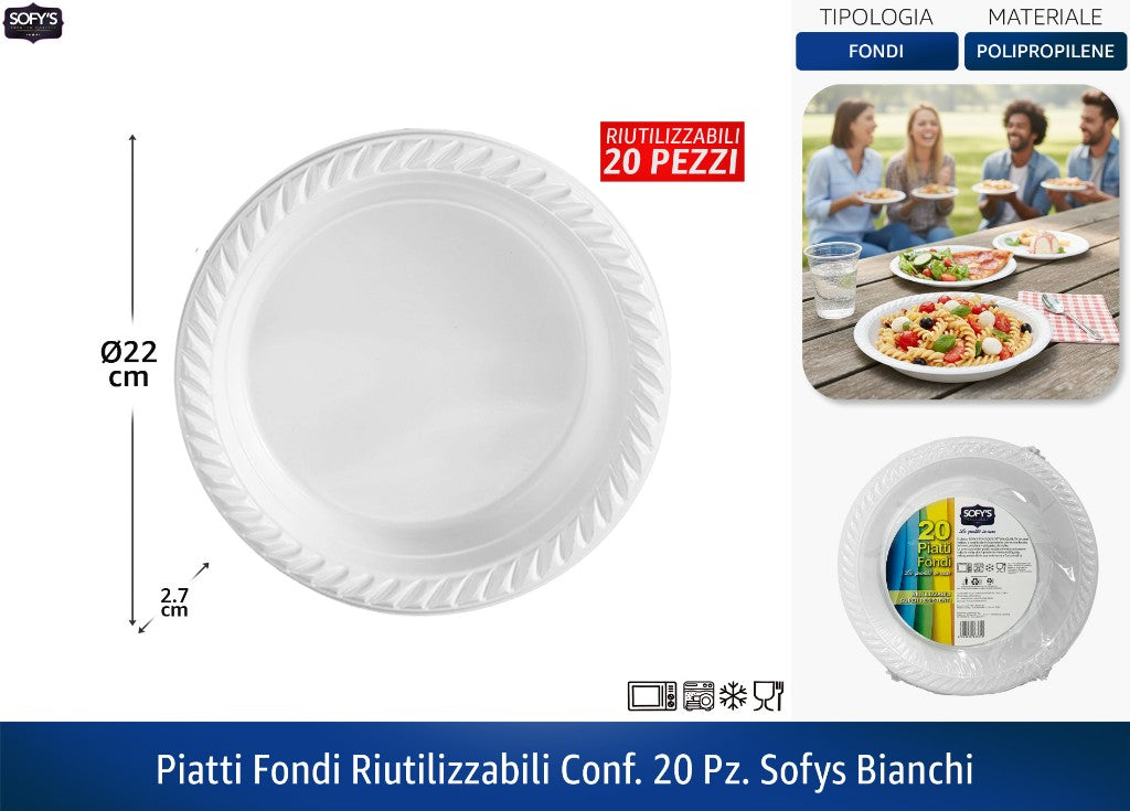 Piatti Fondi Riutilizzabili Conf. 20 Pz. Sofys Bianchi