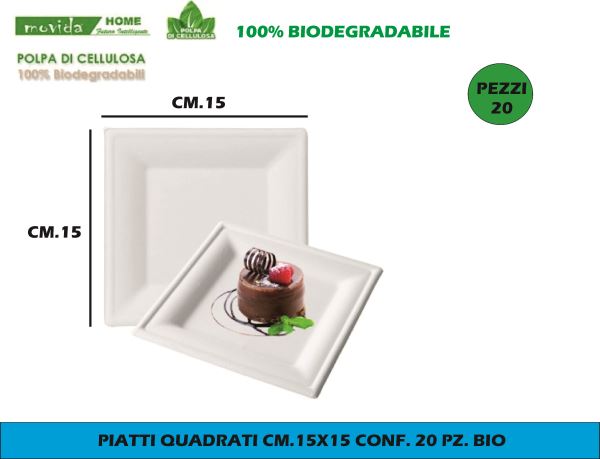 Piatti Quadrati Cm.15X15 Conf. 20 Pz. Bio