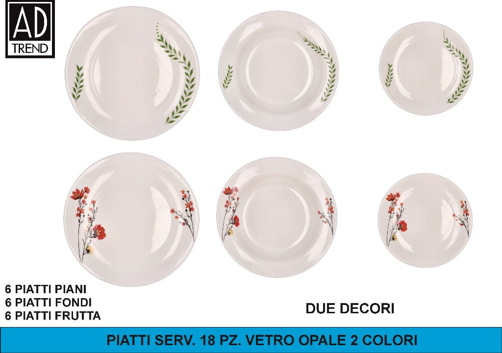 Piatti Serv. 18 Pz. Vetro Opale 2 Colori