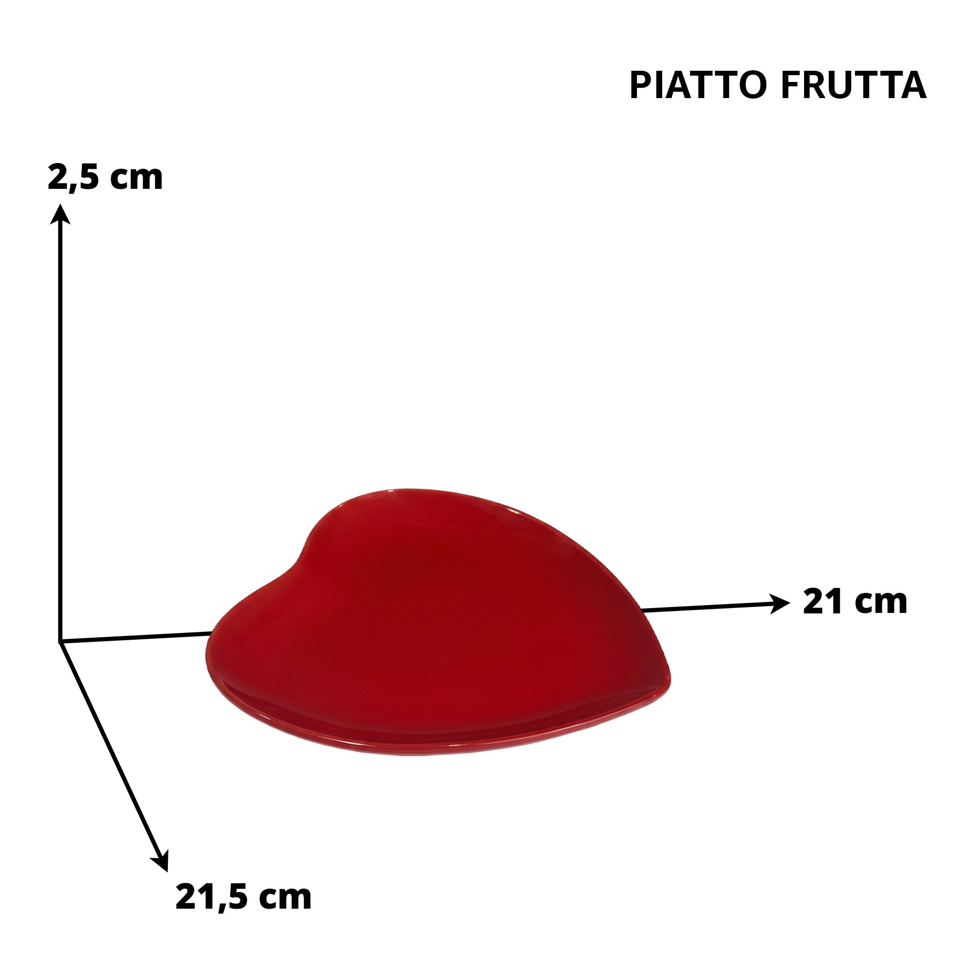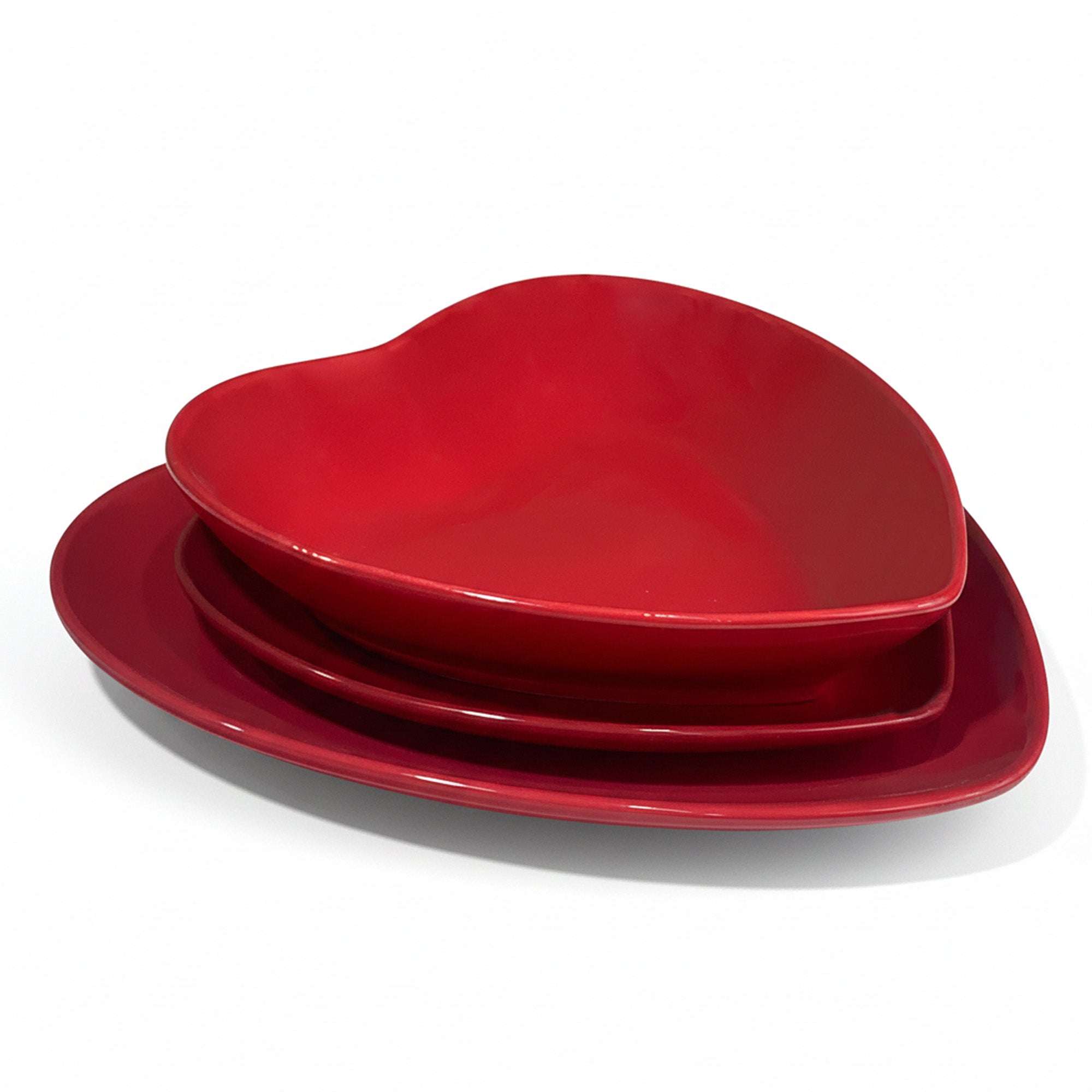 Piatto a Forma di Cuore Rosso in Porcellana Lucida - Servizio Piatti Romantico per San Valentino, Anniversario e Matrimonio - Piatto Piano 25cm, Fondo 20cm e Frutta 20cm - Ideale per Cene a Lume di Candela, Regalo per Lei, Decorazione Tavola Festa