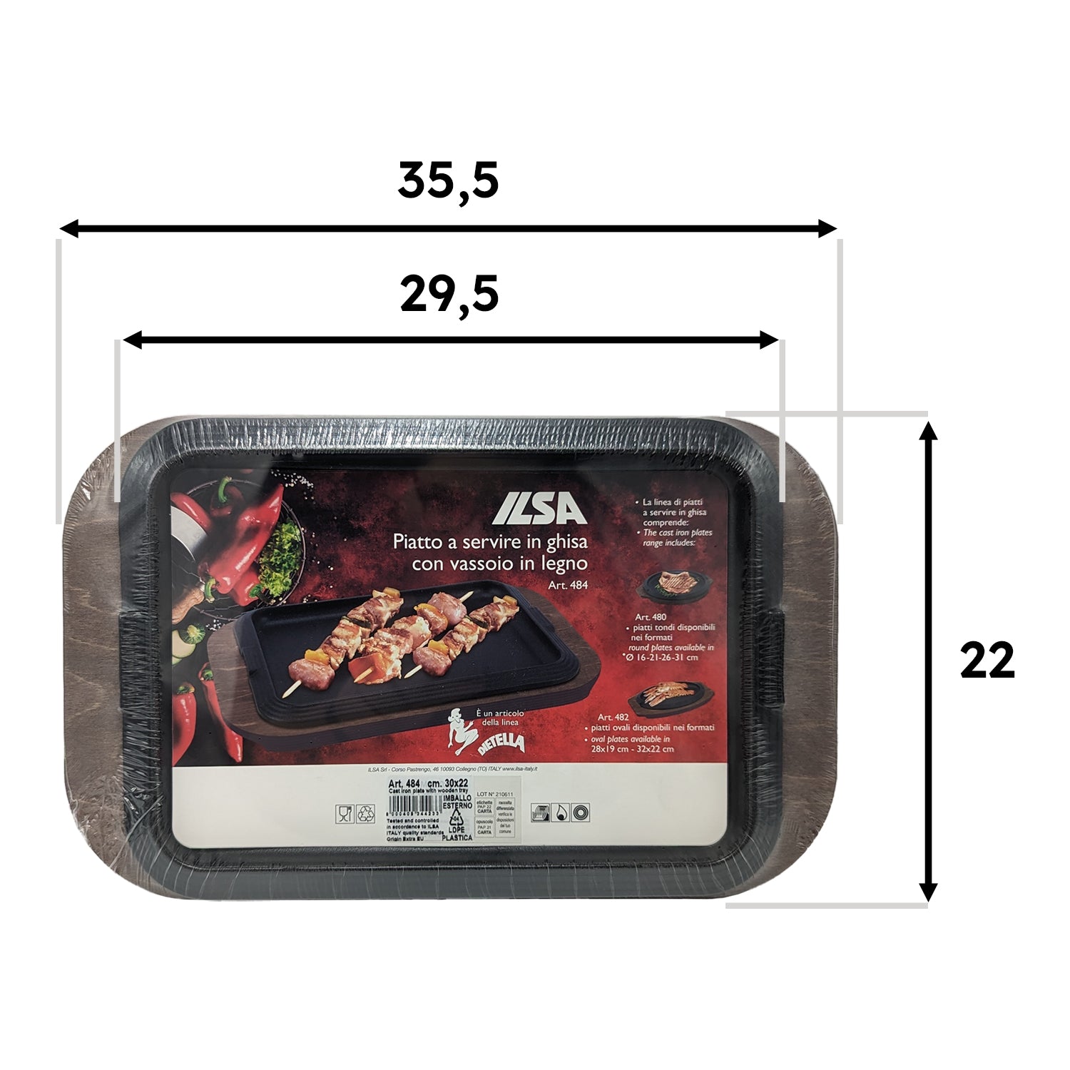 Ilsa Piatto a Servire Rett.re Cm.30x22 Ghisa-legno