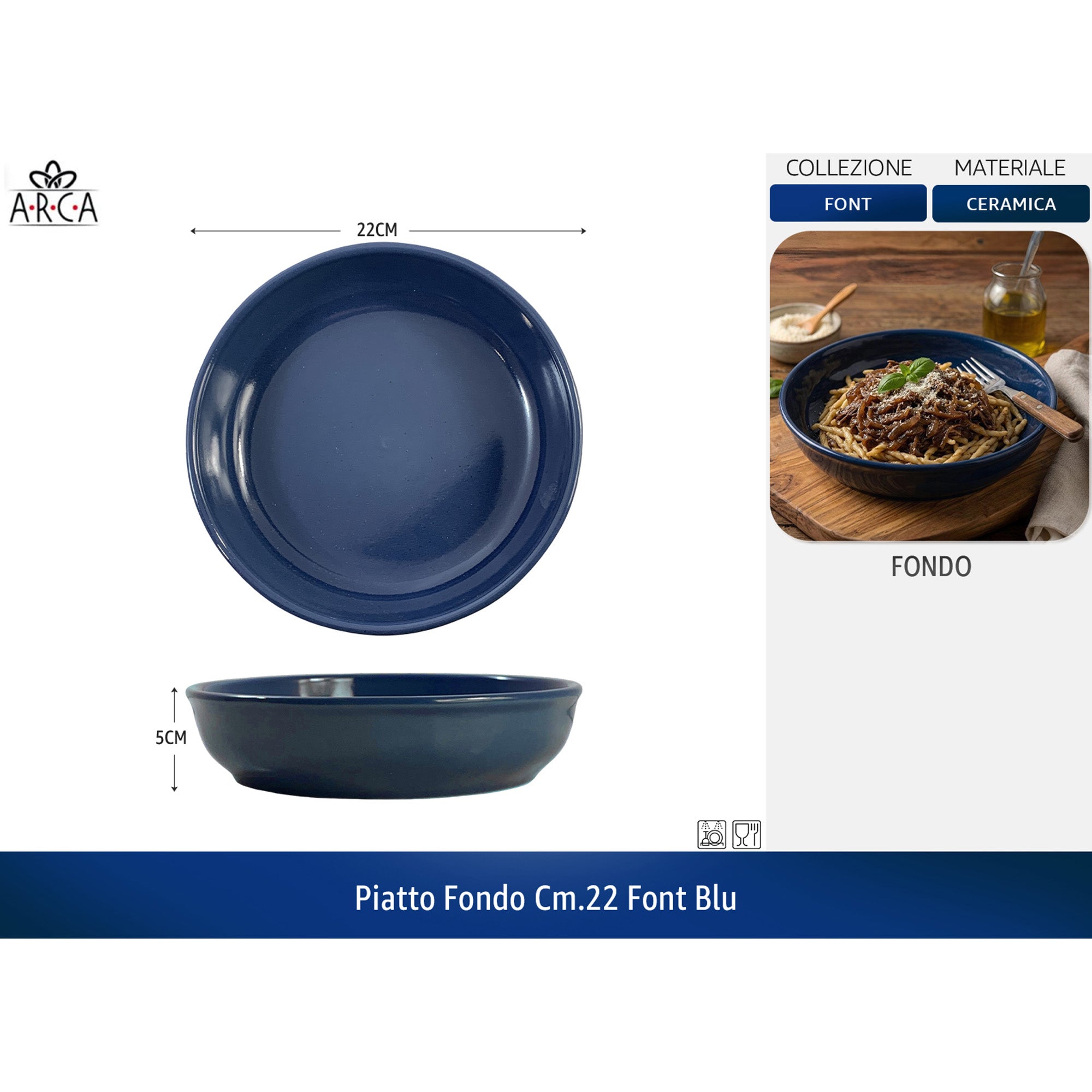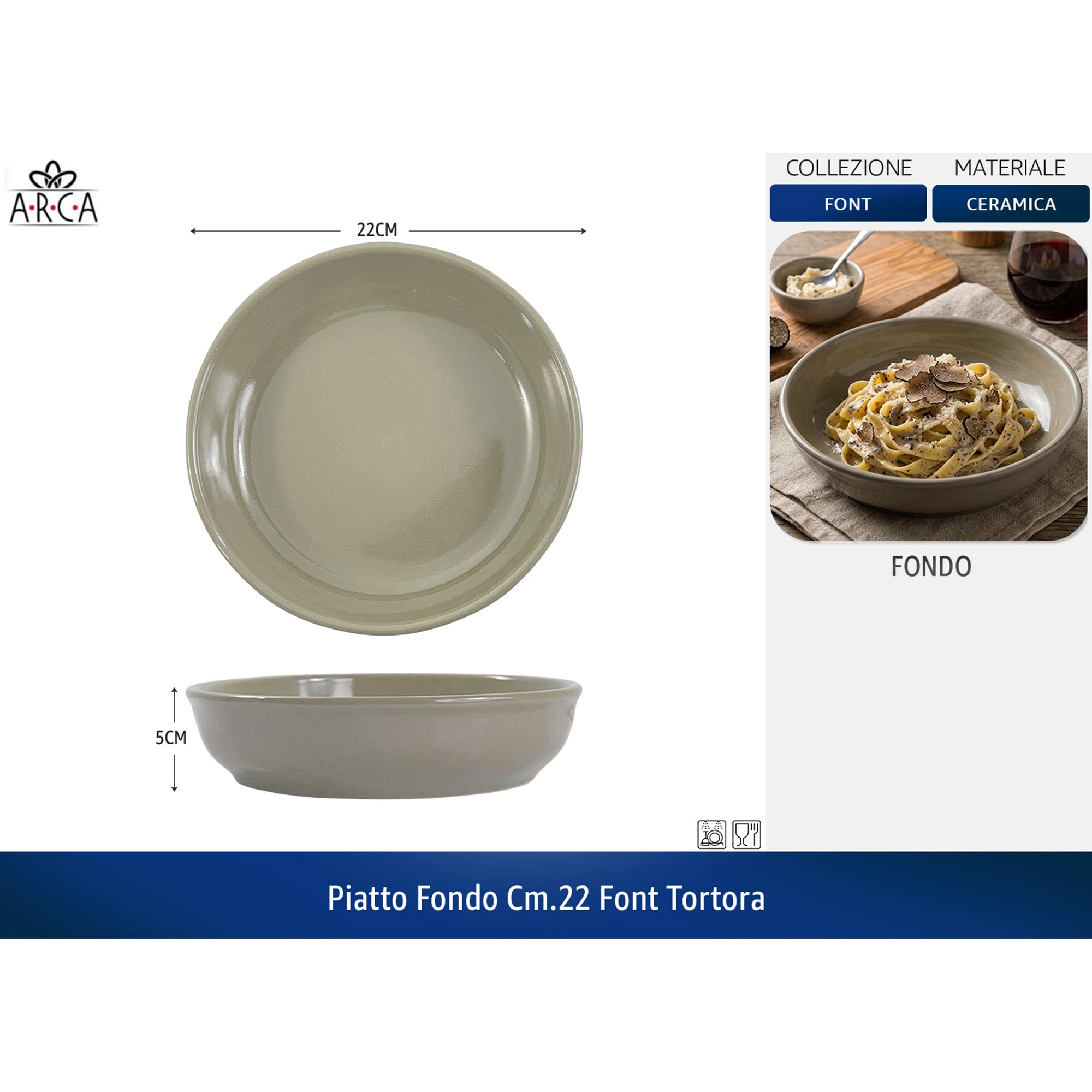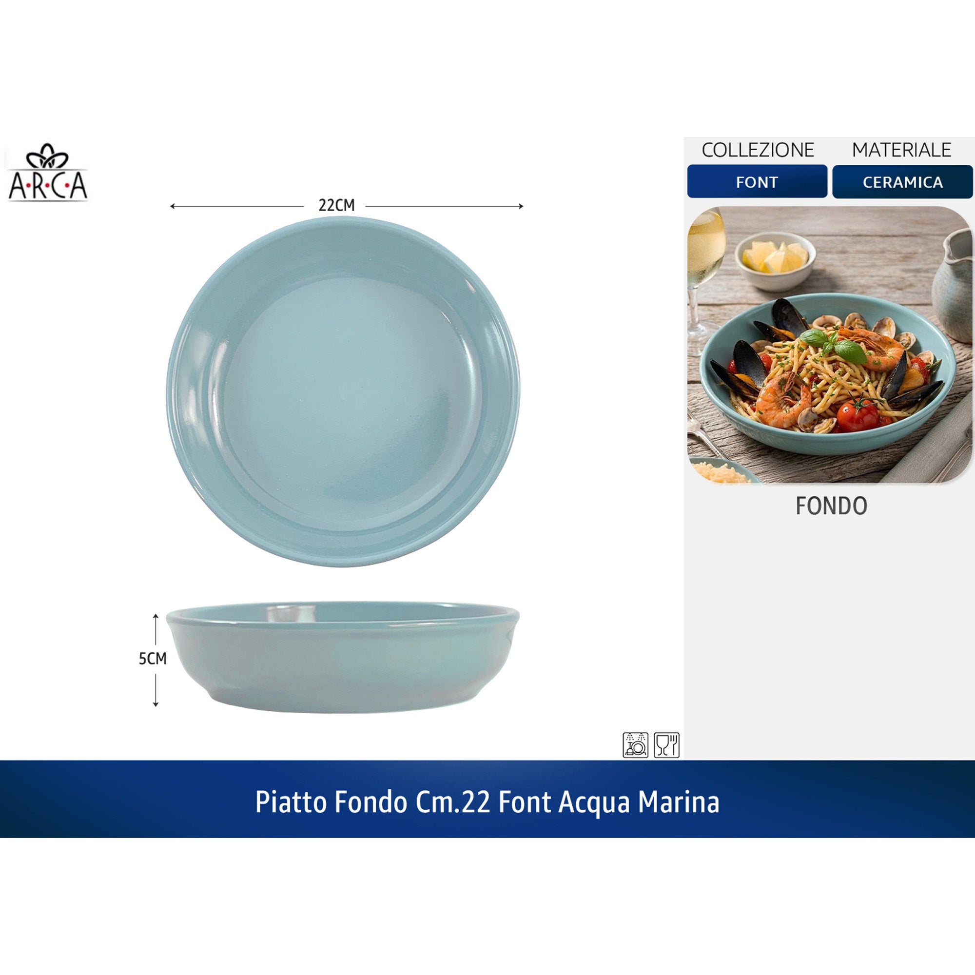 Arca Piatto Fondo Linea Font cm.22 - Colori Blu | Acqua Marina | Tortora
