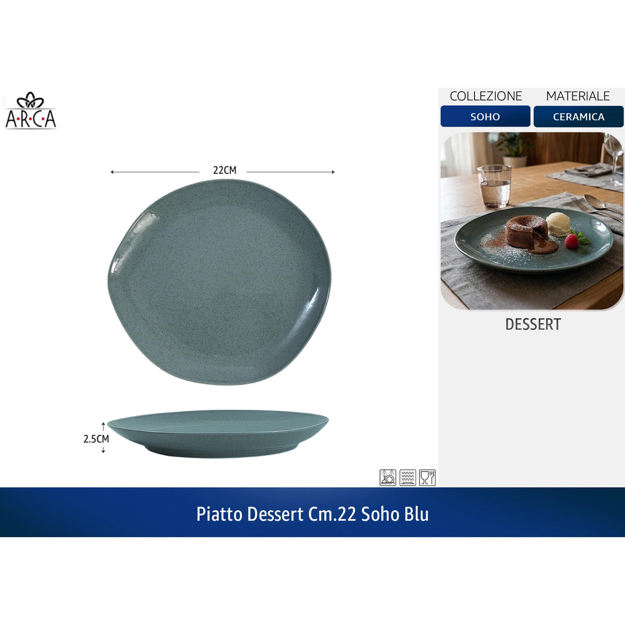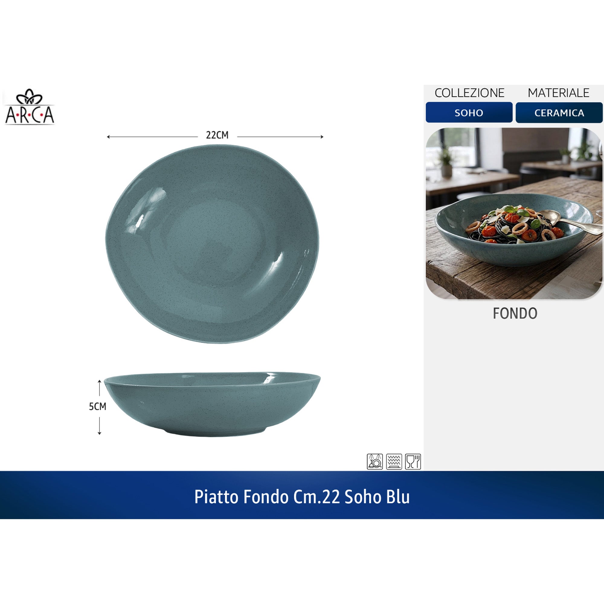 Arca Piatto Fondo/Piano/Dessert Linea Soho - Colori Blu | Acqua Marina | Tortora