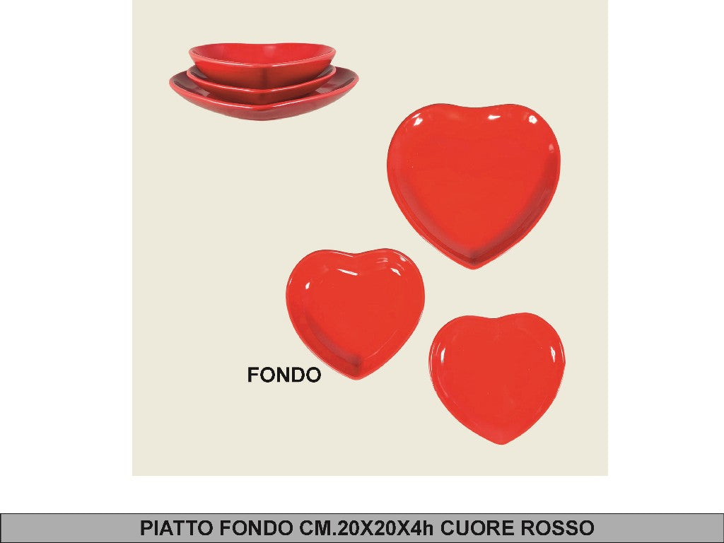 Piatto Fondo Cm.20x20x4 Cuore Rosso