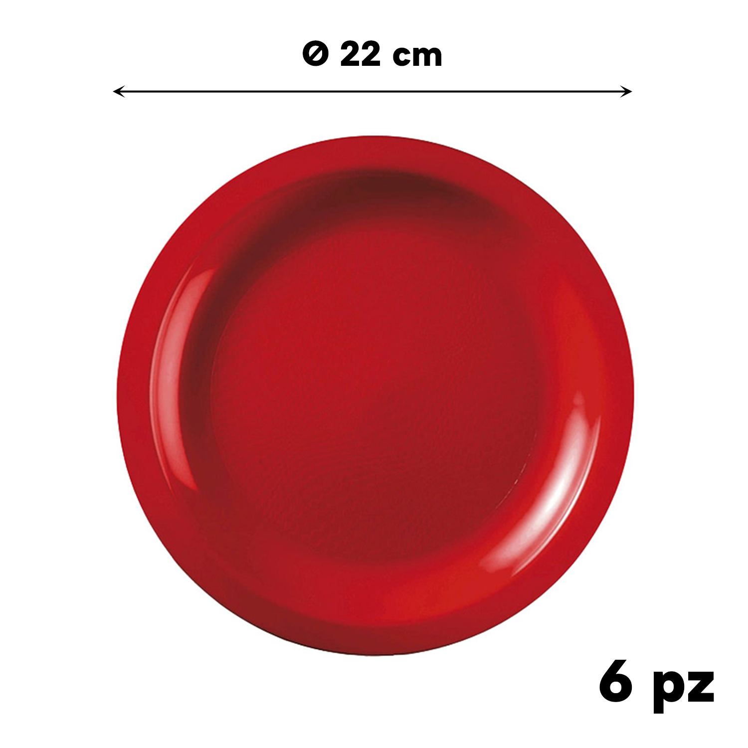 Piatto Piano Cm.22 Conf. 6 Pz. Rosso Riutilizzabili