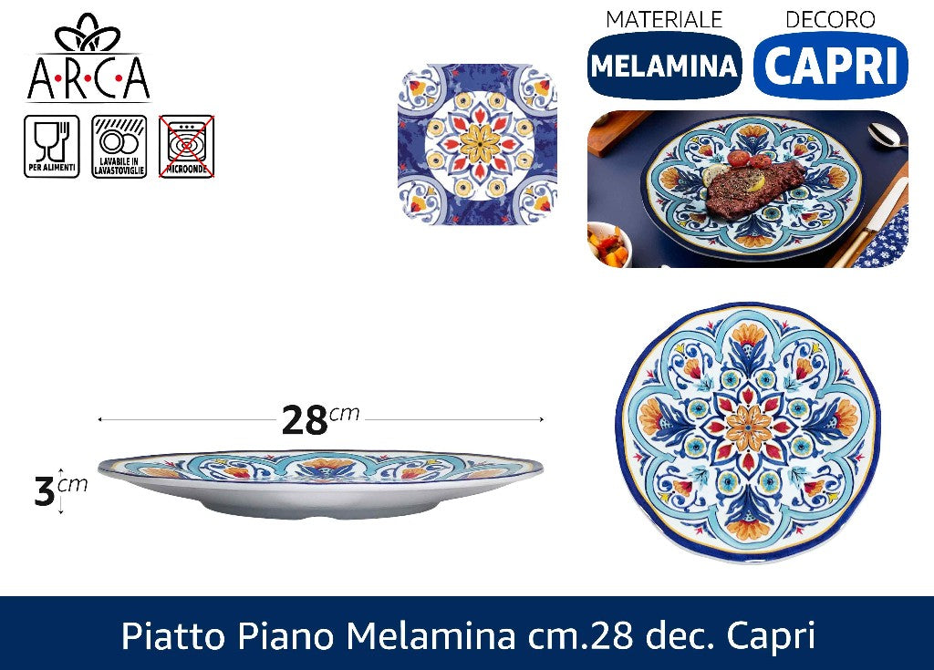 PIATTO PIANO MELAMINA CM.28 DEC. CAPRI