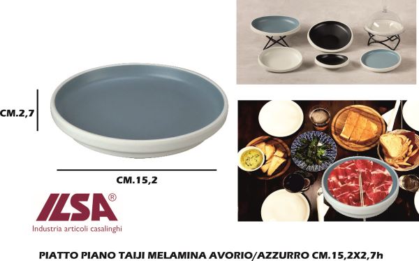 Ilsa Piatto Piano Taiji Melamina Avorio/azz. Cm.15,2x2,7h