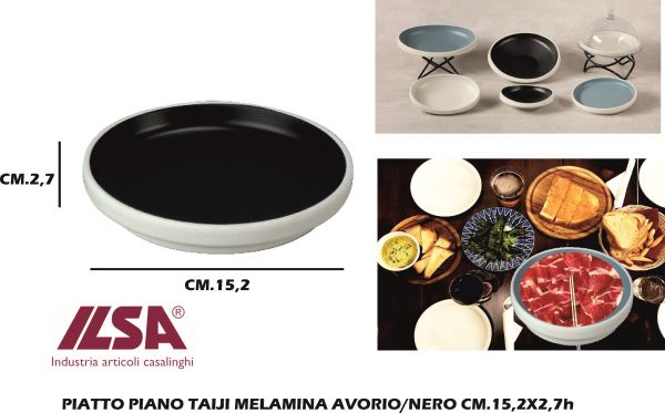 Ilsa Piatto Piano Taiji Melamina Avorio/nero Cm.15,2x2,7h