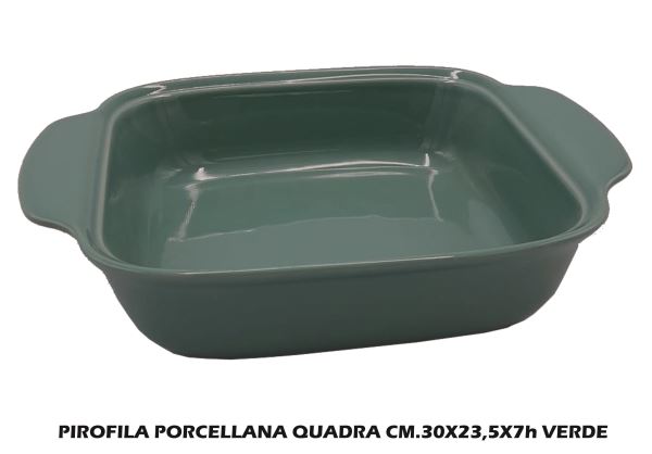 PIROFILA PORCELLANA QUADRA CM.30X23,5X7h VERDE