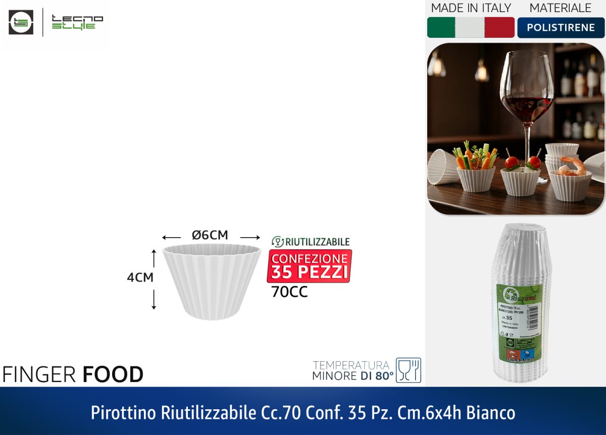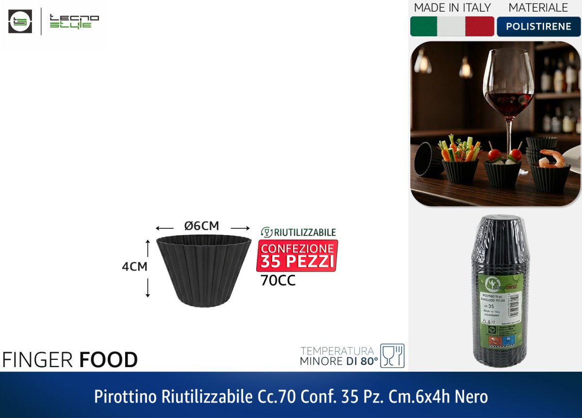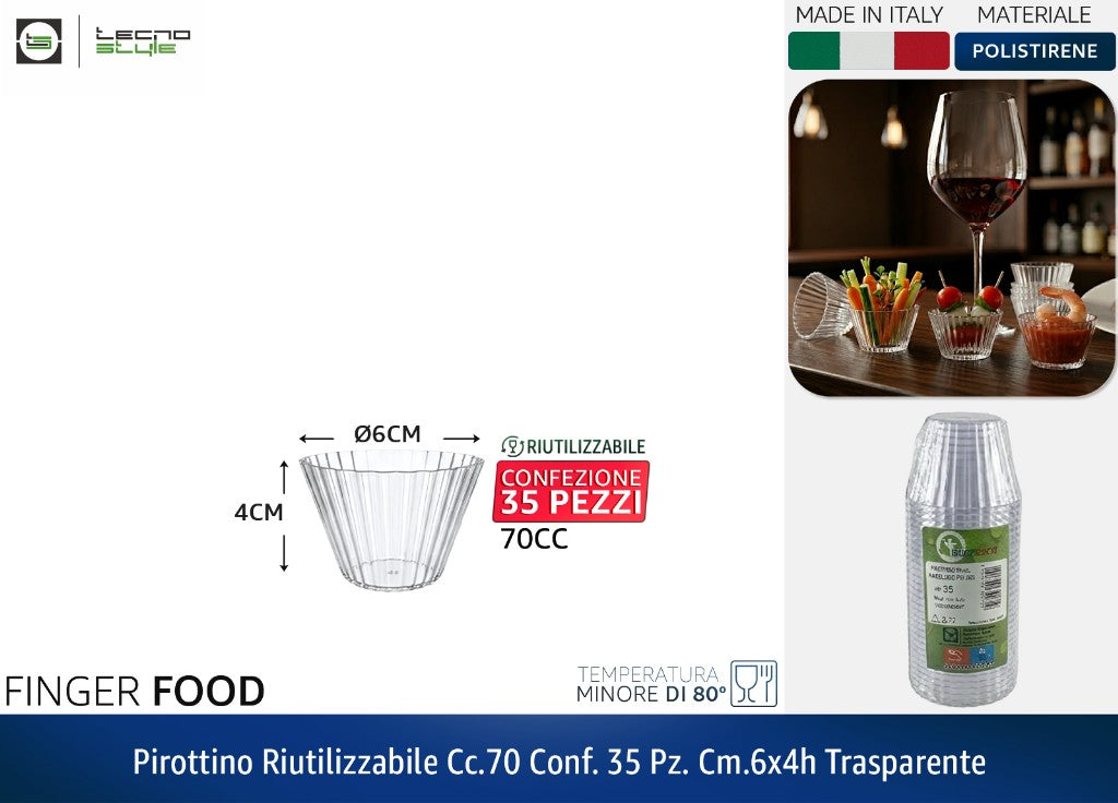 Pirottino Riutilizzabile cc.70, Confezione da 35 Pz, cm.6x4h - Colori Trasparente | Bianco | Nero