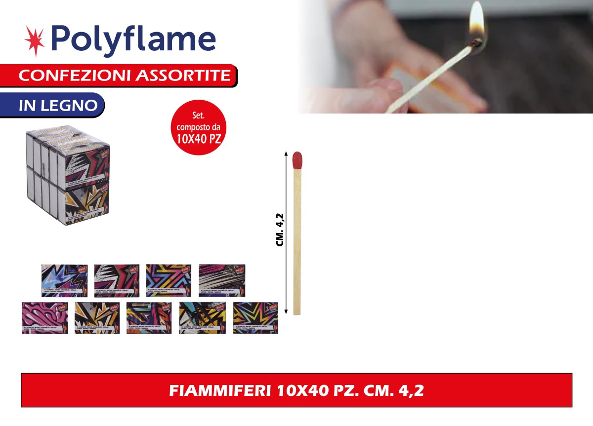 Polyflame Fiammiferi in Legno 40pz 4,2cm Confezione Assortita
