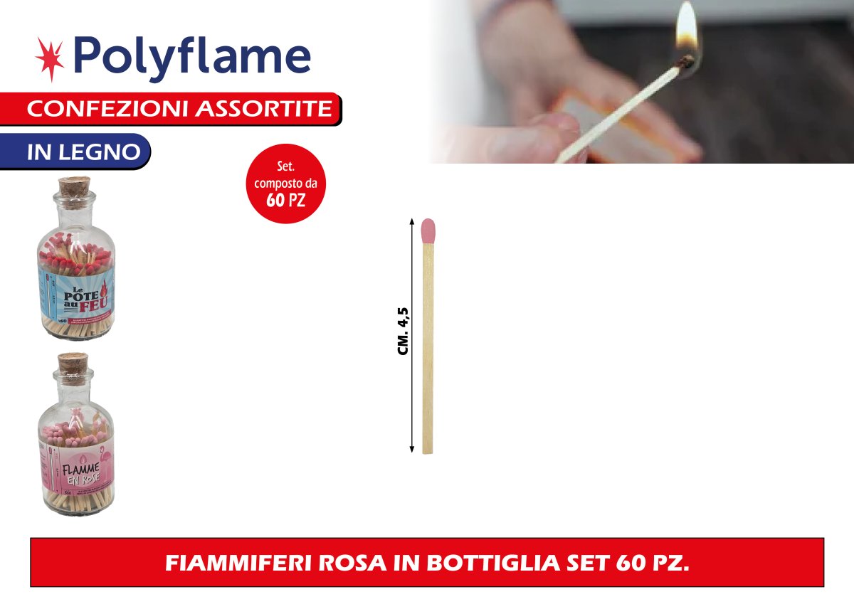 Polyflame FIAMMIFERI ROSA IN BOTTIGLIA SET 60 PZ.