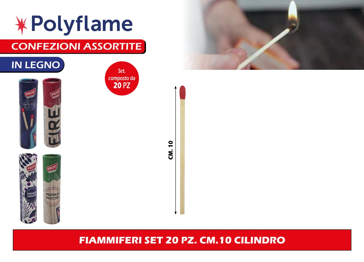 Polyflame FIAMMIFERI SET 20 PZ. CM.10 CILINDRO