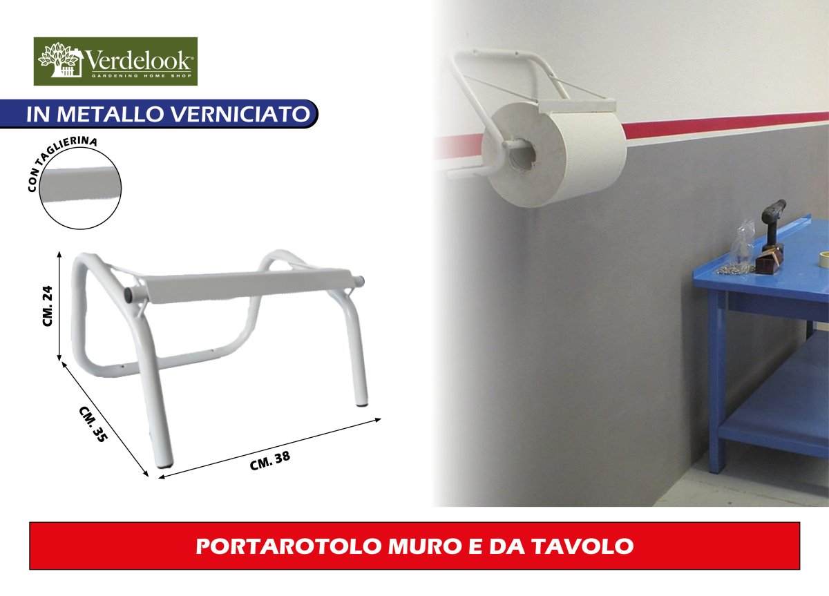 Biacchi Portarotolo Industriale Murale o da Tavolo 40×26×36 cm, Metallo Tubolare Ø20 mm, Verniciato