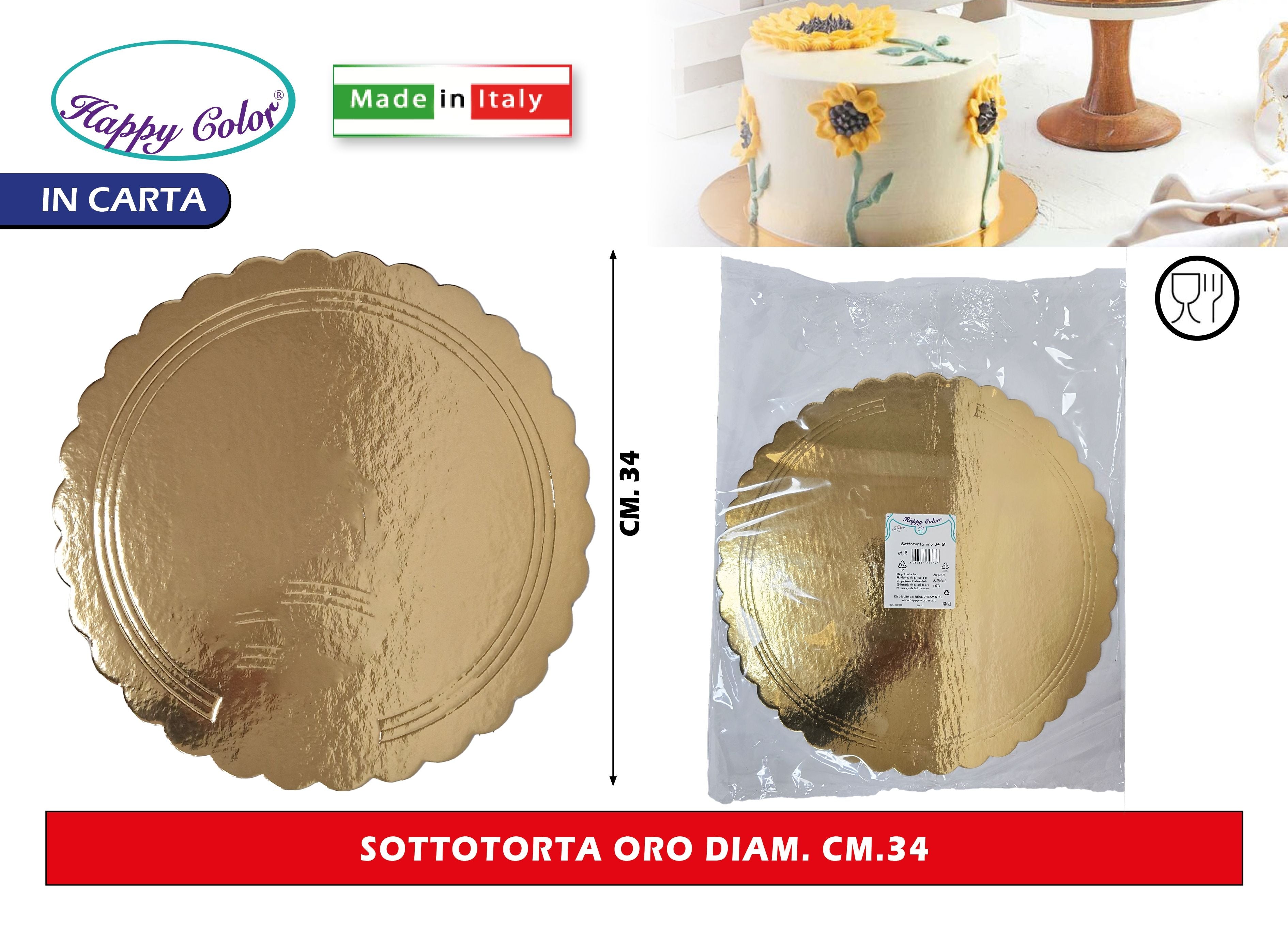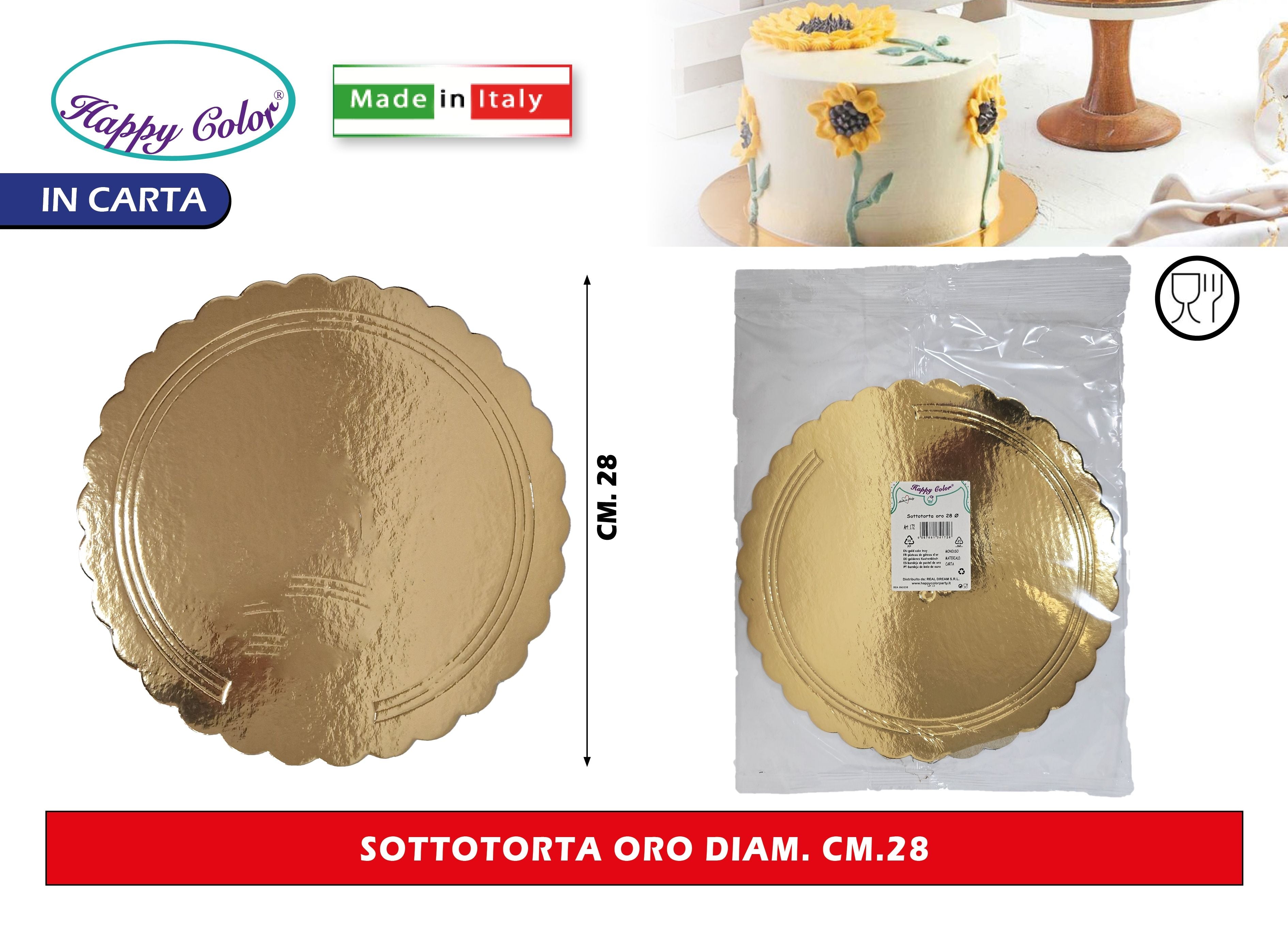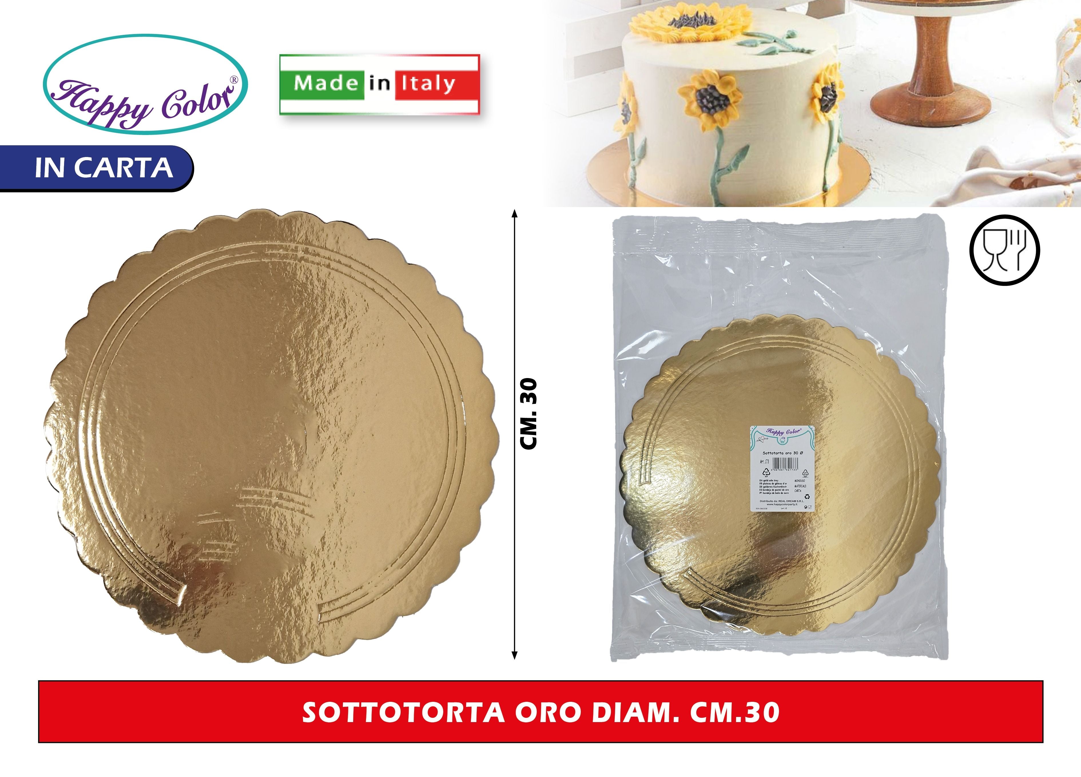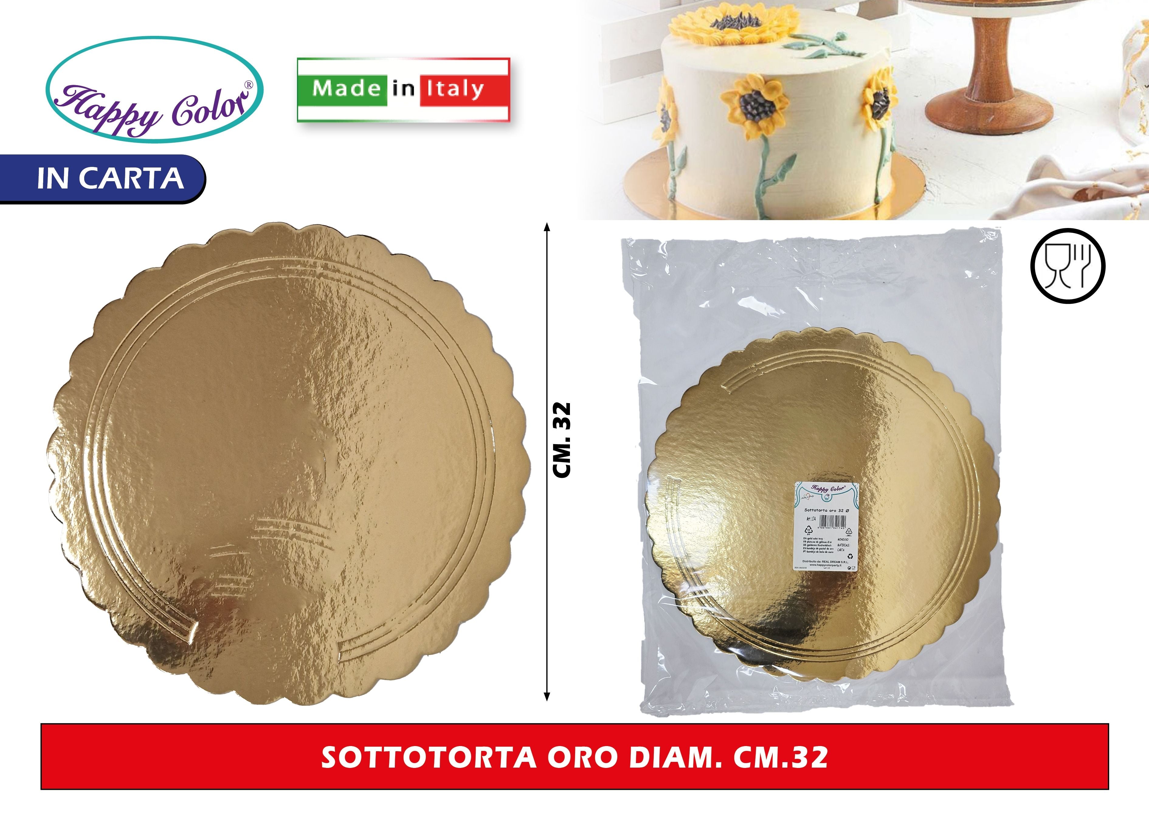 Real Dream Dischi Sottotorta Oro Tondi in Cartone per Alimenti Diametro 26–38 Cm