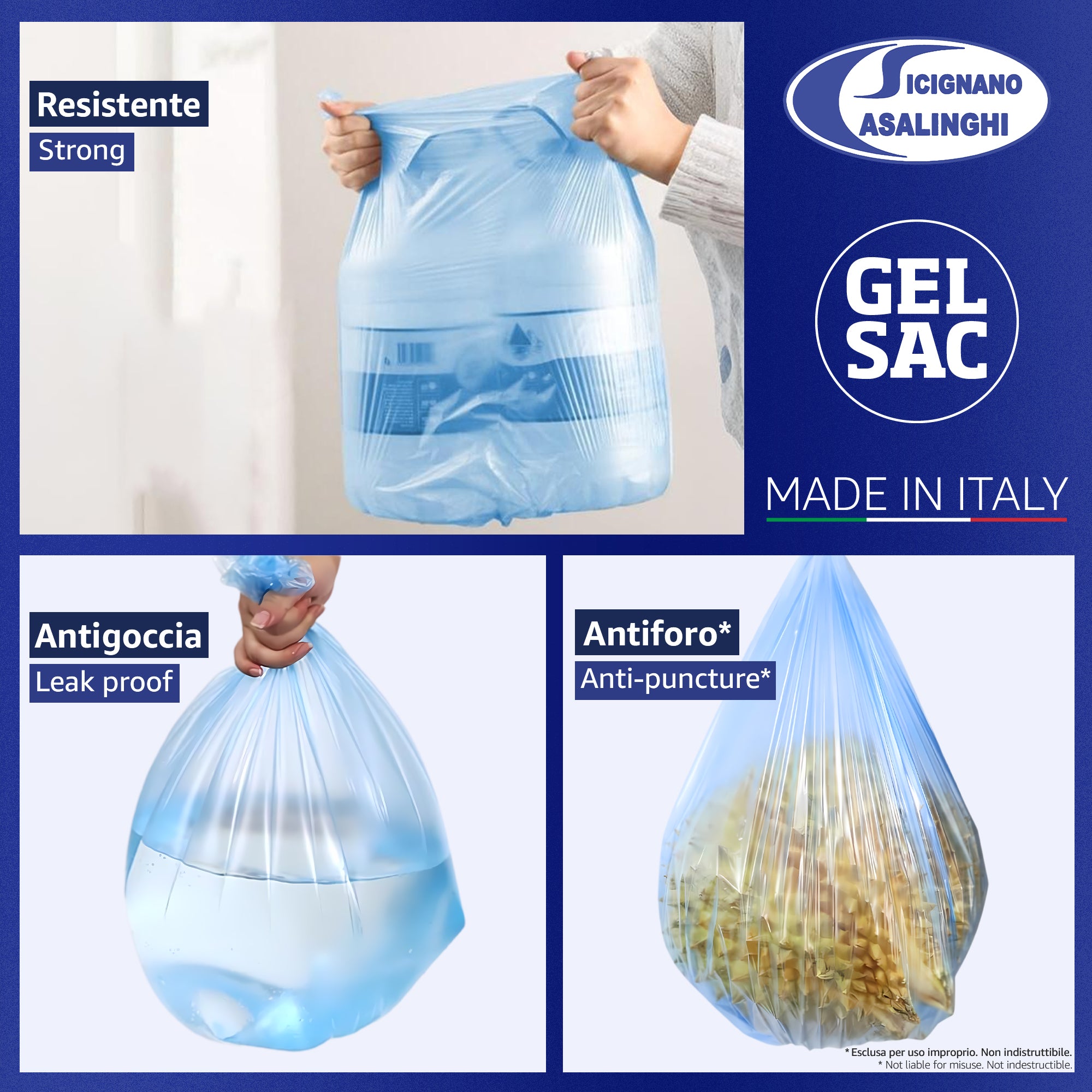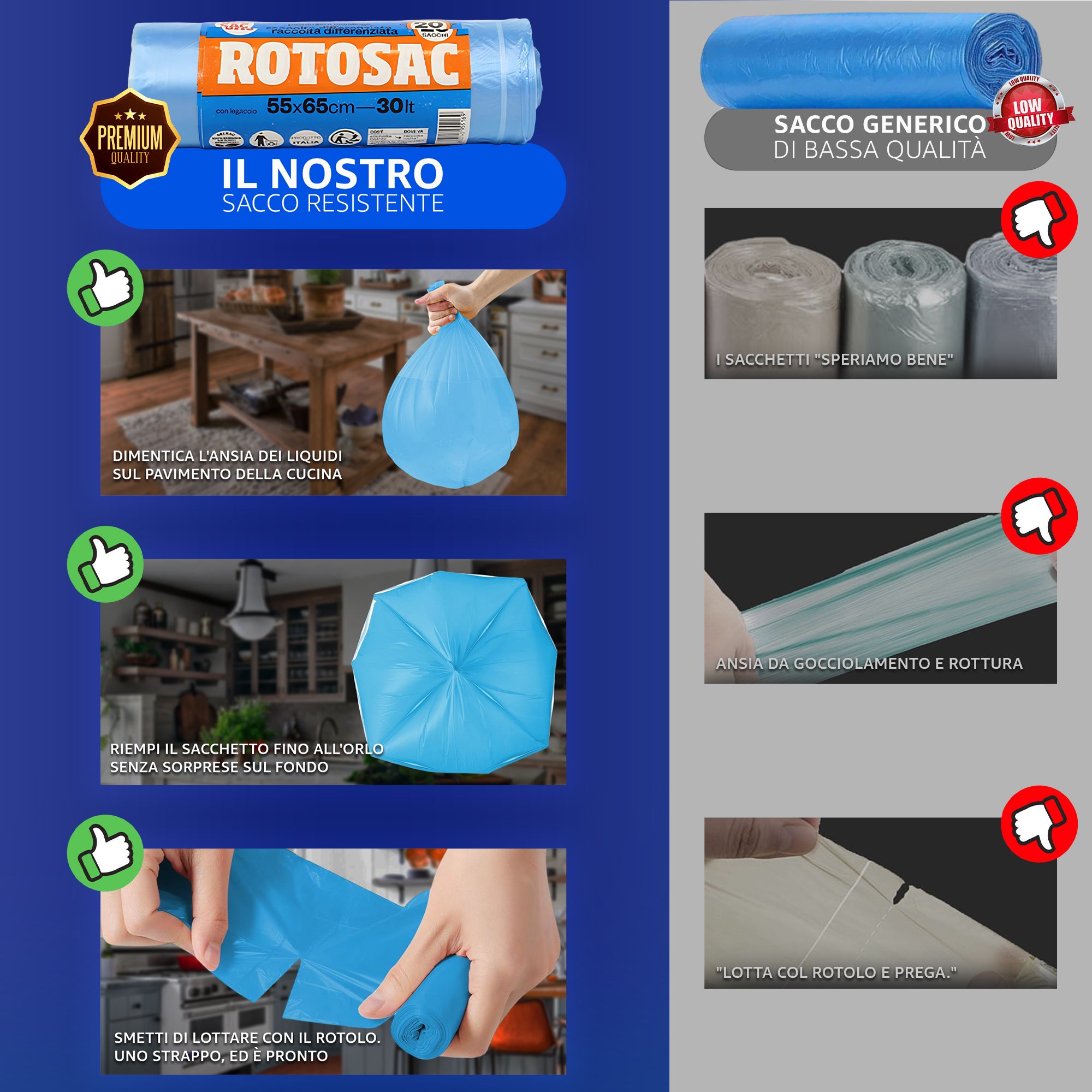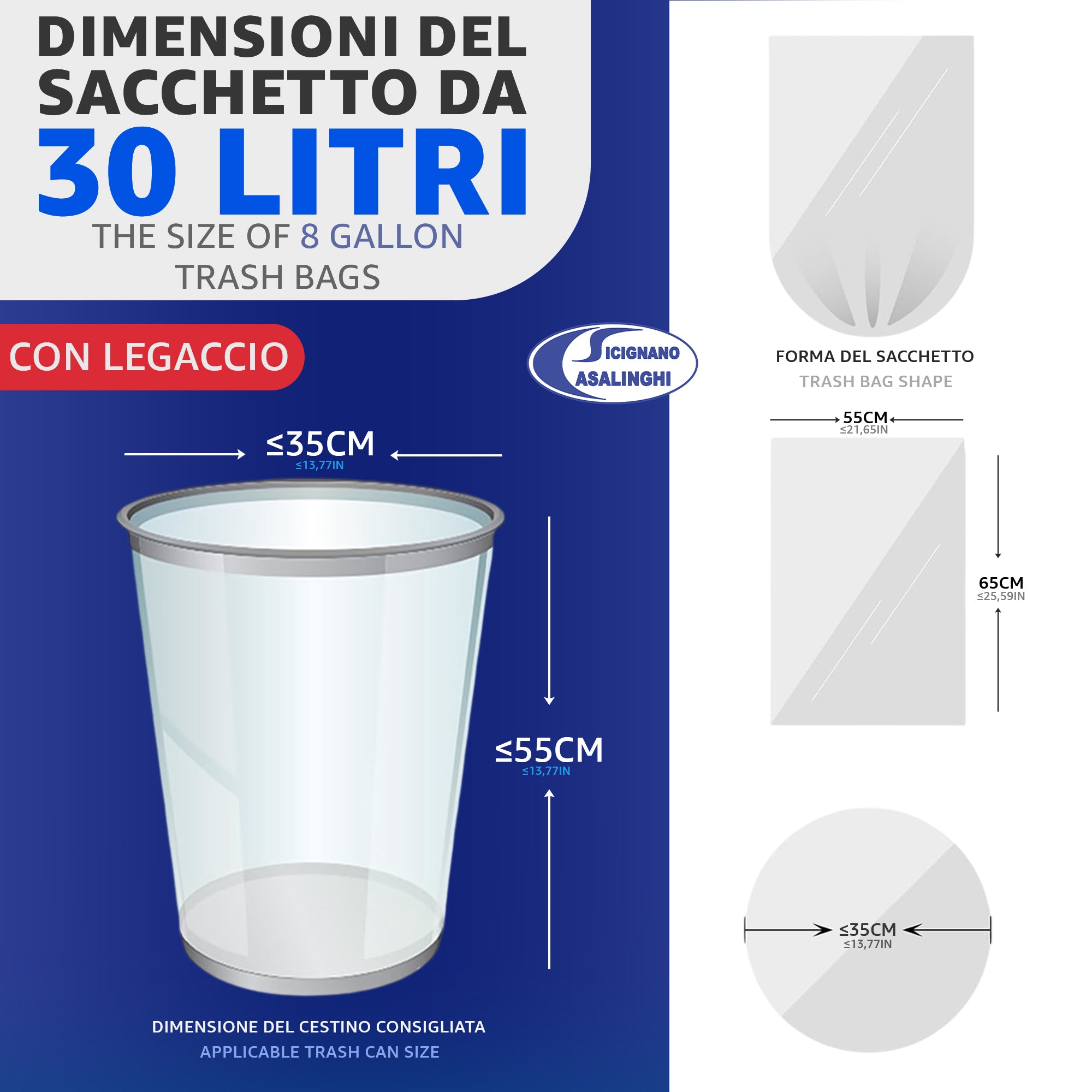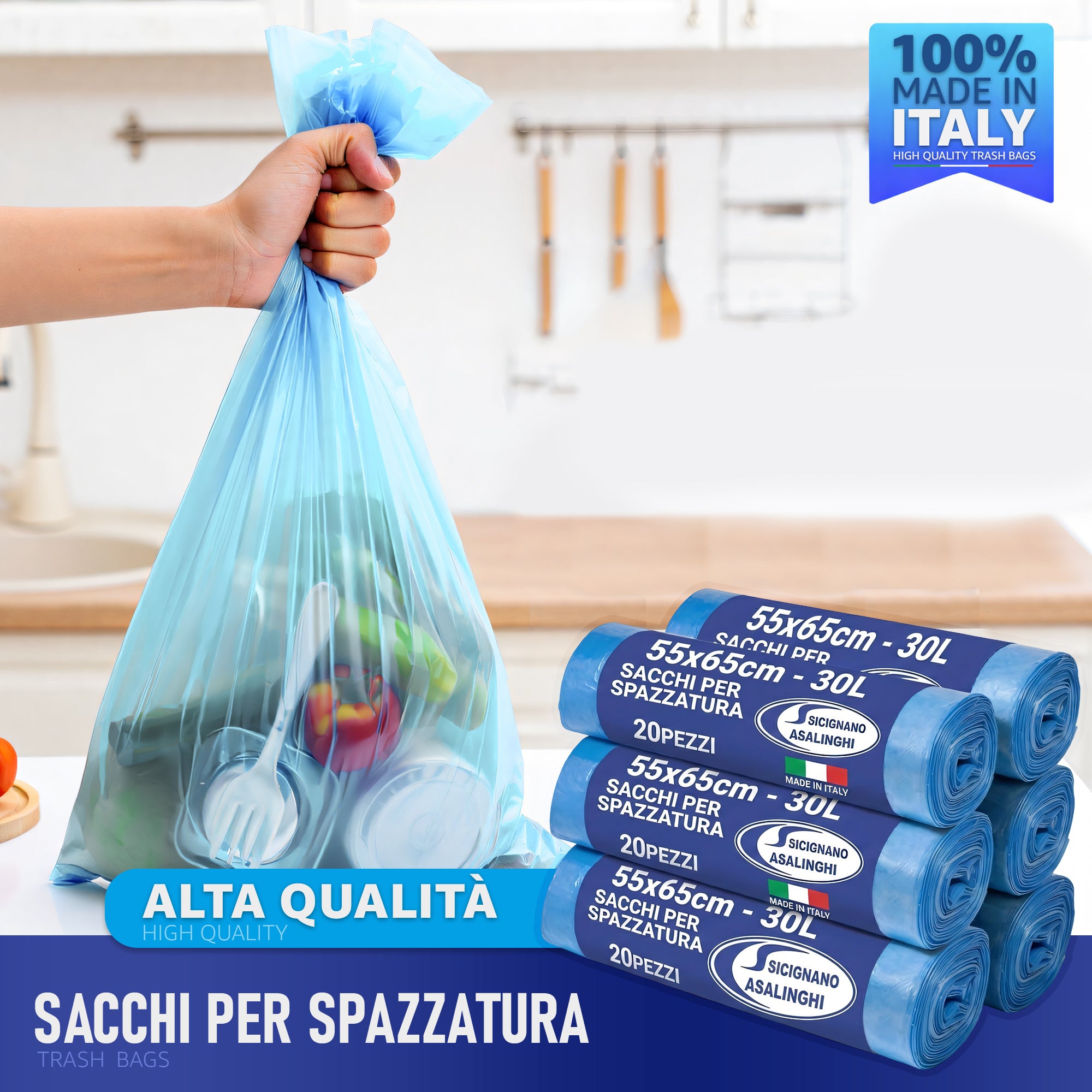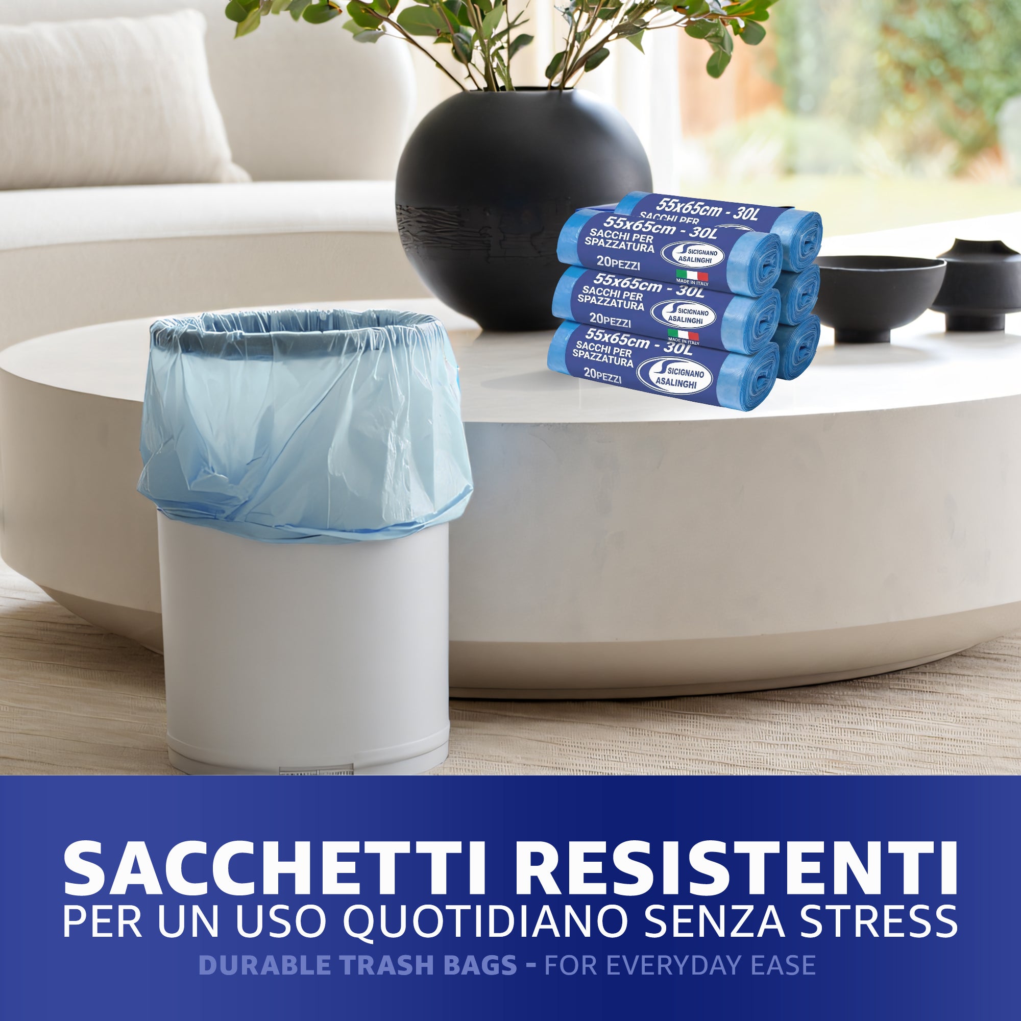 120 Sacchetti Immondizia 30L Premium Strength - 55x65cm con Legaccio - Made in Italy Anti-Goccia