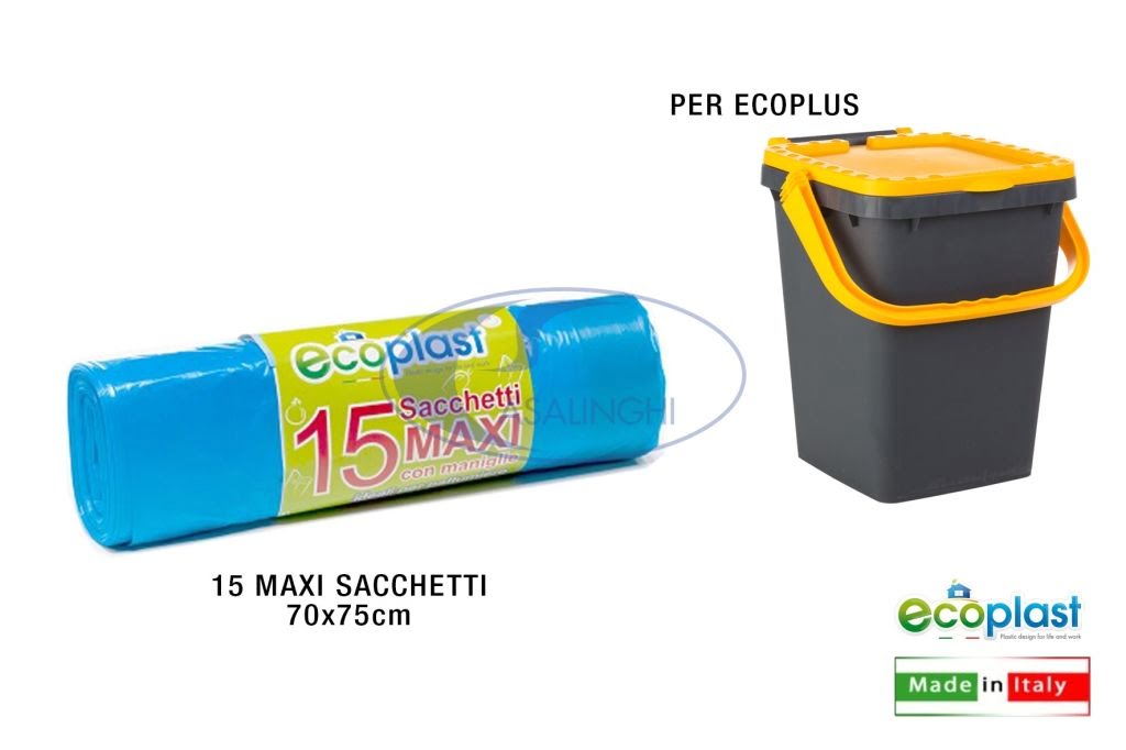 Sacchetto Immondizia Blu Cm.70x75 Cf.15 Pz. X Ecologic Ecop Manici Raccolta Differenziata