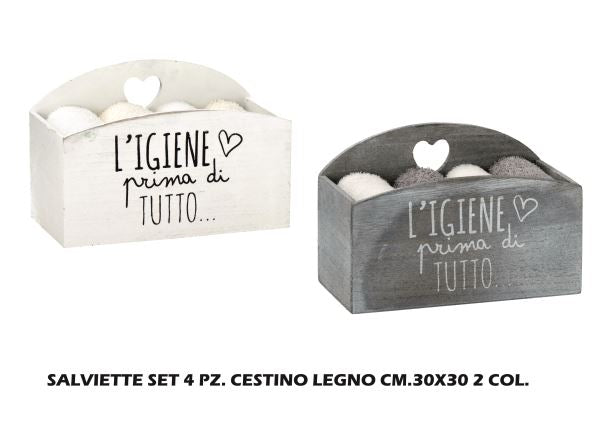 Salviette Set 4 Pz. Con Cestino Legno Cm.30X30 2 Ass.