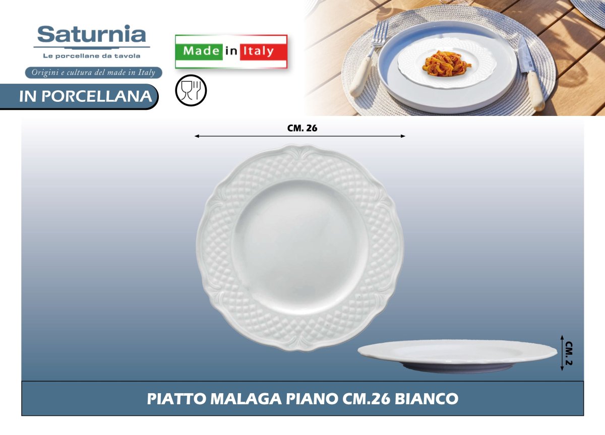 Linea Malaga Piatto in Porcellana Bianco Made in Italy Diversi Modelli