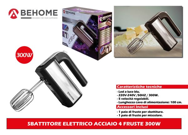 Sbattitore Elettrico 4 Fruste 300W Acciaio Behome