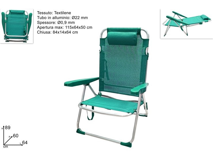 Sdraio Alluminio Diam. Mm.22 Telo Texilene Con Cuscino Turchese