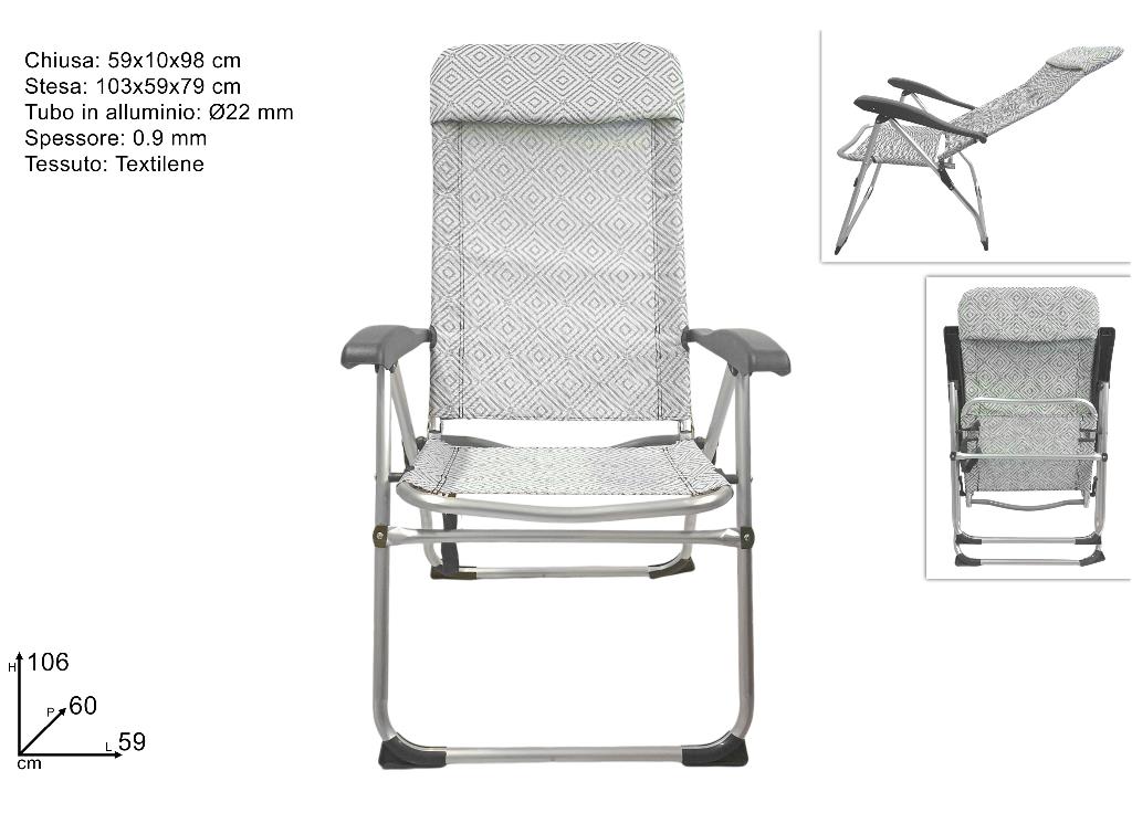 Sdraio Alluminio Tubo Mm.22 Telo Texilene Grigio