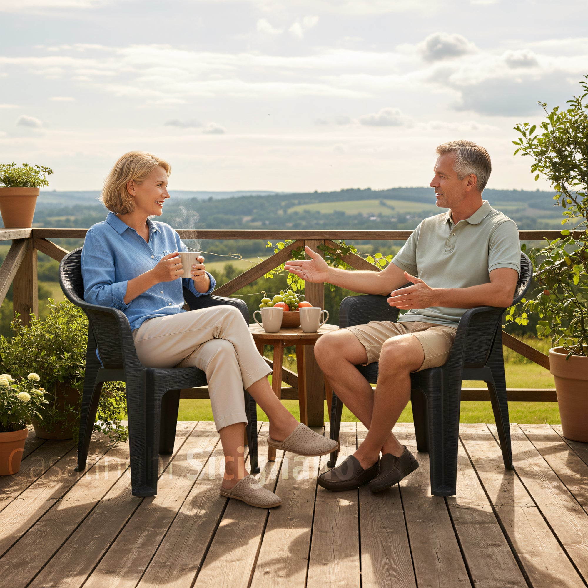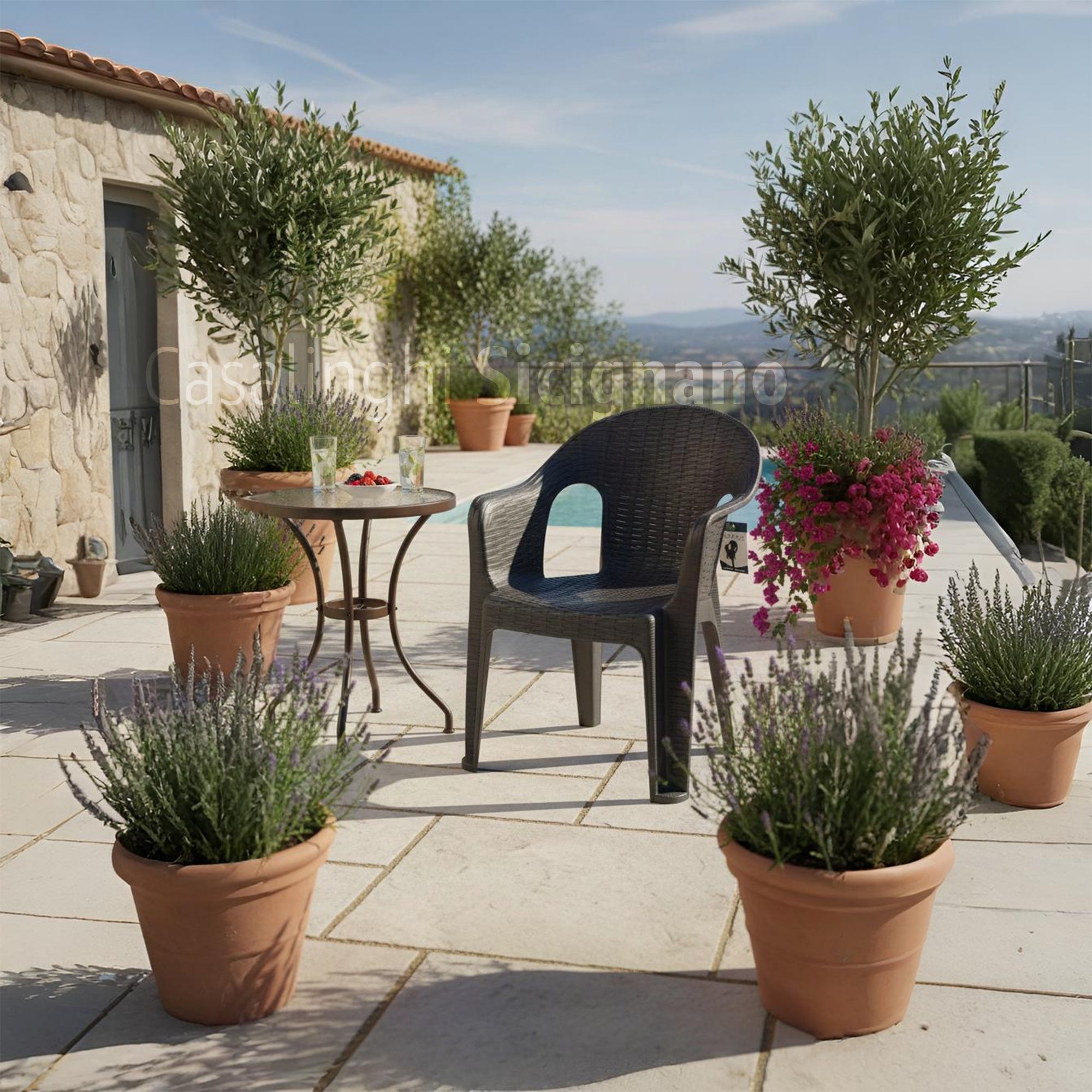 Poltrona da Giardino Impilabile con Braccioli in Plastica Riciclata Antracite - Portata 120kg