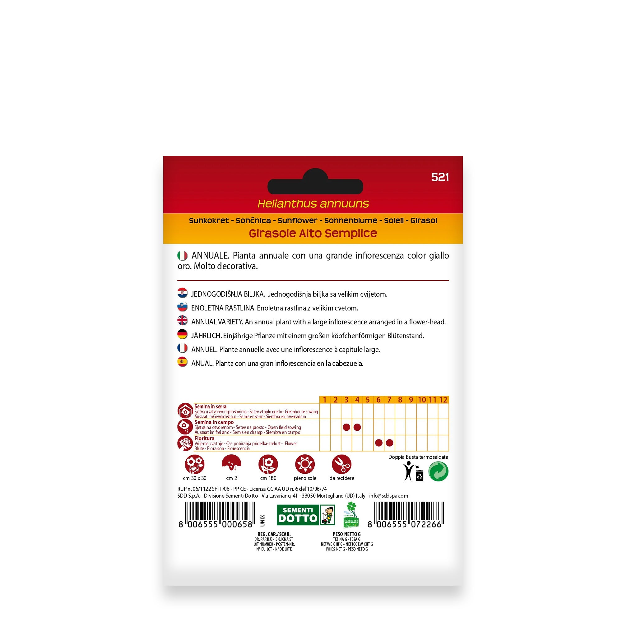 Semi di Girasole Alto Semplice (Helianthus annuus) - Sementi Dotto - 6gr