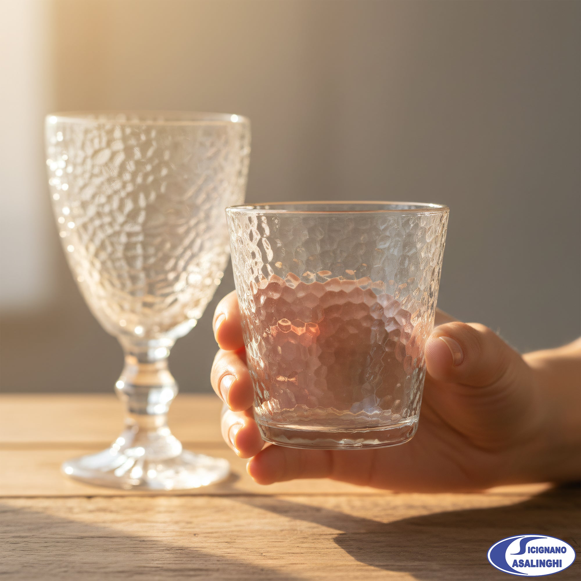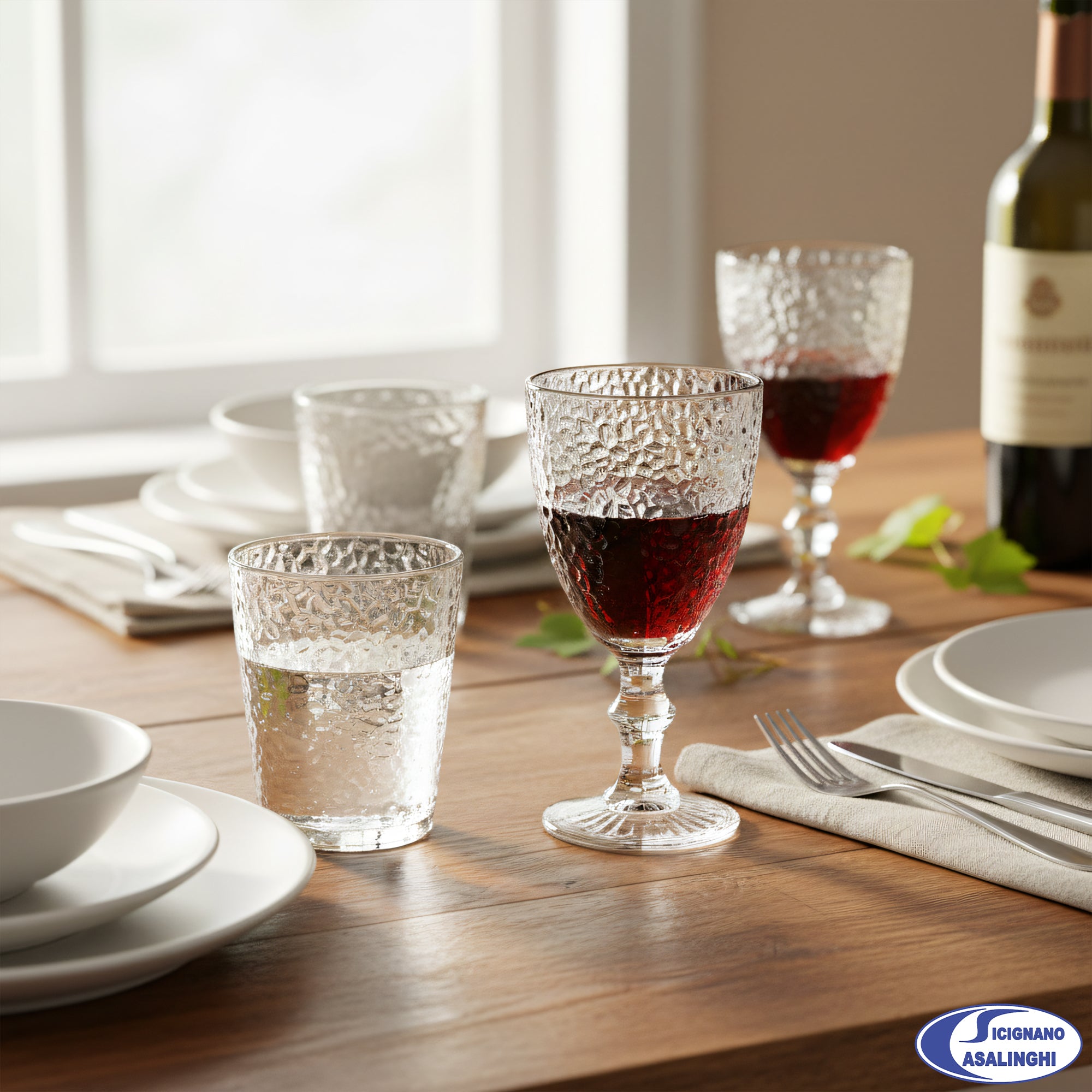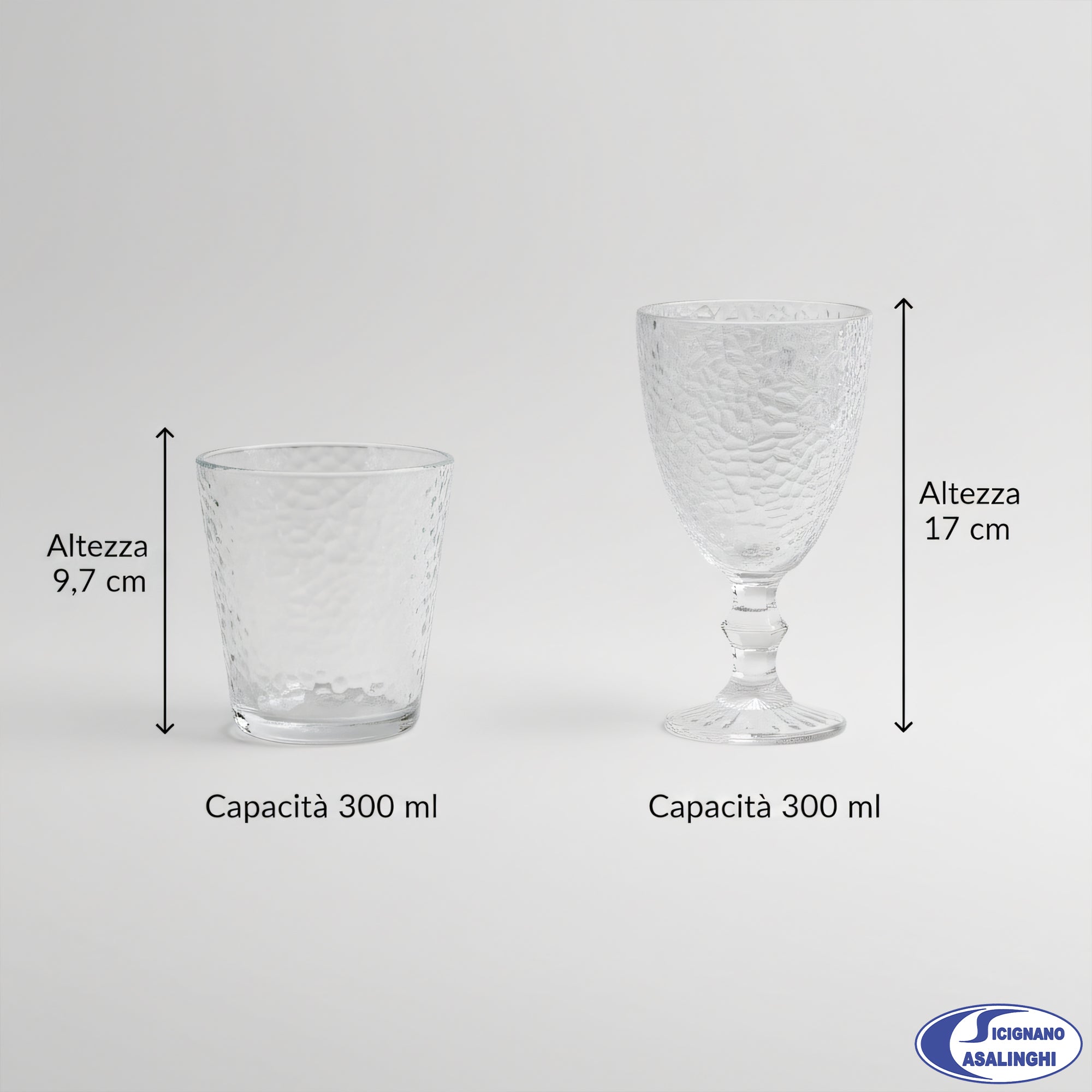 Arca Set Calici e Bicchieri 12 Pezzi (6 Vino + 6 Acqua) - Vetro Trasparente Lavorato 30cl - Resistente Lavastoviglie - Idea Regalo Casa