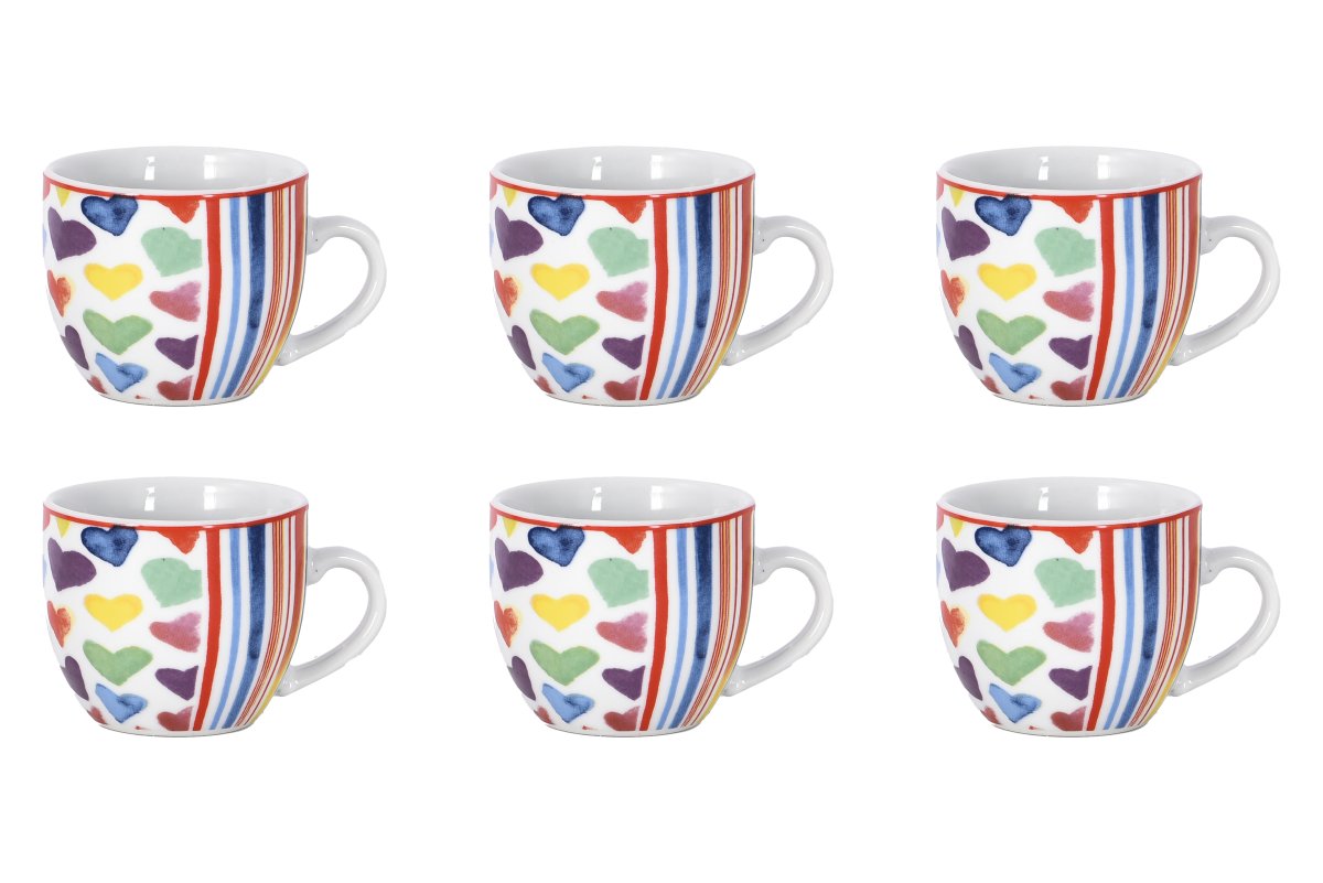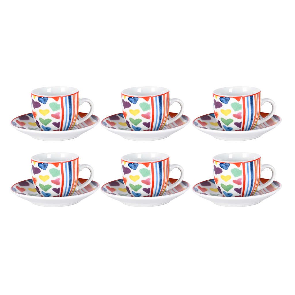 Set 6 Tazzine Caffè in Ceramica Fantasia Cuoricini (Opzione Piattino)