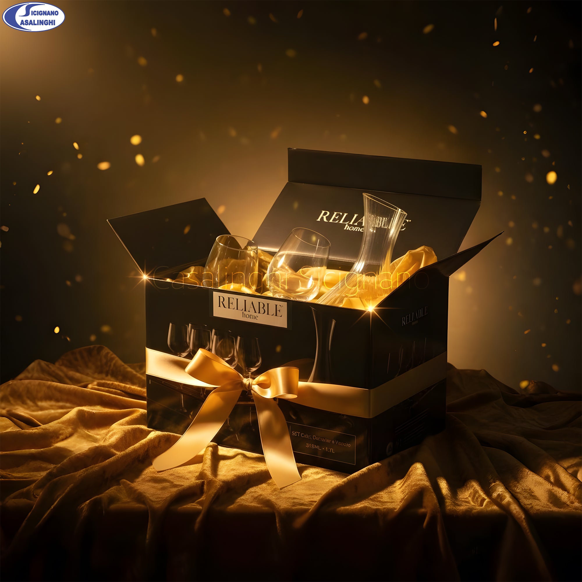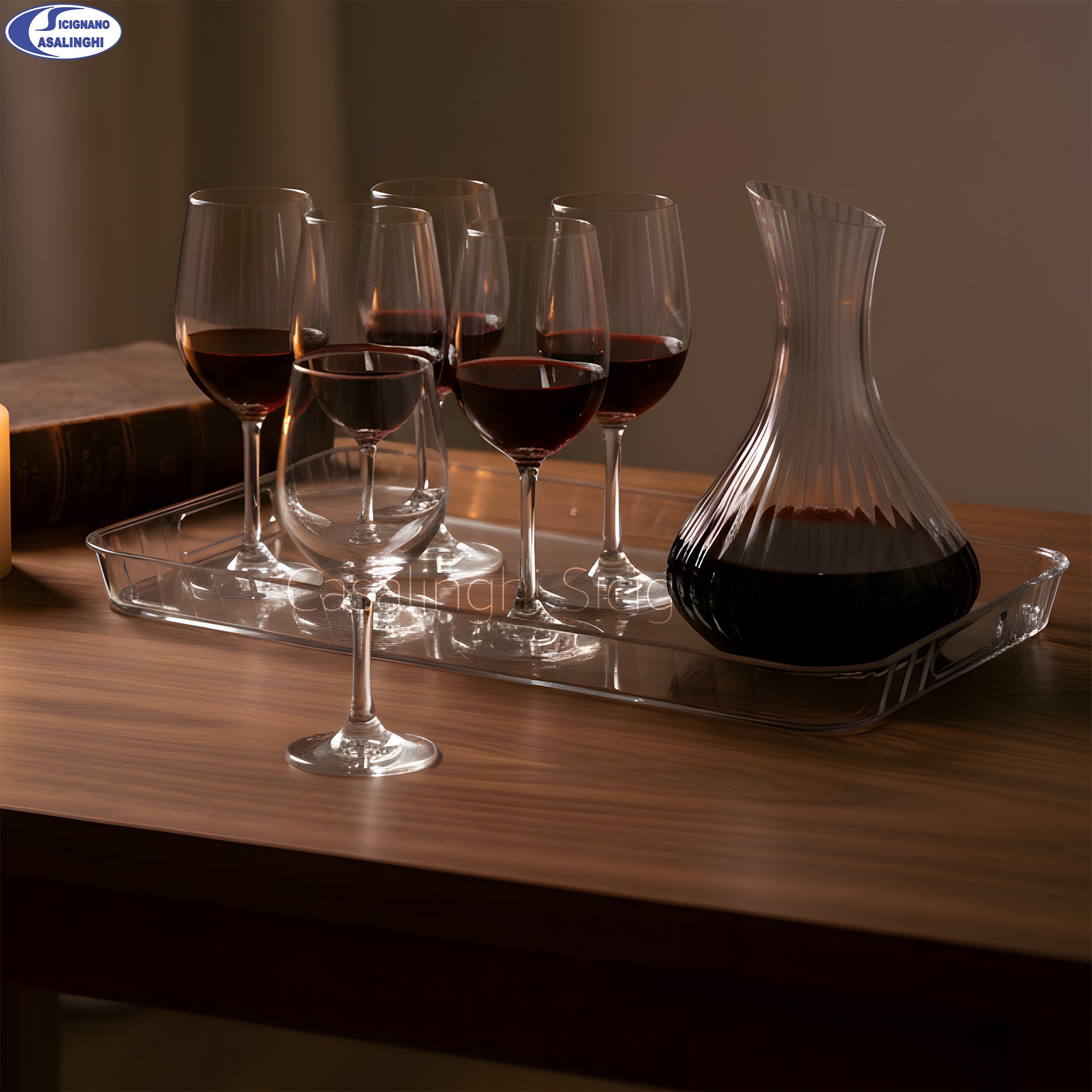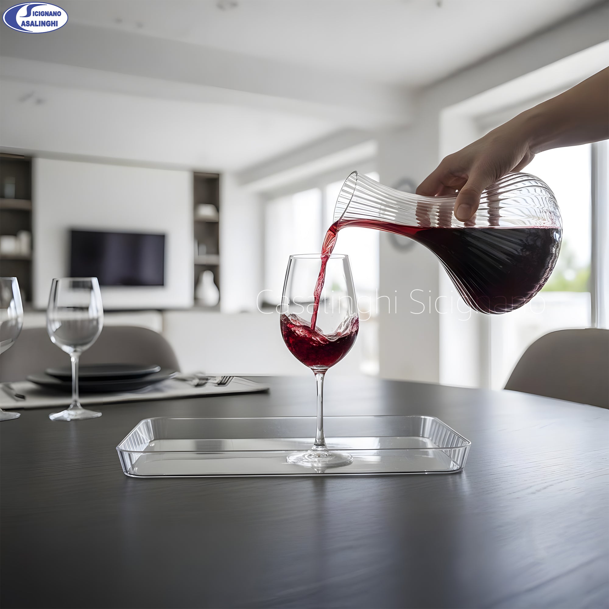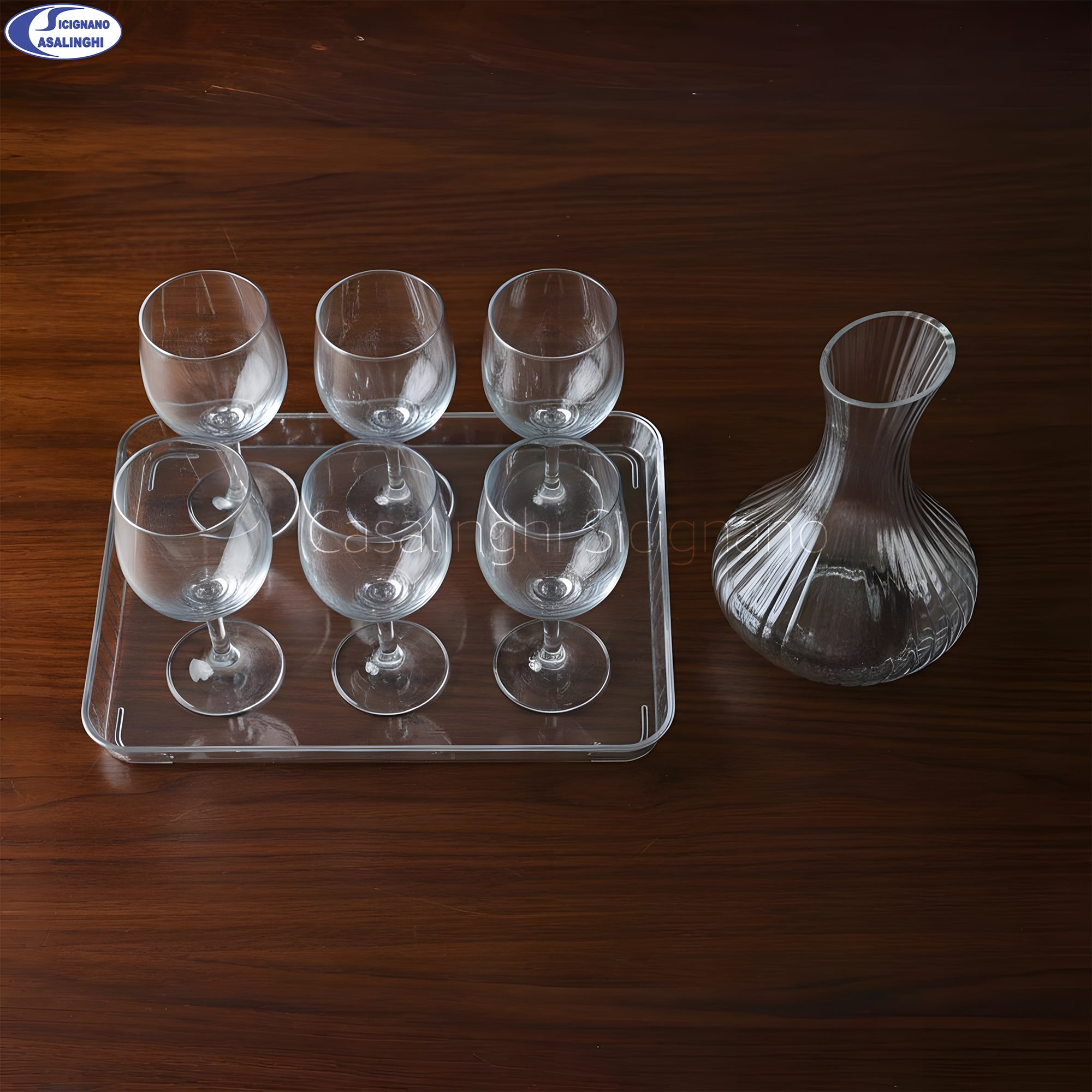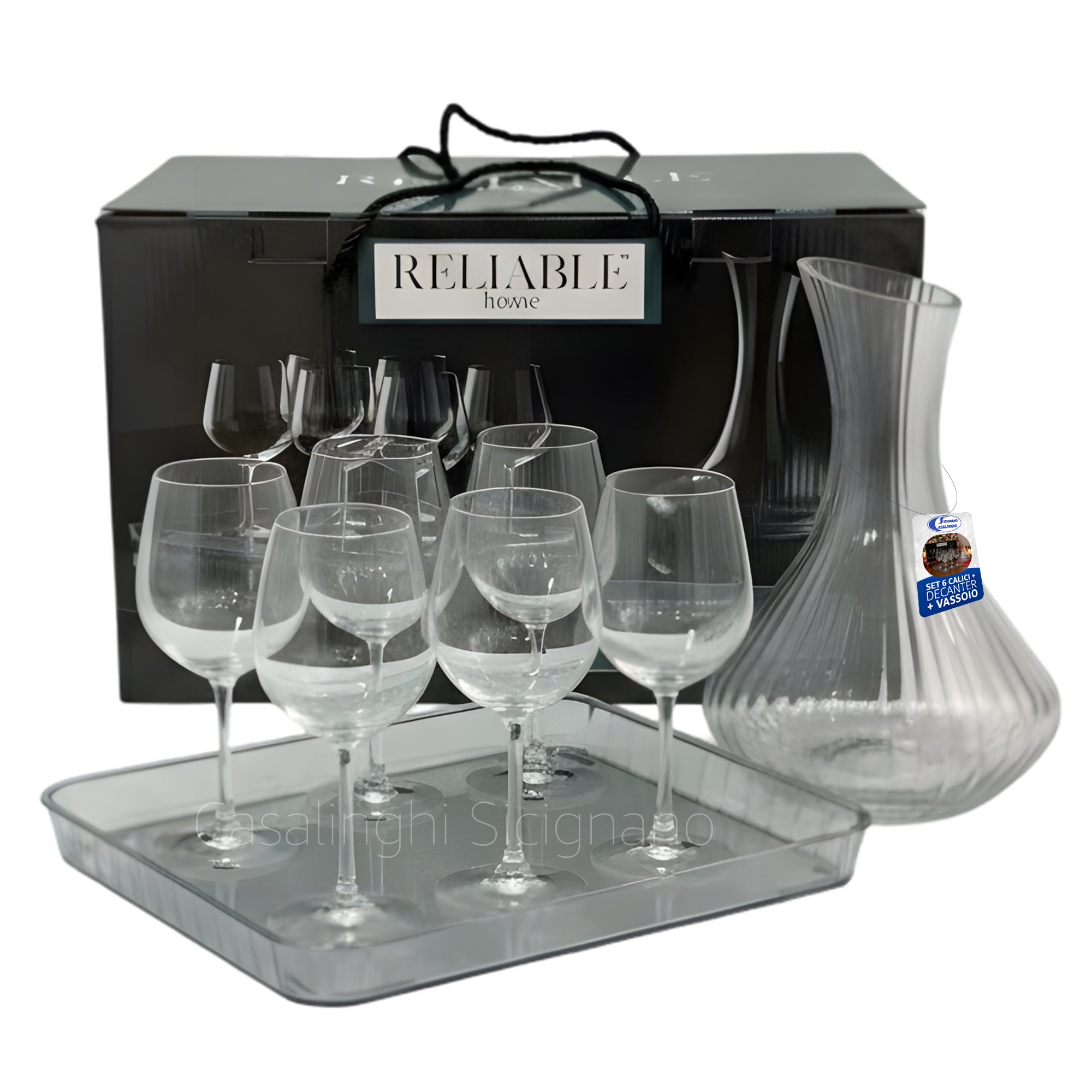 Set Decanter 1.7L con 6 Calici in Vetro e Vassoio Plastico - Kit 8 Pezzi