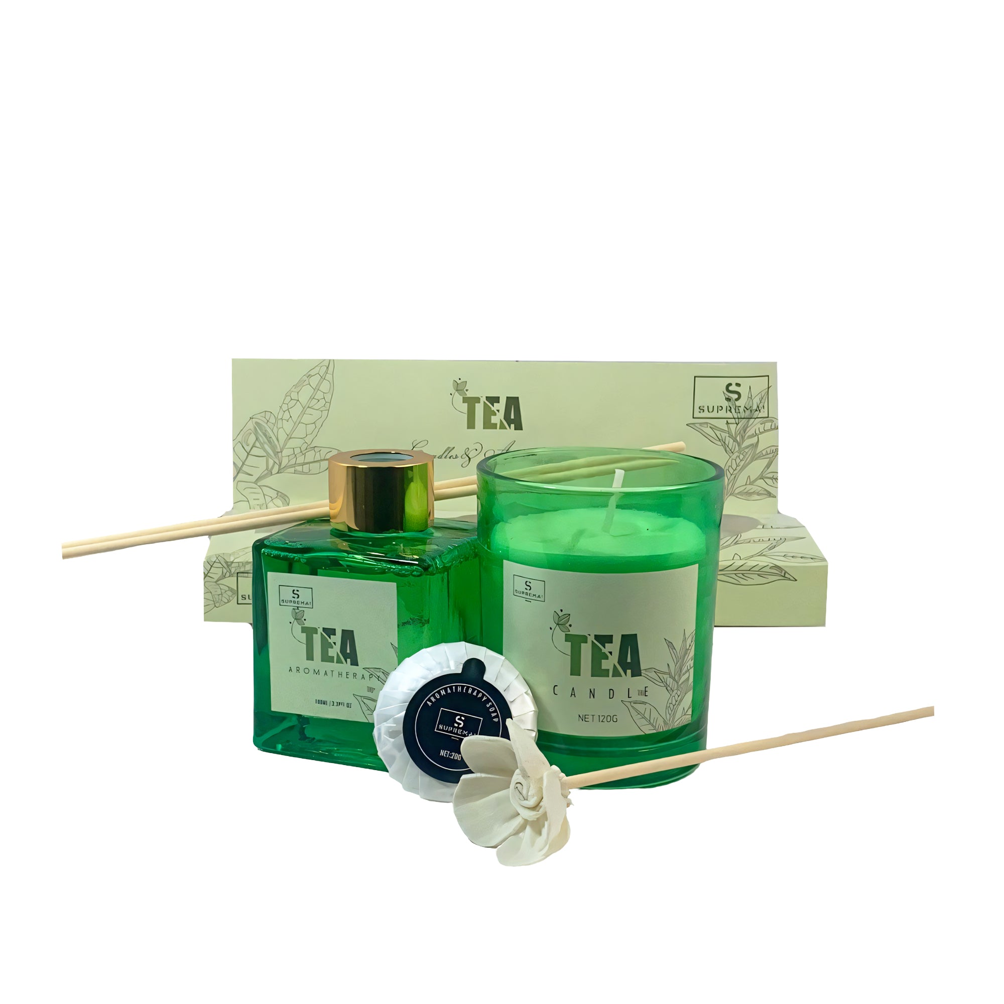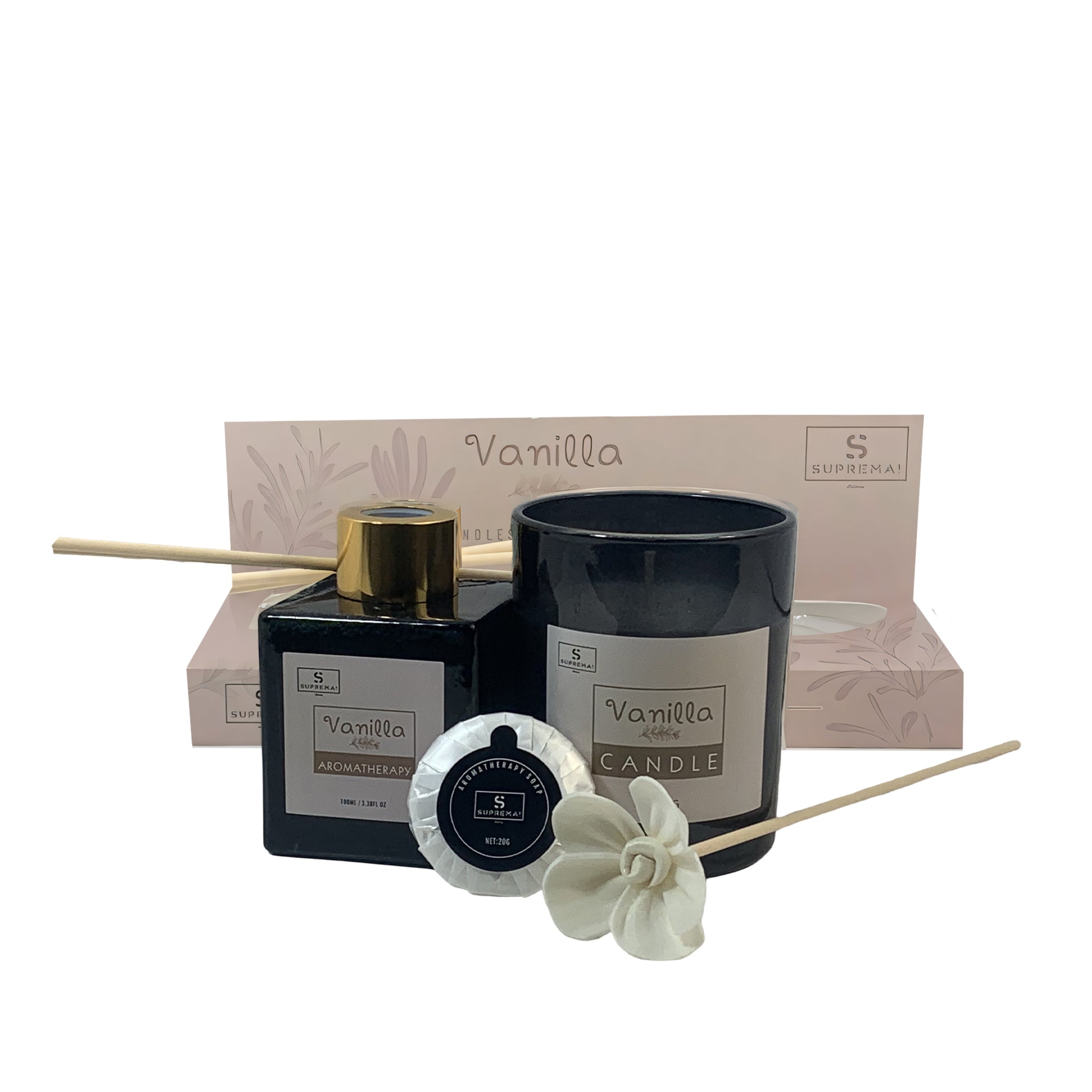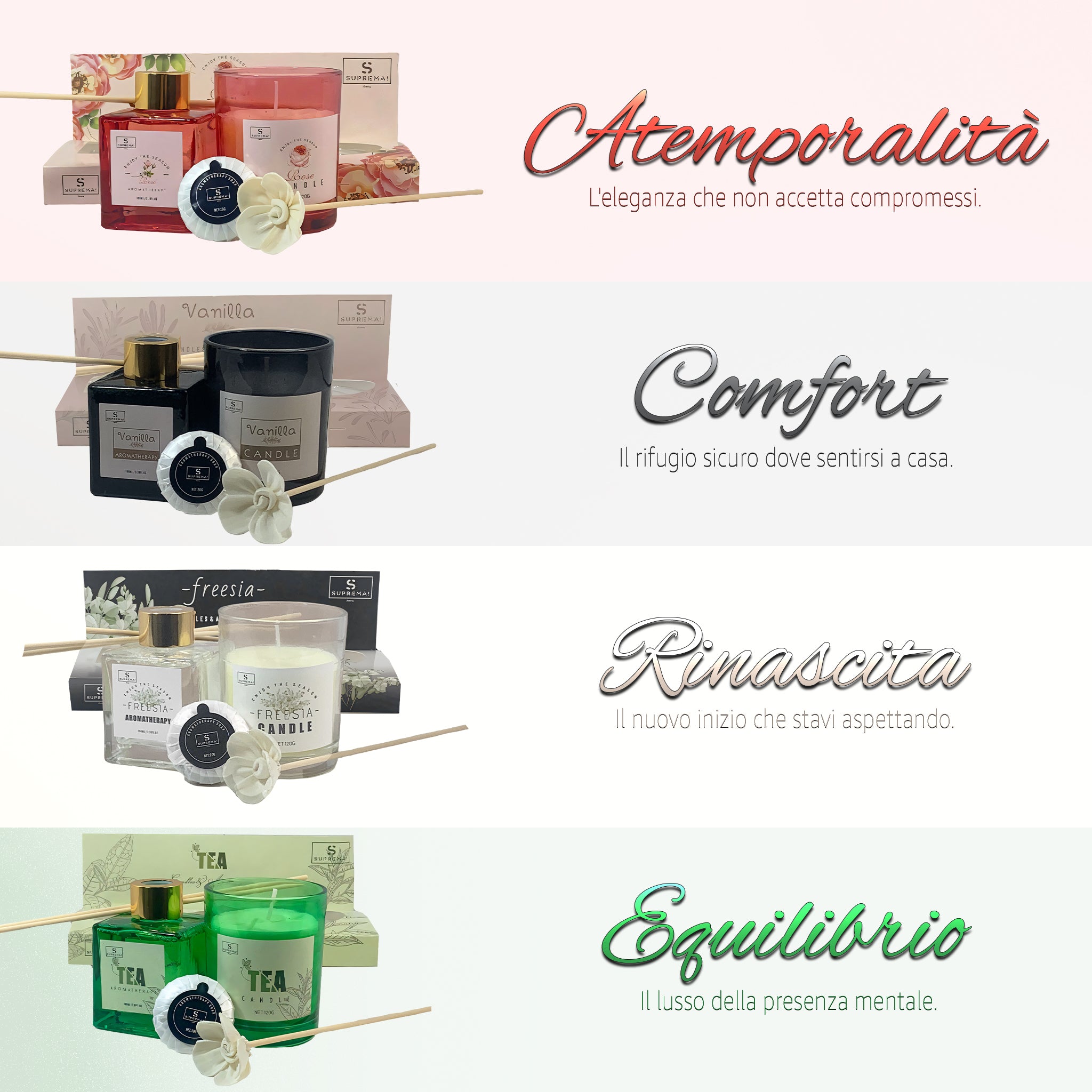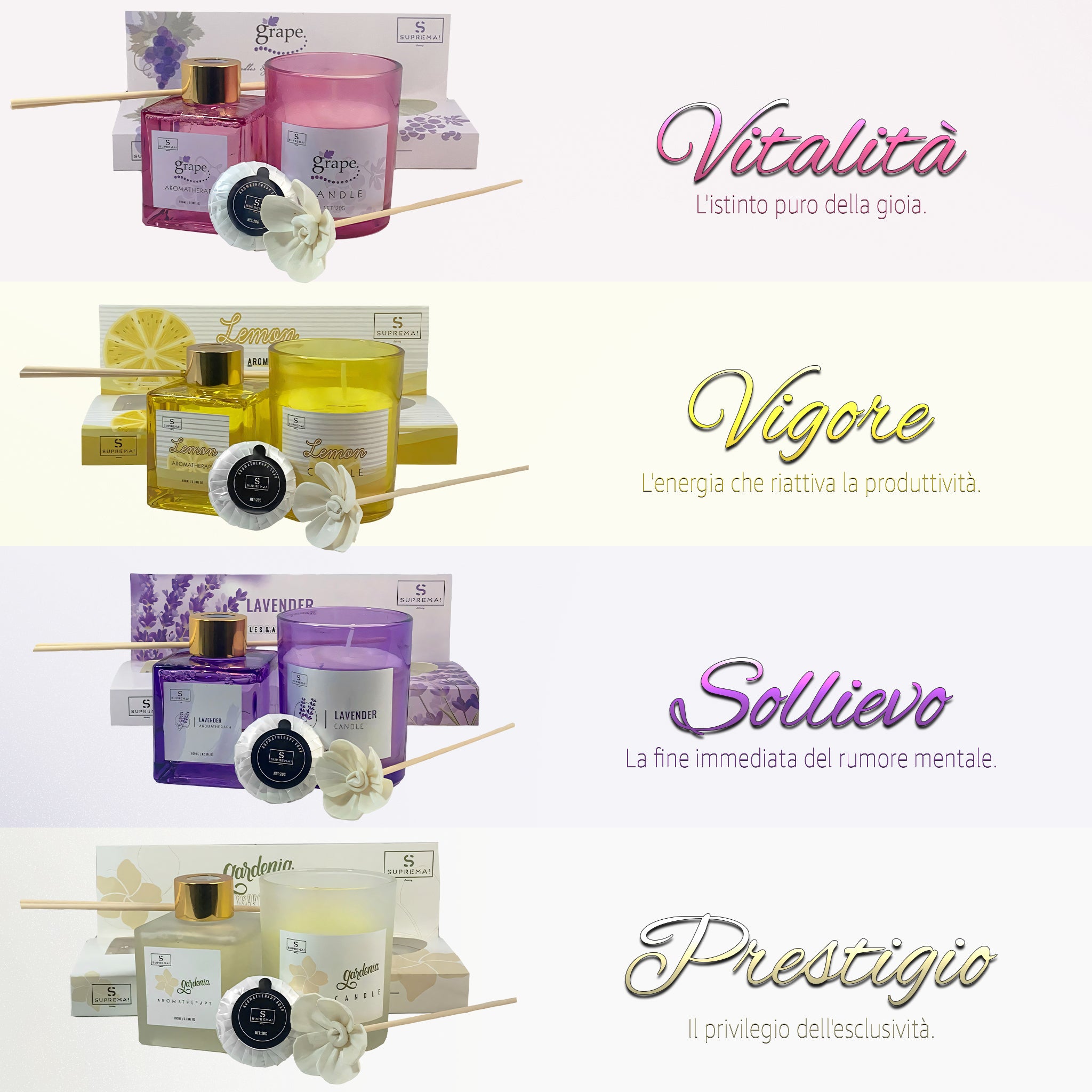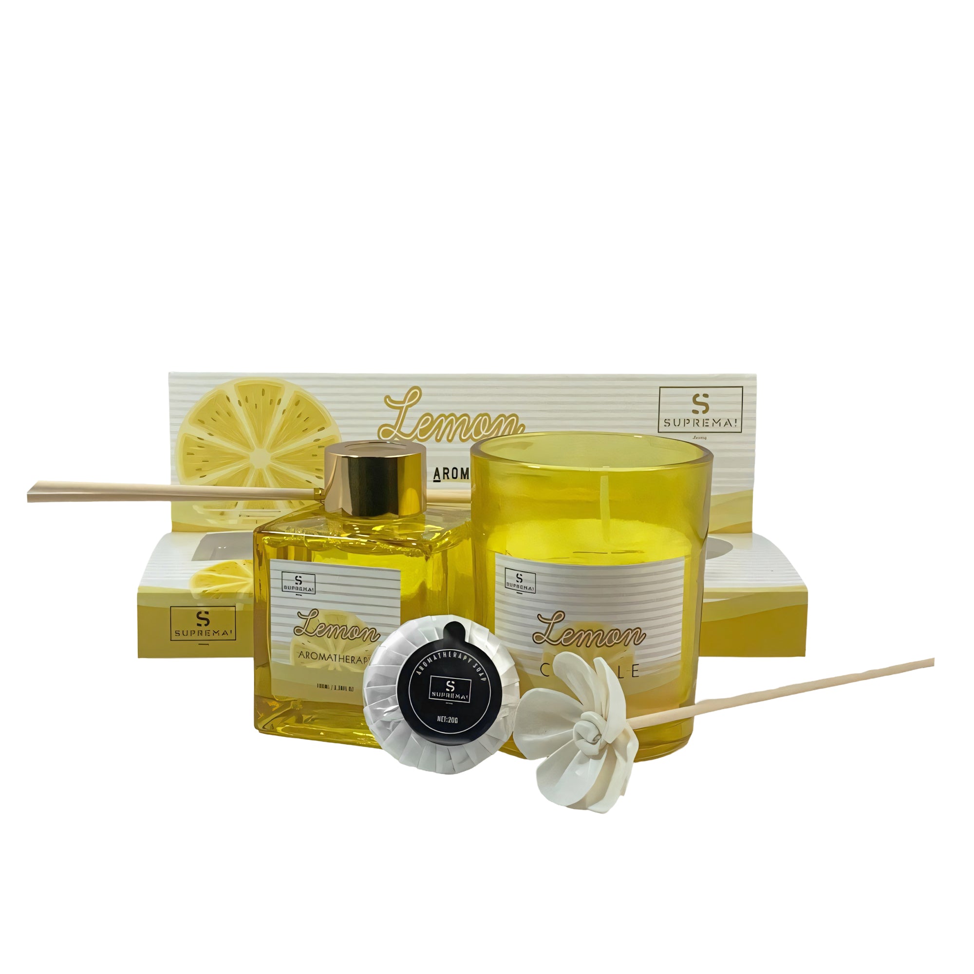 Suprema Set Diffusore Ambienti Bastoncini + Aromaterapia Idea Regalo + Home Decor Box + 100ml Olio & Candela