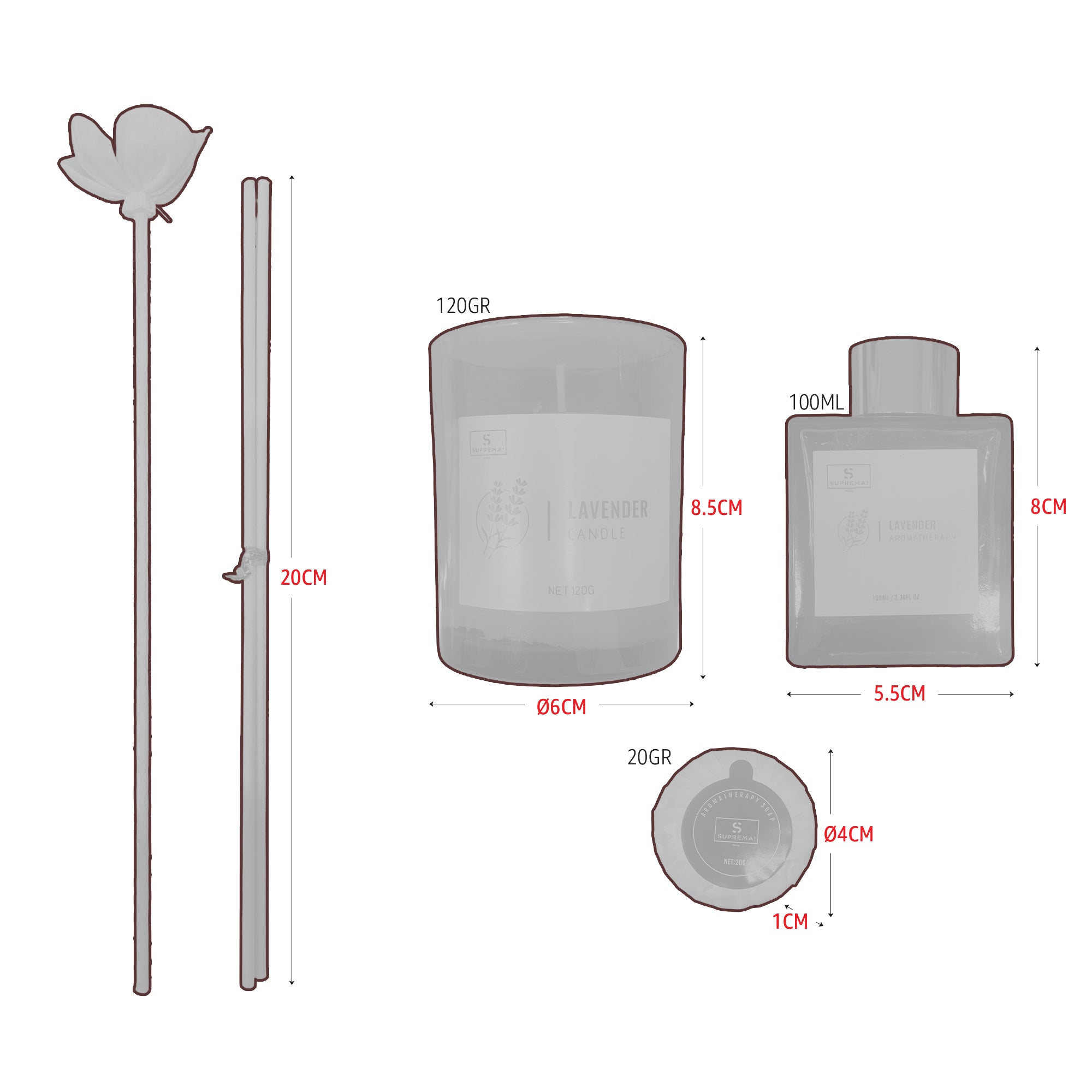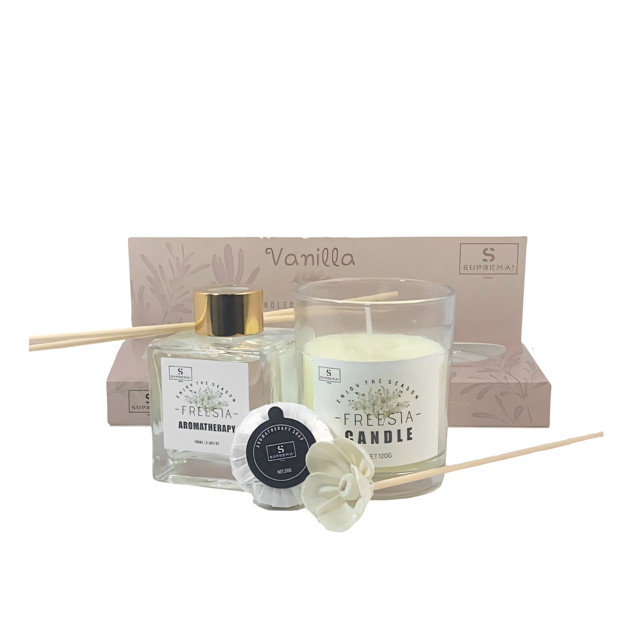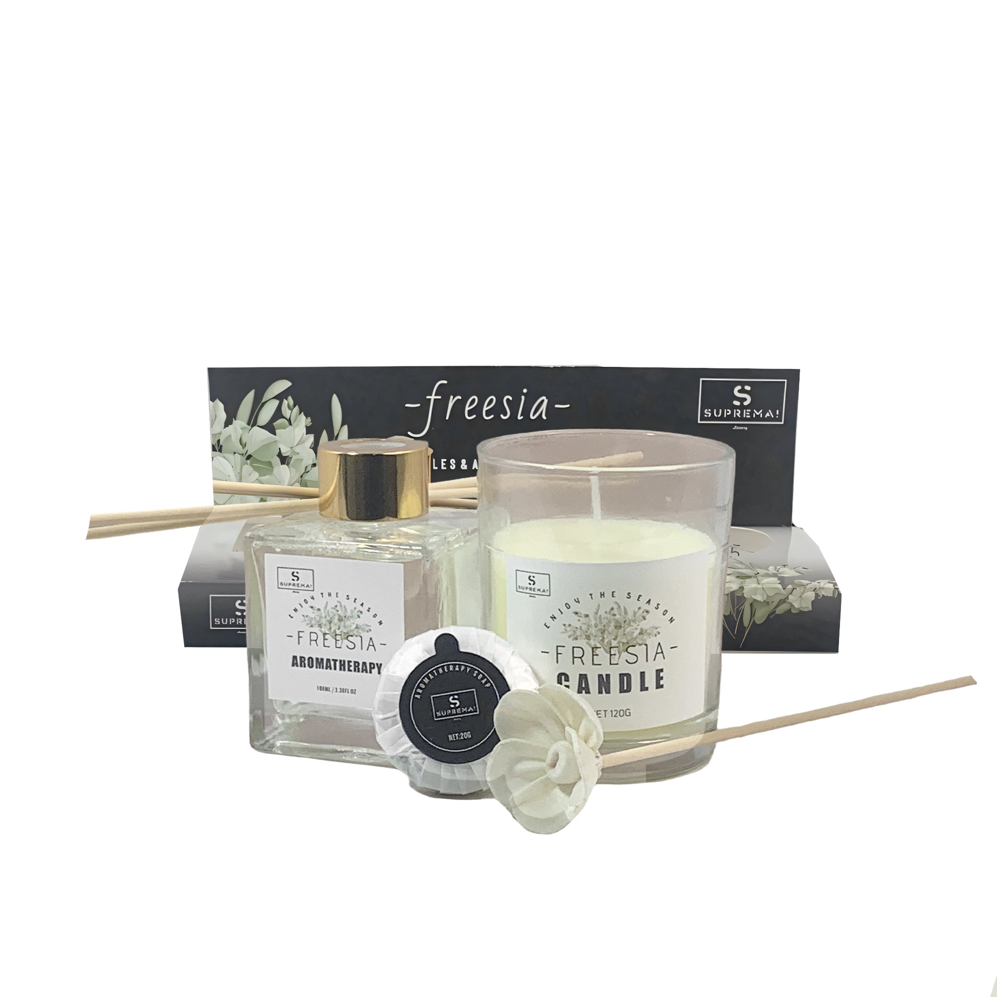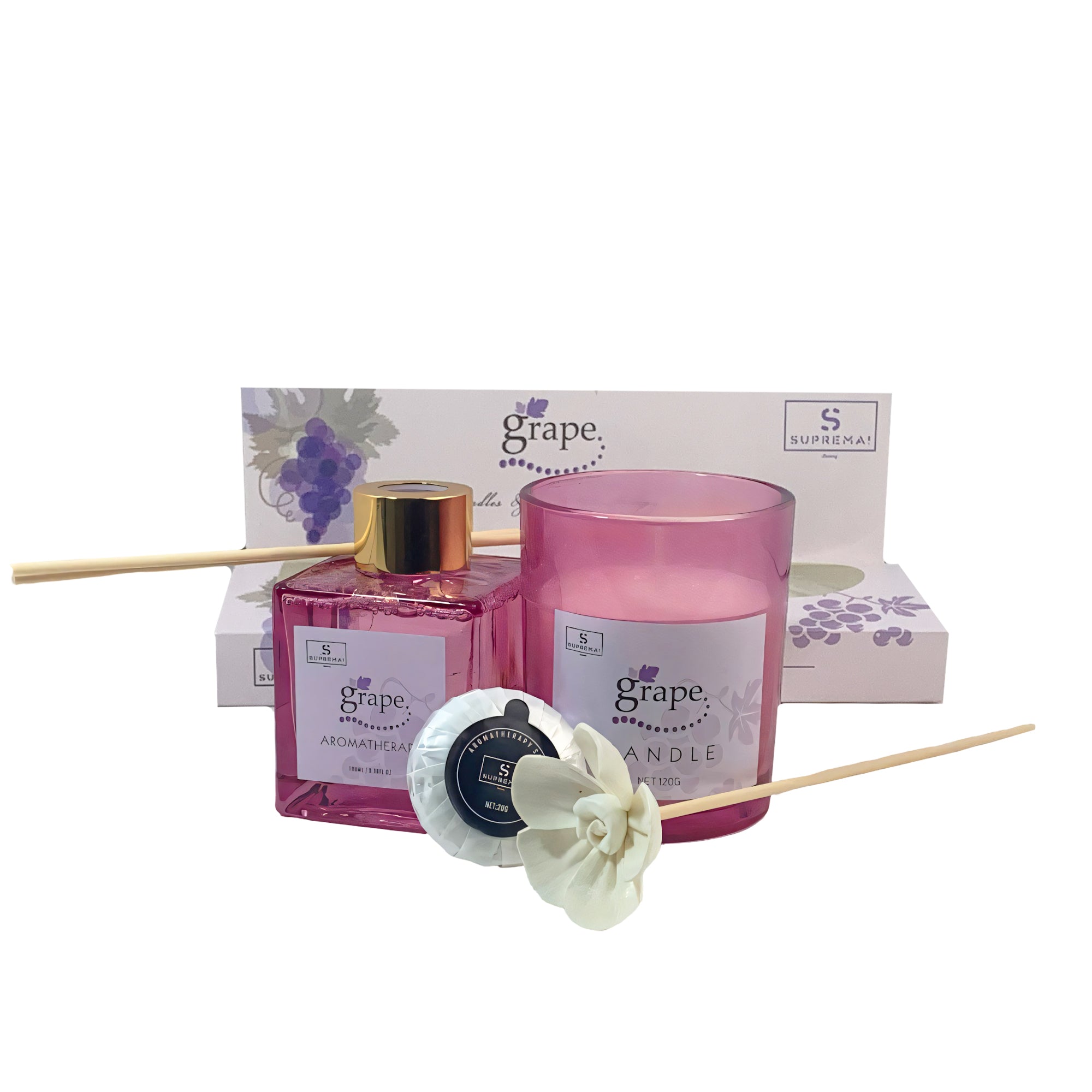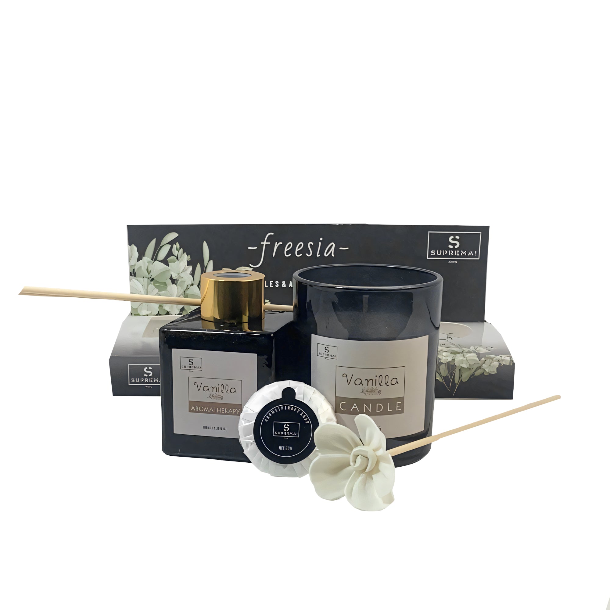 Suprema Set Diffusore Ambienti Bastoncini + Aromaterapia Idea Regalo + Home Decor Box + 100ml Olio & Candela