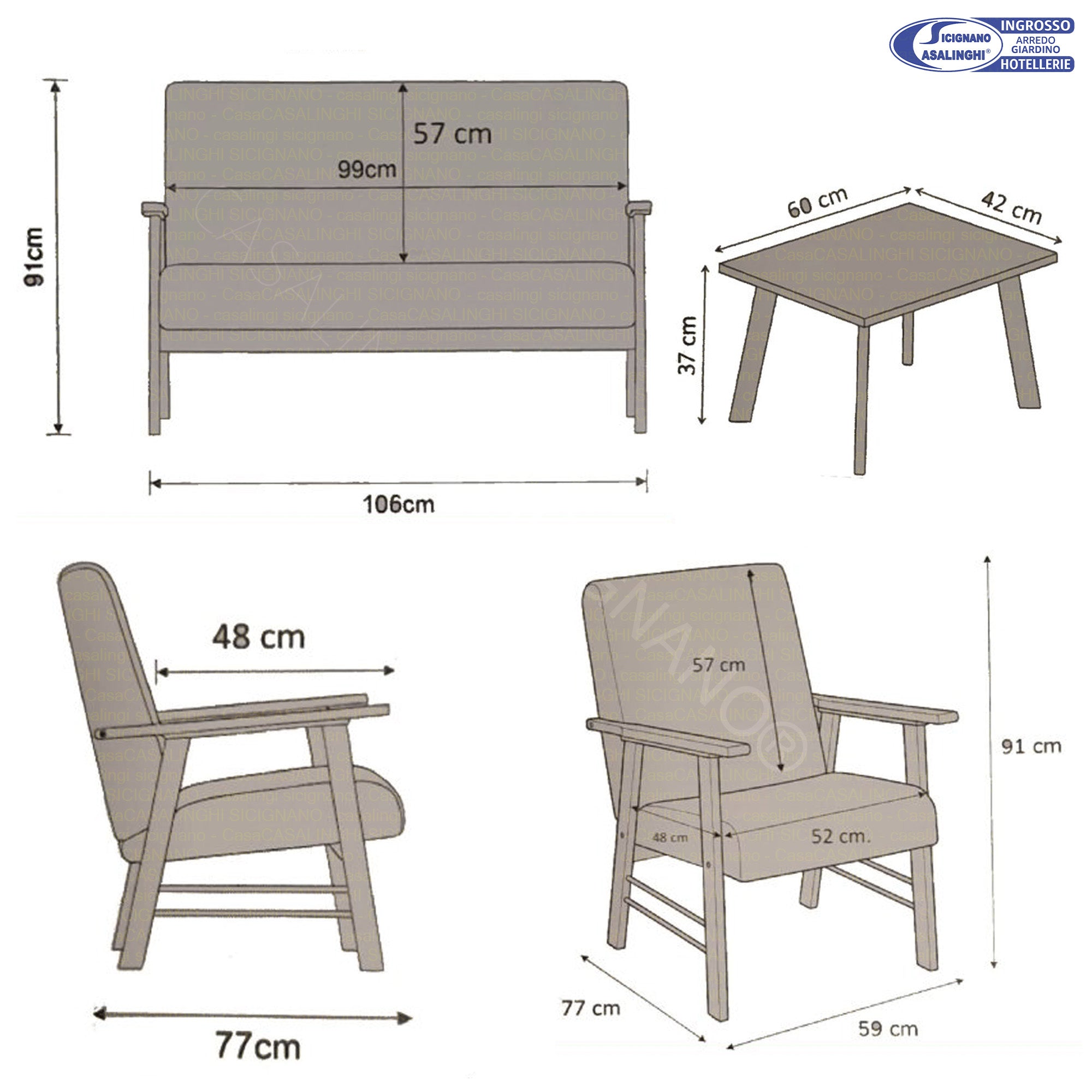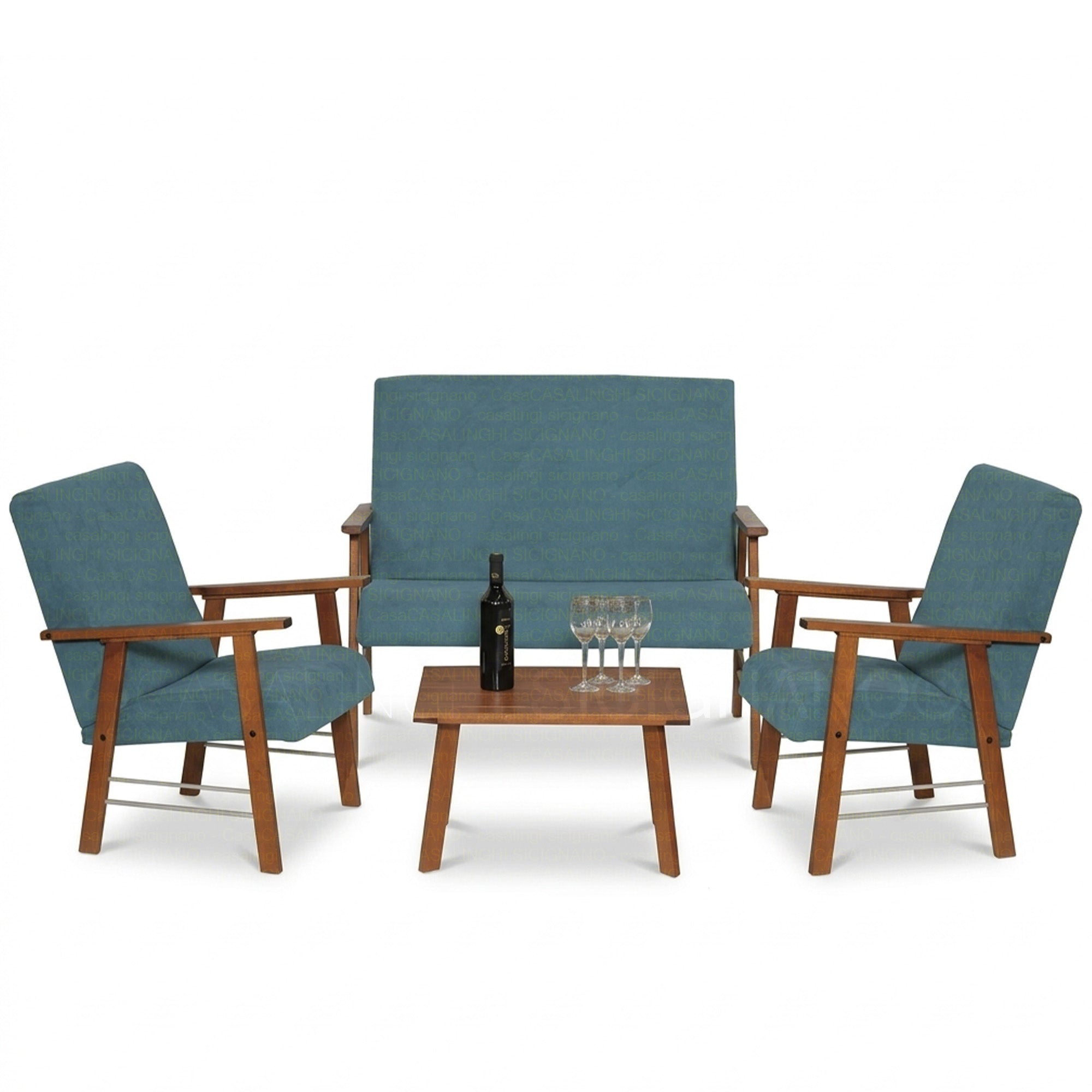 Set Ortigia Poltrone con Divano e Tavolino, 4 Posti, per Interni | 2 Colori