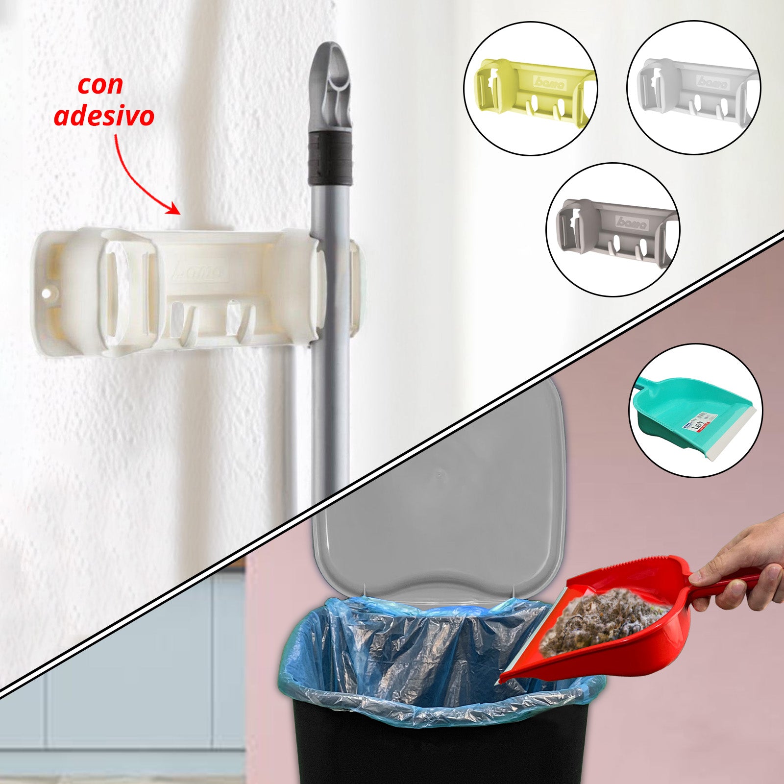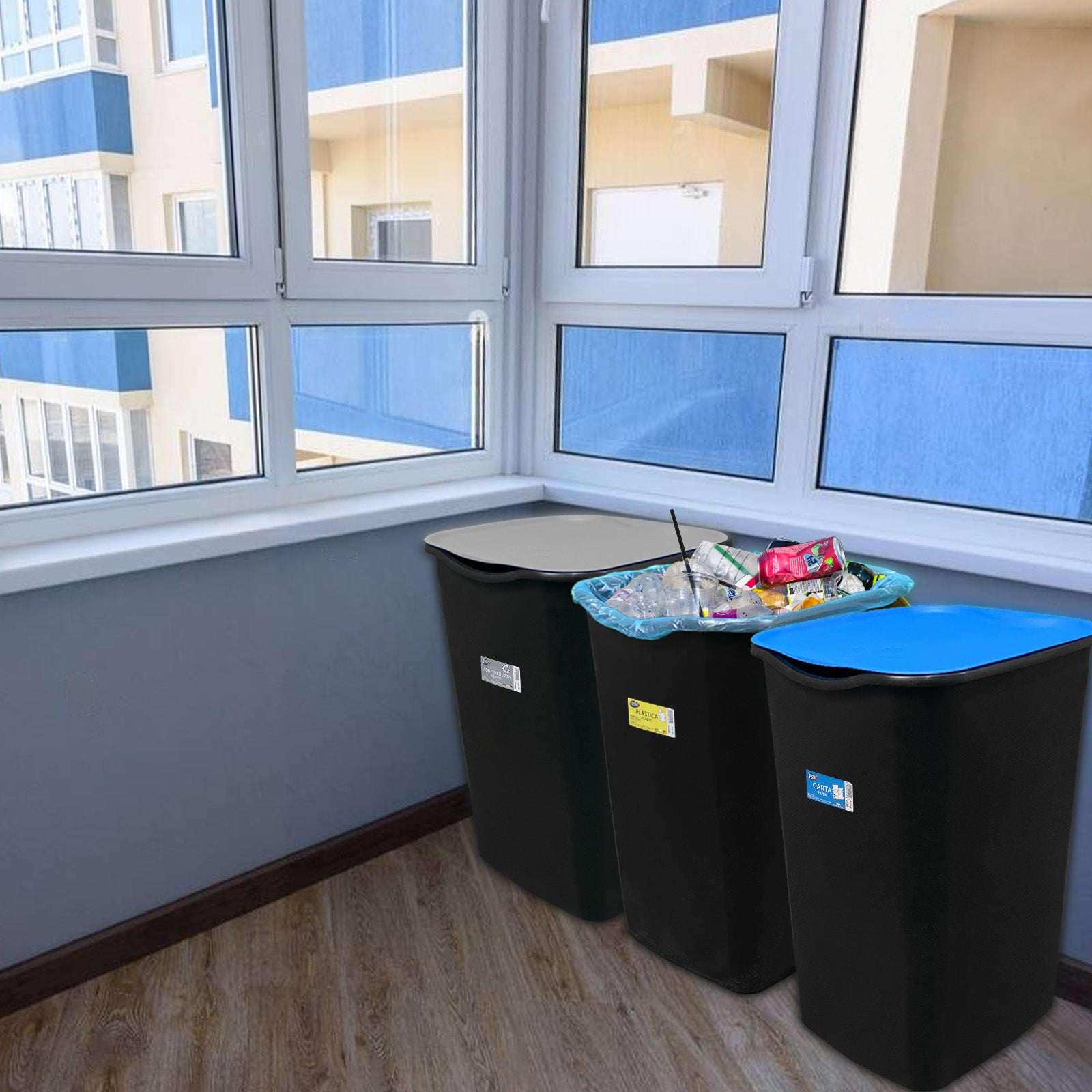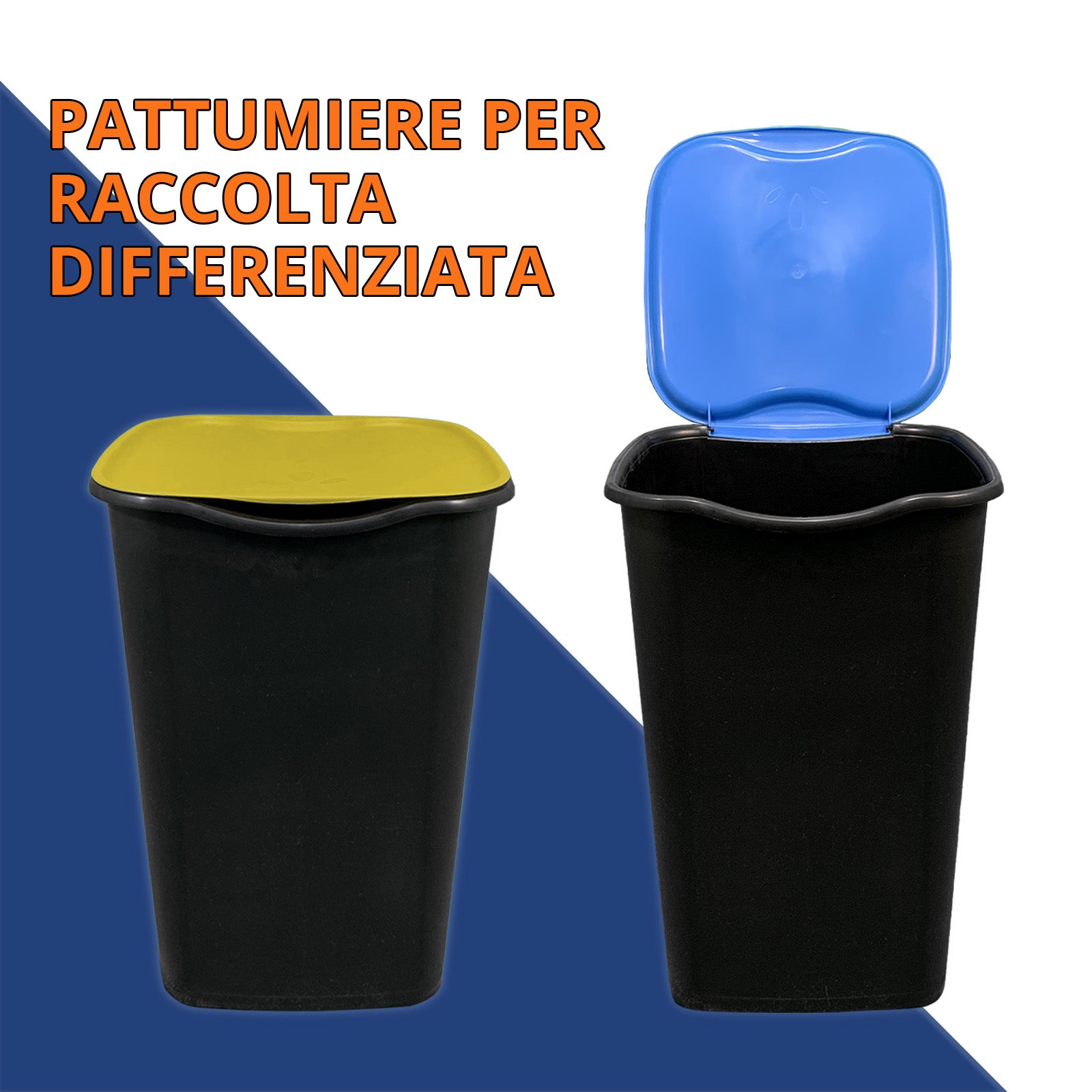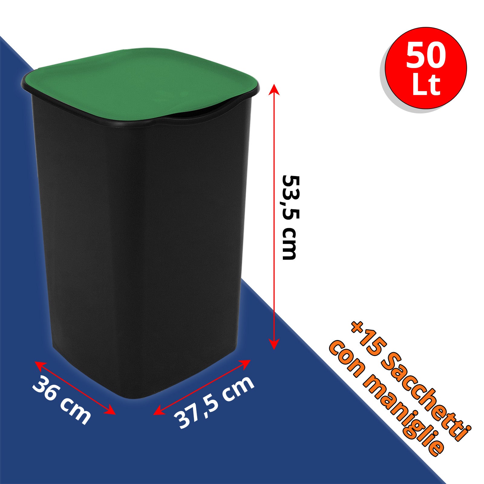 Set Pattumiere Riciclo con Coperchio Raccolta Differenziata Carta Vetro Plastica Indifferenziata 50 Litri, 15 Sacchetti, con Paletta e Appendiscope Colori Assortiti