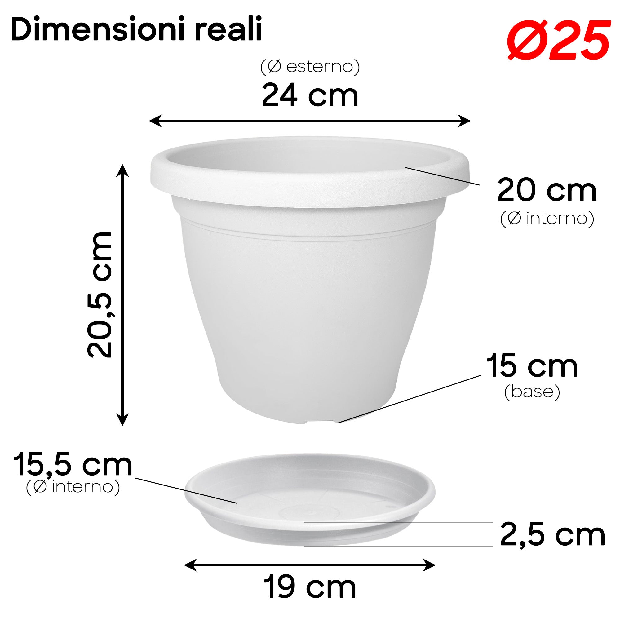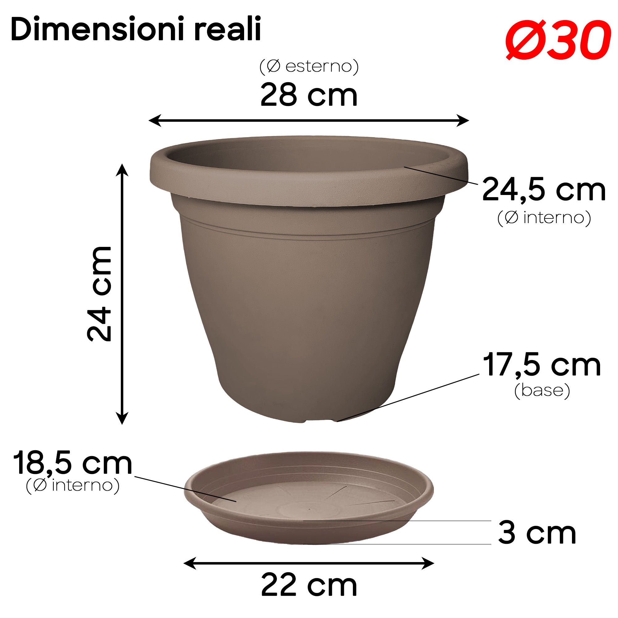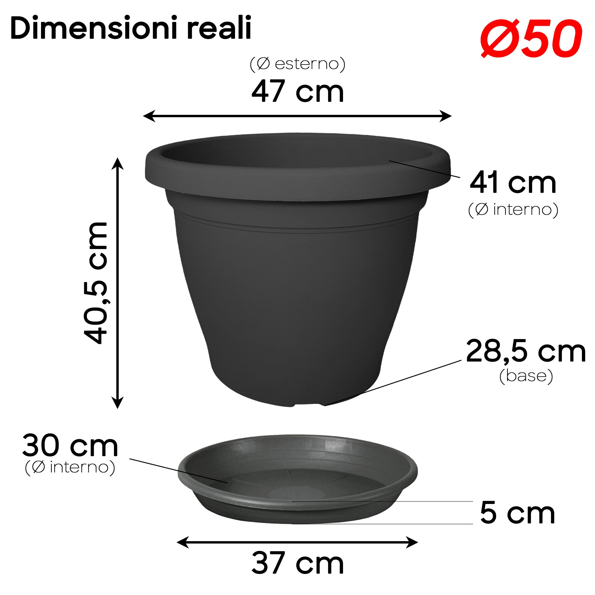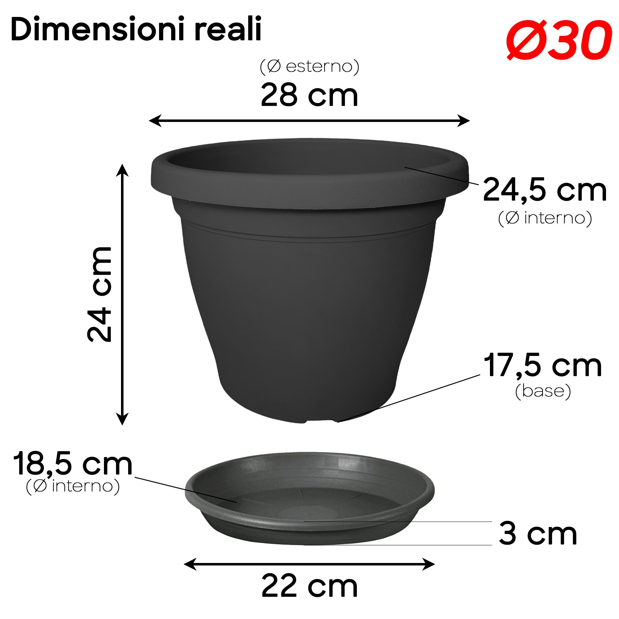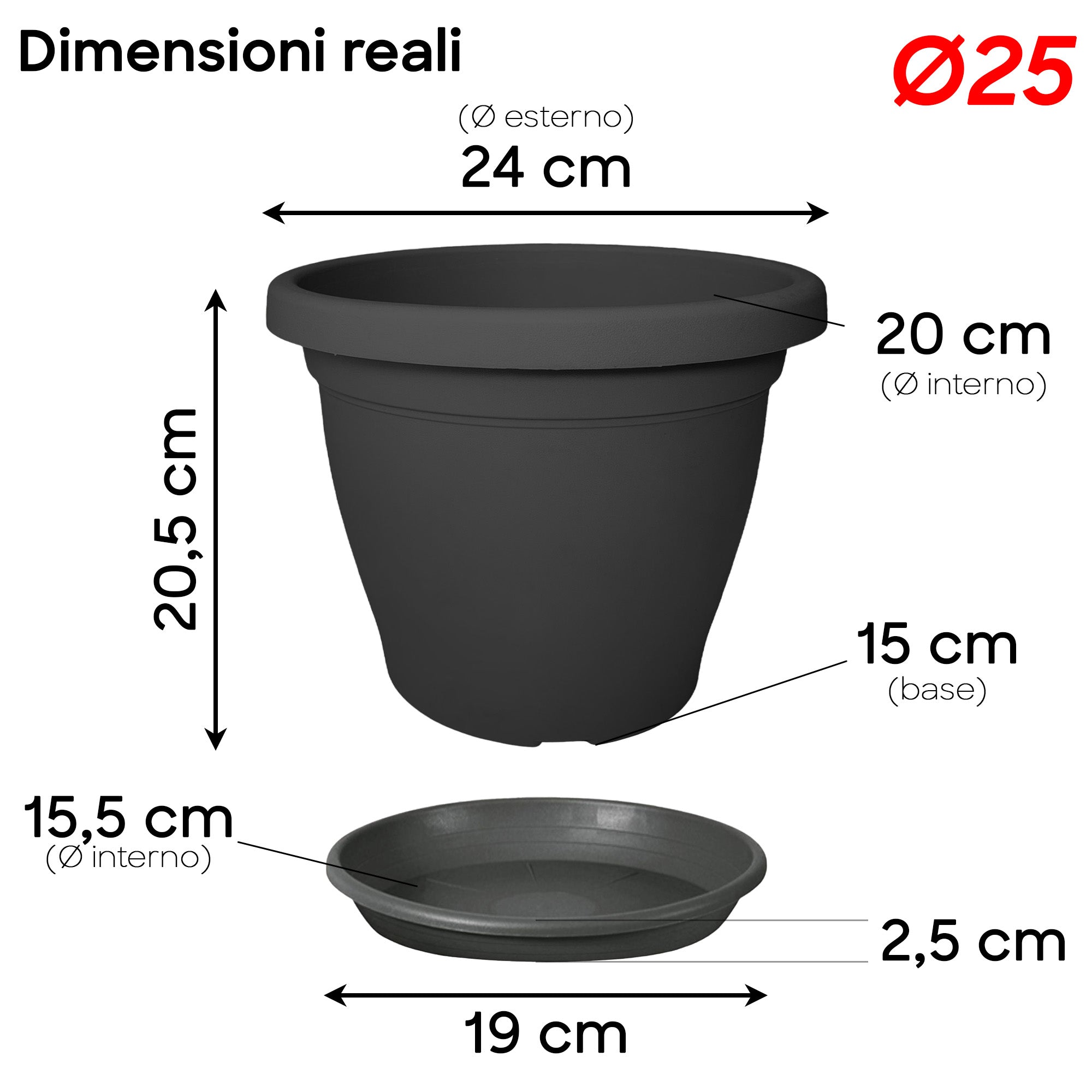 Sicignano Set Vaso Verona Con Sottovaso E Terriccio Plastica Per Giardino Interno Esterno